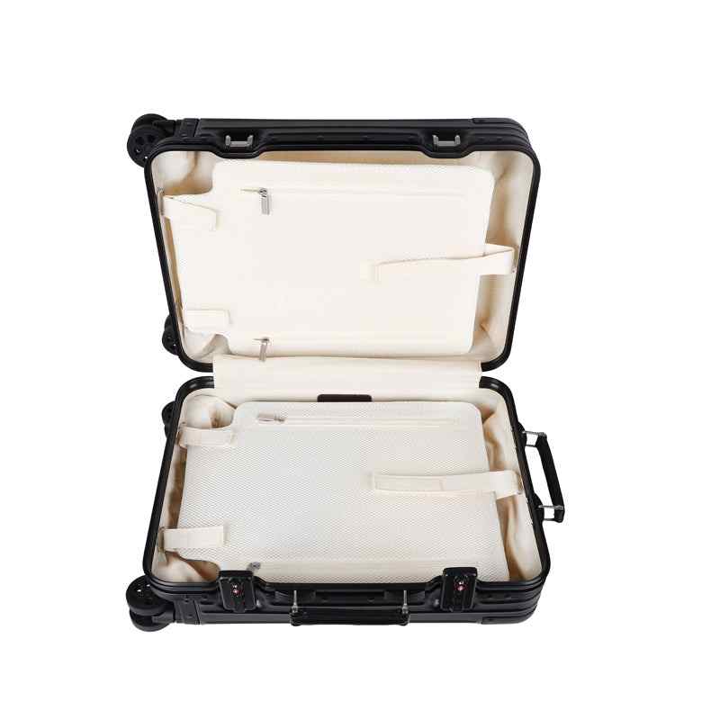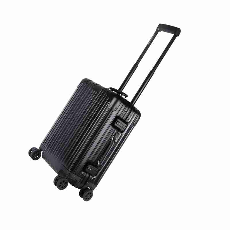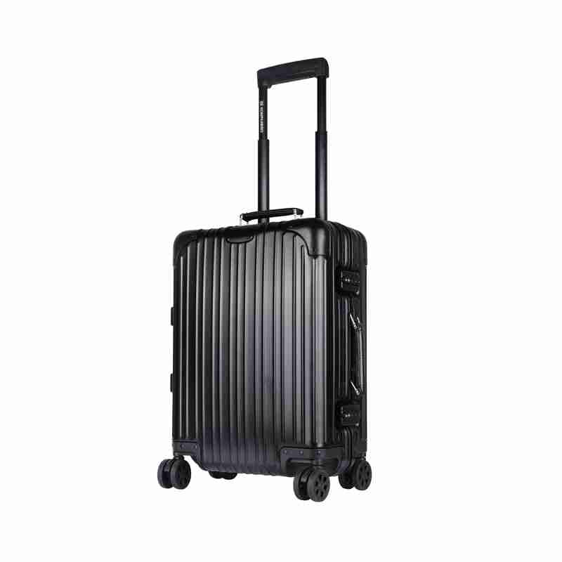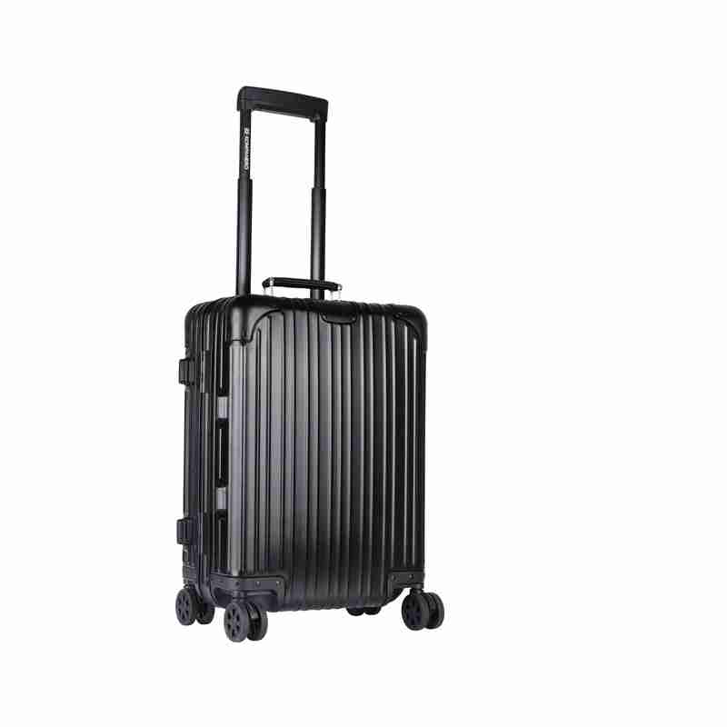 Aaron-The Trolley suitcase with branding on the front. One handle on the top and on the side, a trolley with a retractable handle and rotatable corner-mounted inline skate wheels!
