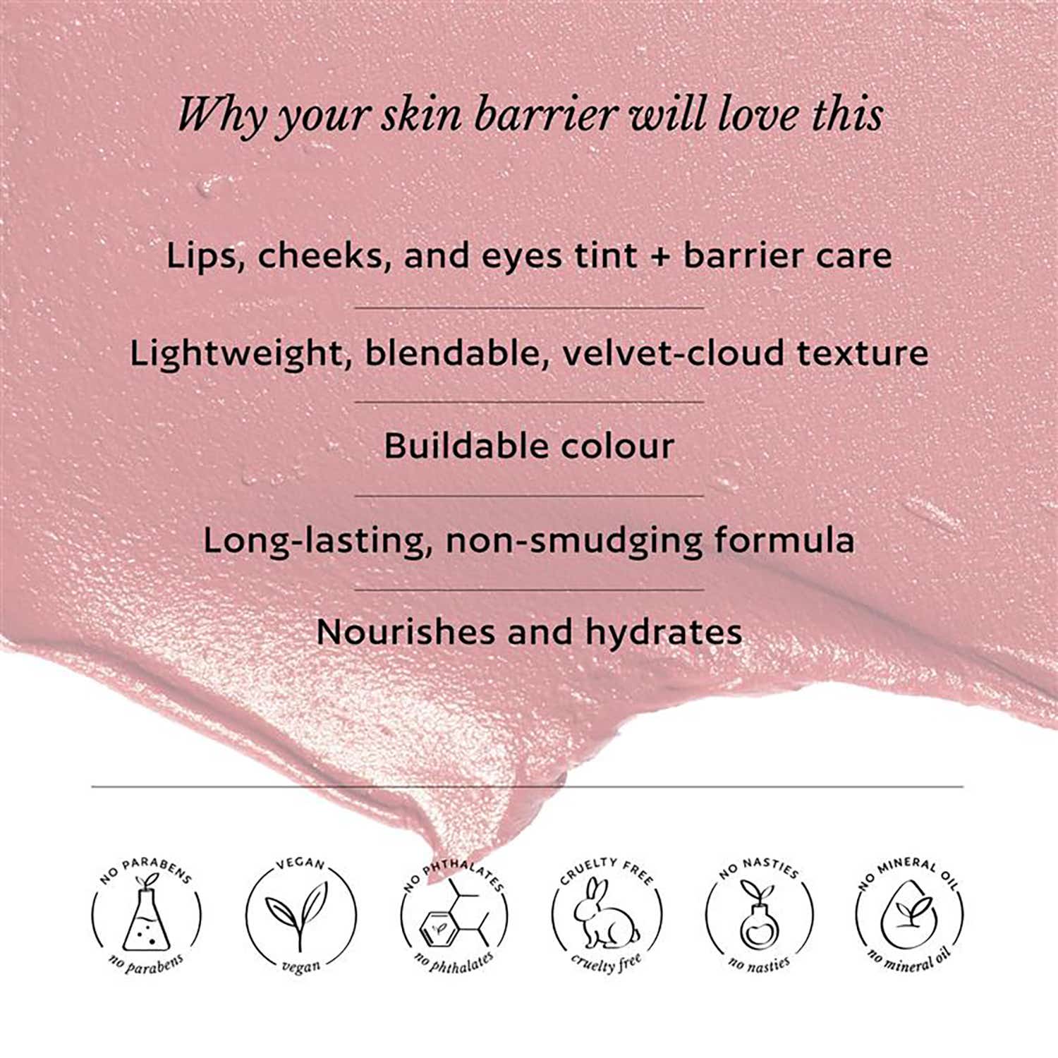 Cyclopentasiloxane (And) Dimethicone Crosspolymer, Cyclopentasiloxane, Cyclopentasiloxane (And) Disteardimonium Hectorite (And) Propylene Carbonate, Silica, Trioctyldodecyl Citrate, Ozokerite Wax, Isononyl Isononanoate, Ethylhexyl Palmitate, Octyldodecanol, Polymethylsilsesquioxane, Ethylhexyl Methoxycinnamate, Hydrogenated Polyisobutene, Polyethylene, Phenyl Trimethicone, Coco-Caprylate/Caprate, Phenoxyethanol, Perfume, Prunus Amygdalus Dulcis (Sweet Almond) Oil, Simmondsia Chinensis (Jojoba) Seed Oil, Tocopheryl Acetate, Isohexadecane (And) Ethylene/Propylene/Styrene Copolymer (And) Butylene/Ethylene/Styrene Copolymer (And) Sodium Hyaluronate (And) Xanthan Gum (And) Phenoxyethanol (And) Tripeptide-1. May Contain: Ci 77891, Ci 77492, Ci 77499, Ci 77491, Ci 15850, Ci 45410:2, Ci 42090:1, Ci 15850:1, Ci 19140