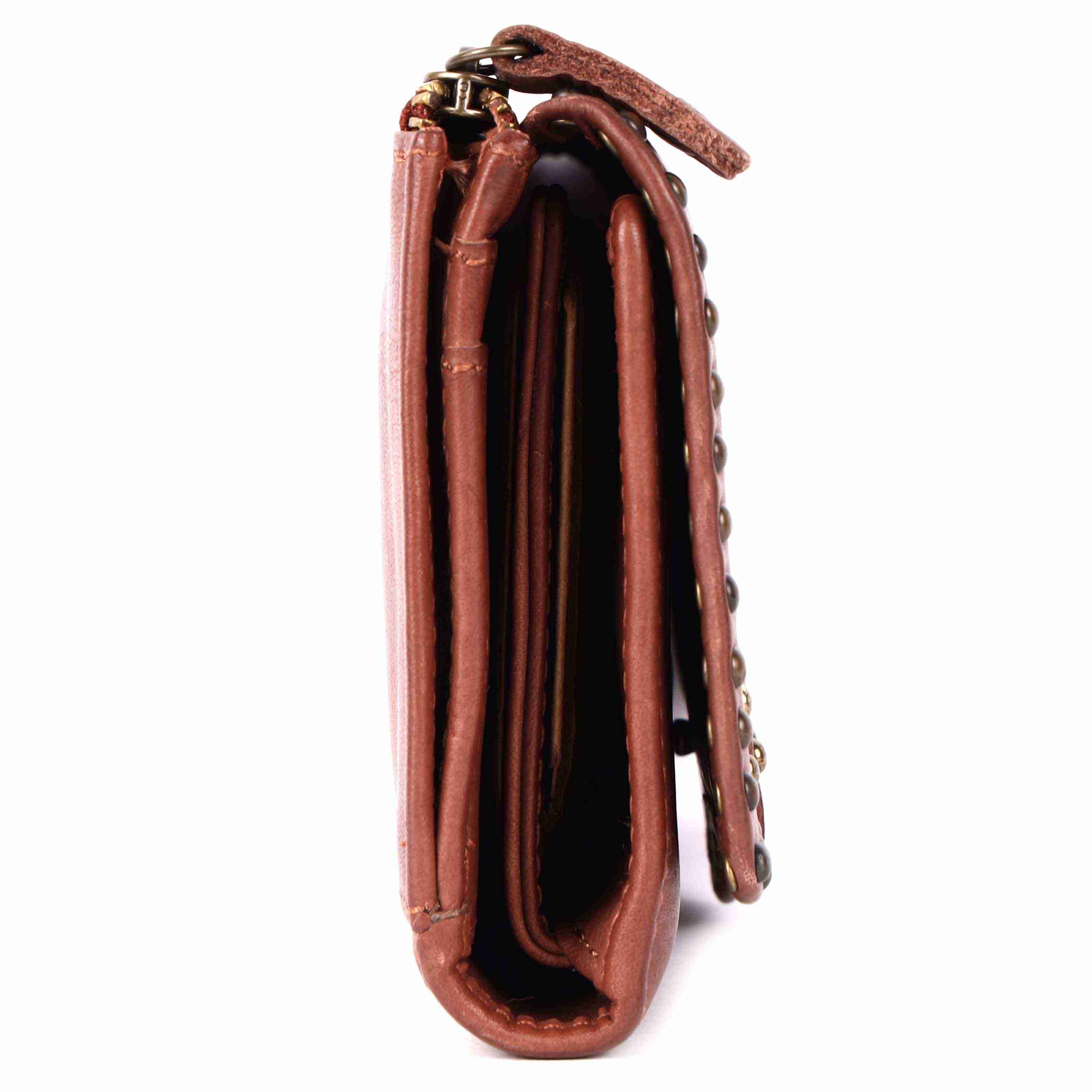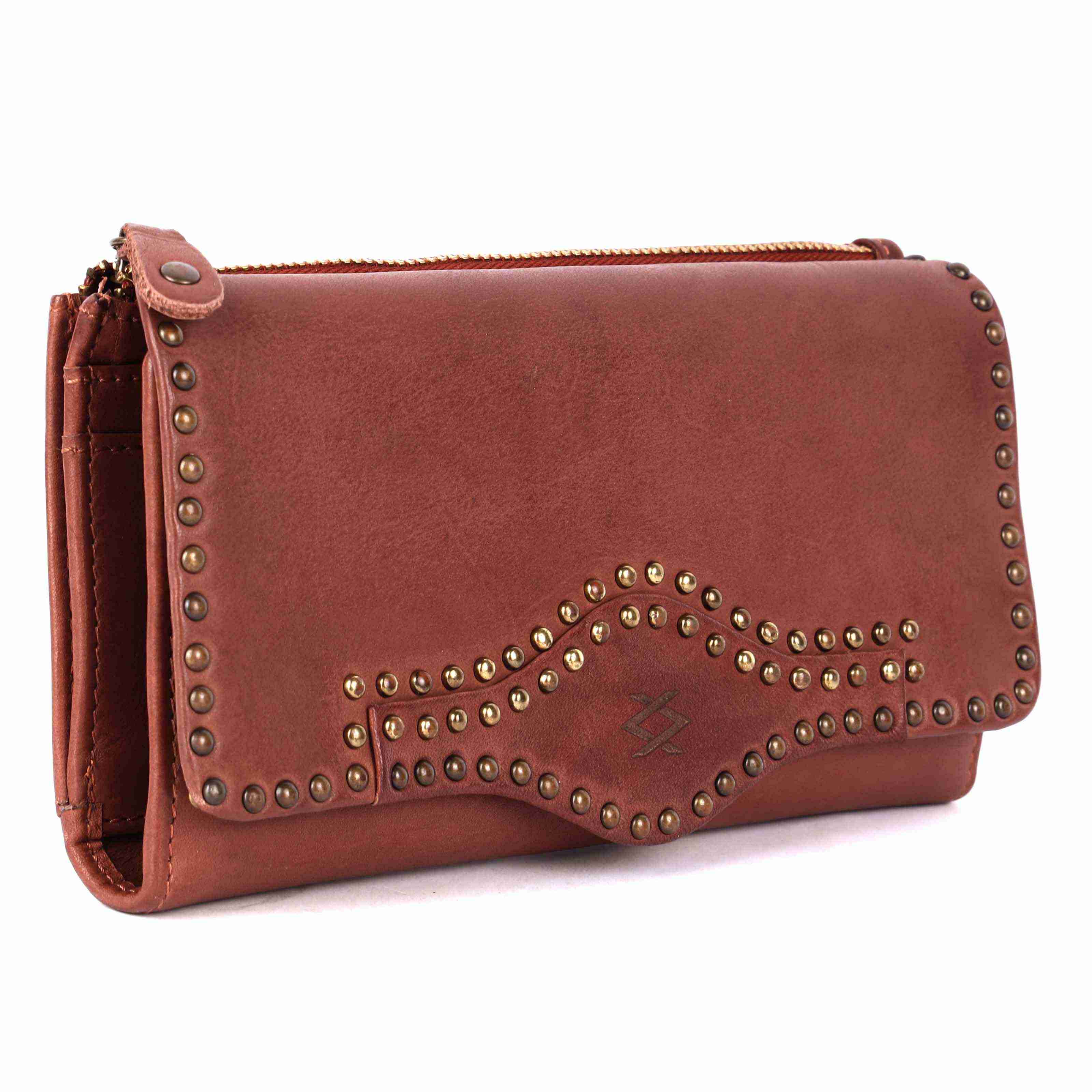 This collection features eco-friendly, vegetable-tanned leather handbags, defined by their durability and natural texture. Each piece boasts femininity and elegance through a unique dome rivet design on the side gussets and front panel. The eye-shaped Kompanero logo, accentuated with riveted borders, adds sophistication. Versatile and timeless, these bags complement any outfit and occasion, promising long-lasting style.
