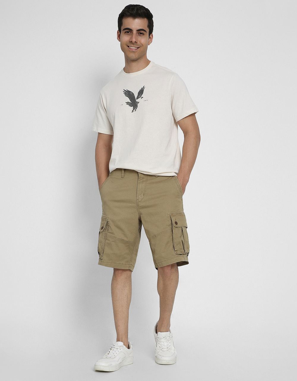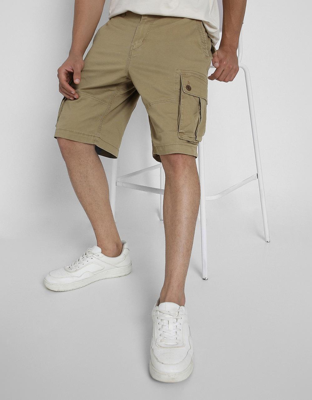 Discover ultimate comfort with the American Eagle Cargo Shorts, crafted from a premium blend of cotton and elastane. Designed for casual occasions, these solid brown shorts feature a laid-back fit and exceptional stretch for easy movement. With no-wash care, they preserve their style, making them an essential addition to your summer wardrobe. Embrace casual elegance effortlessly with these shorts that redefine comfort and versatility.