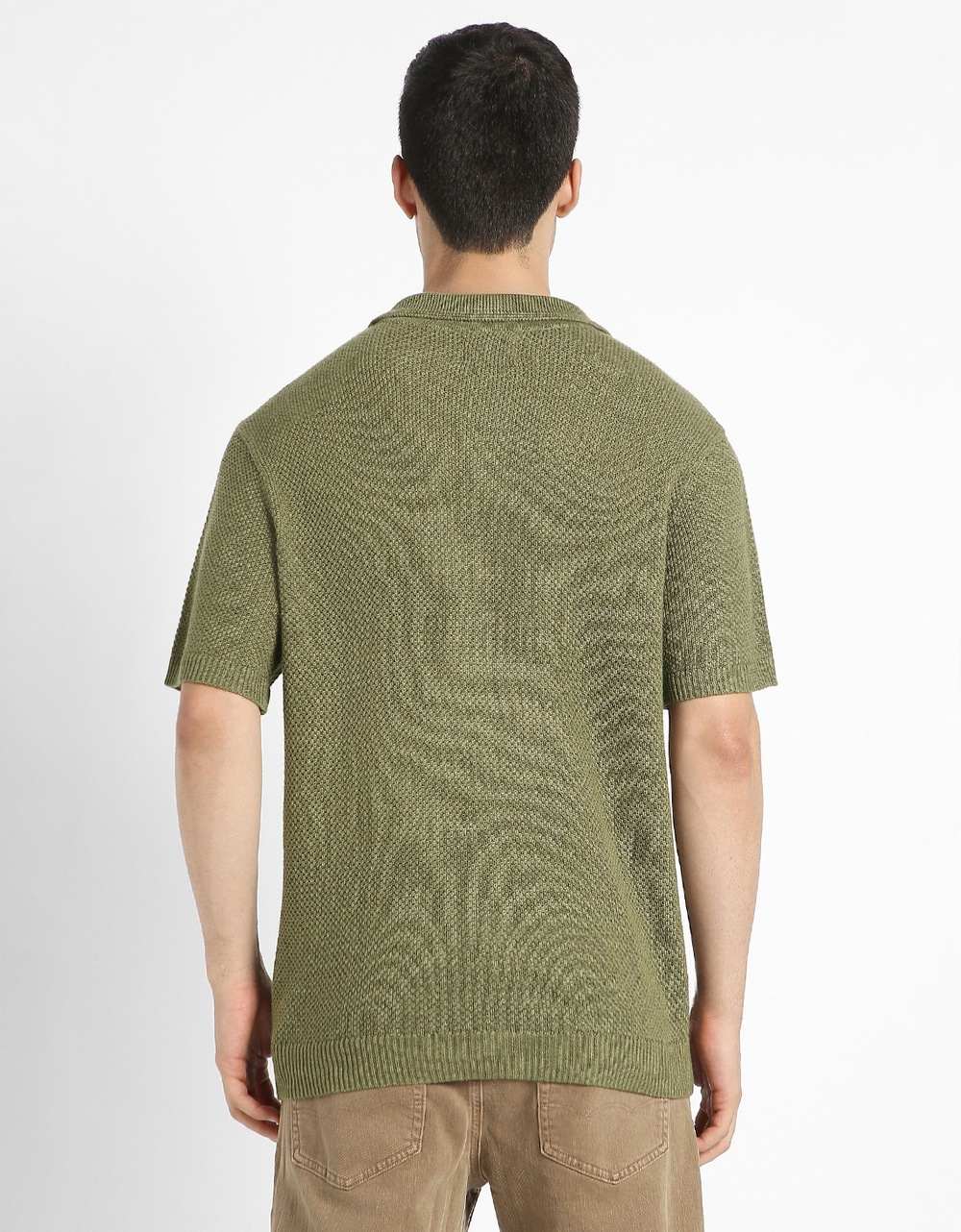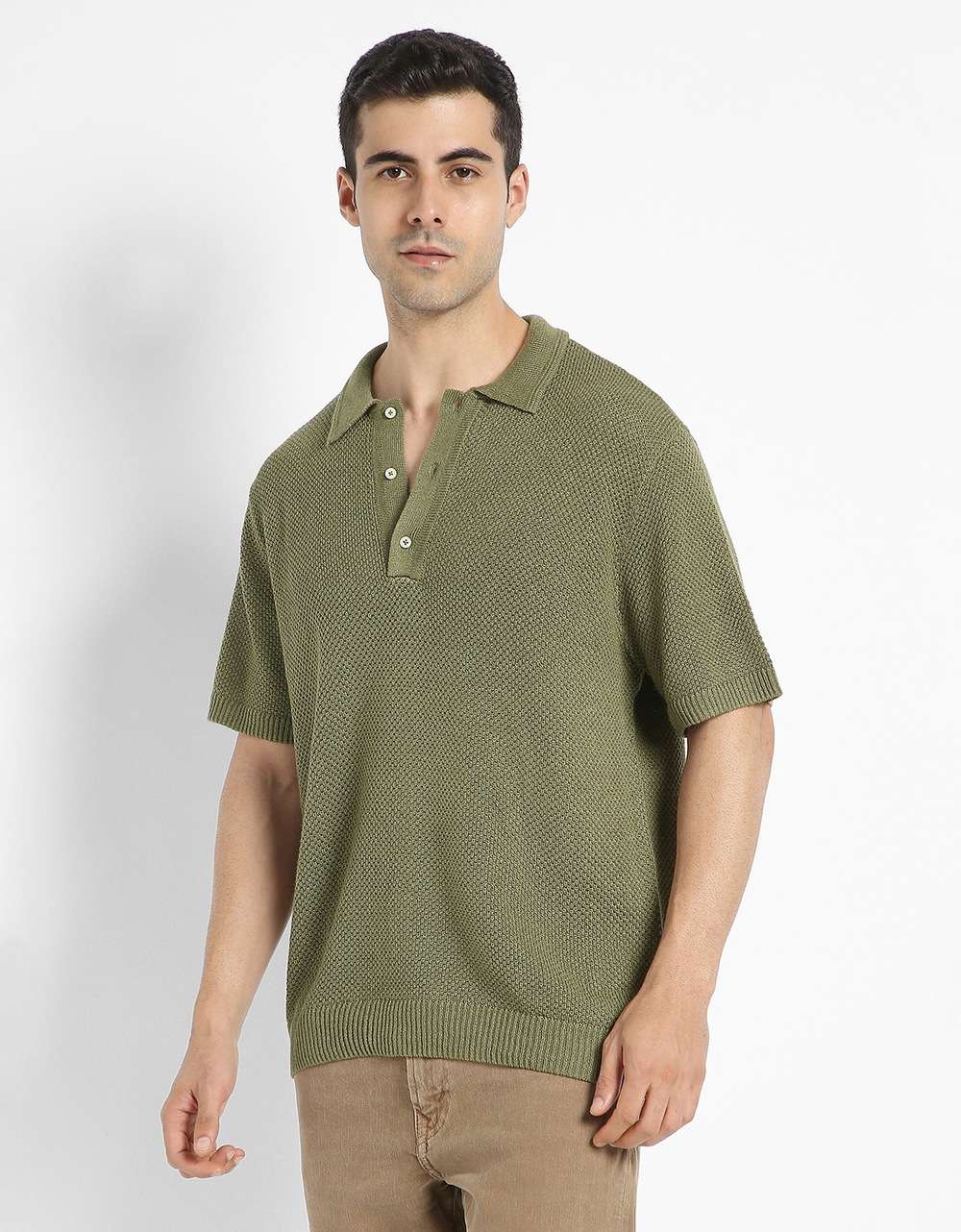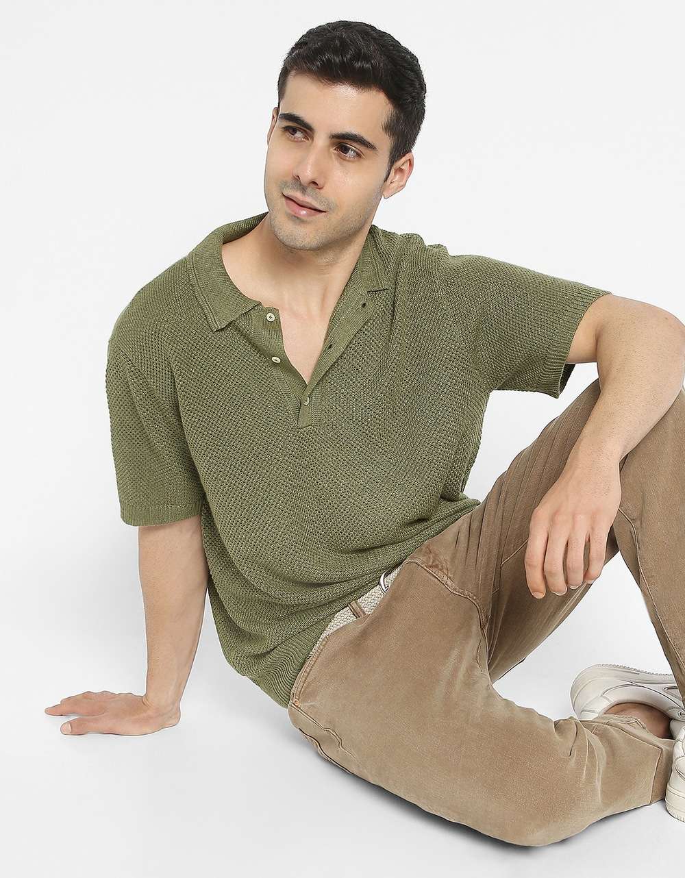 American Eagle Men Bunker Olive Sweater Polo Shirt
