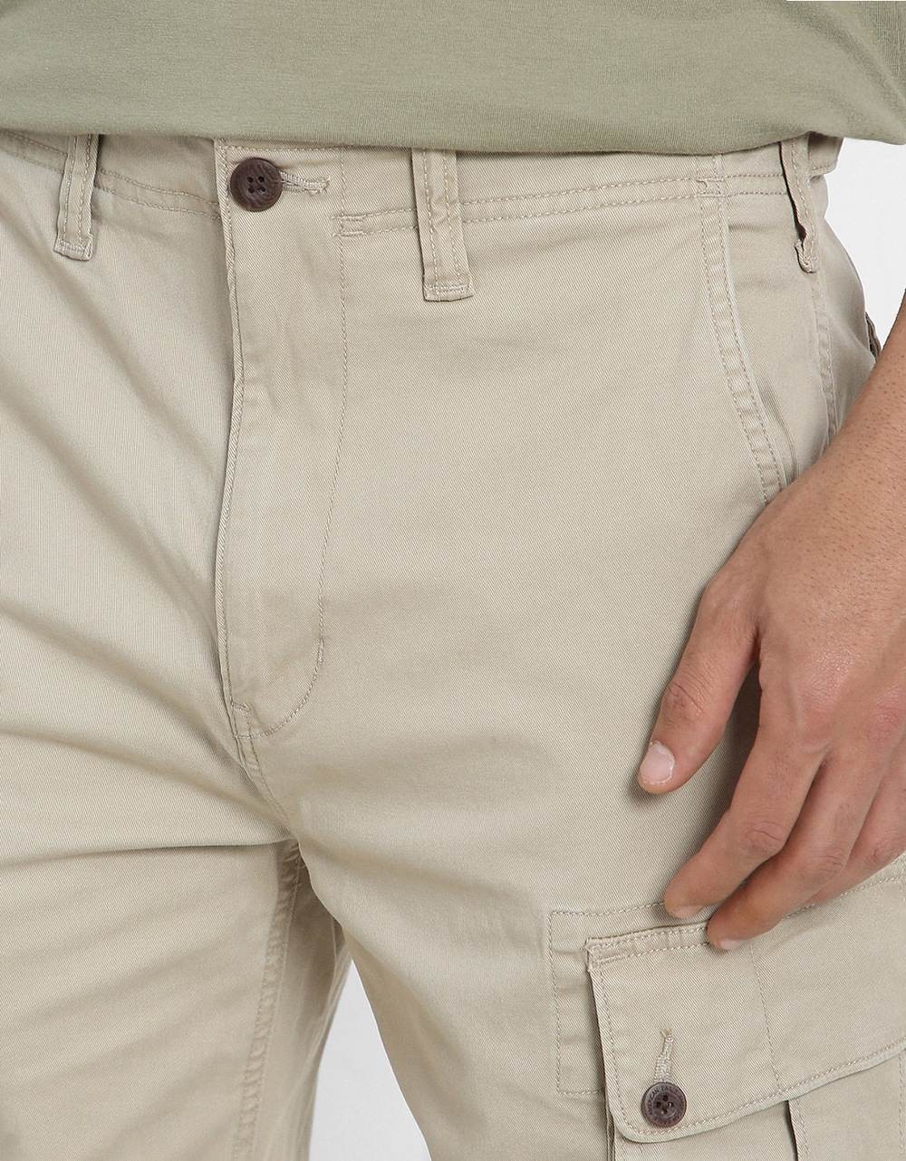 Experience casual comfort with American Eagle`s beige cargo pants, crafted from a cotton and elastane blend for flexibility and breathability. The solid color design ensures versatility, making these pants perfect for laid-back outings. The color wash finish adds a touch of modern appeal while enhancing the overall texture. Ideal for men who appreciate style and ease, these cargo pants are a must-have for any casual wardrobe. Embrace effortless style today.