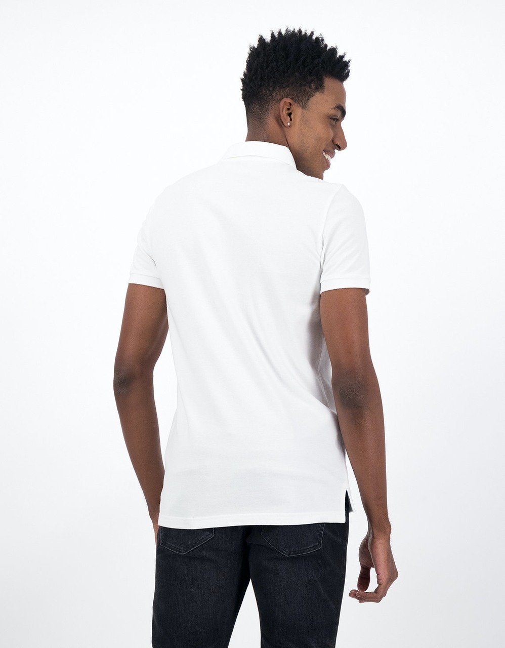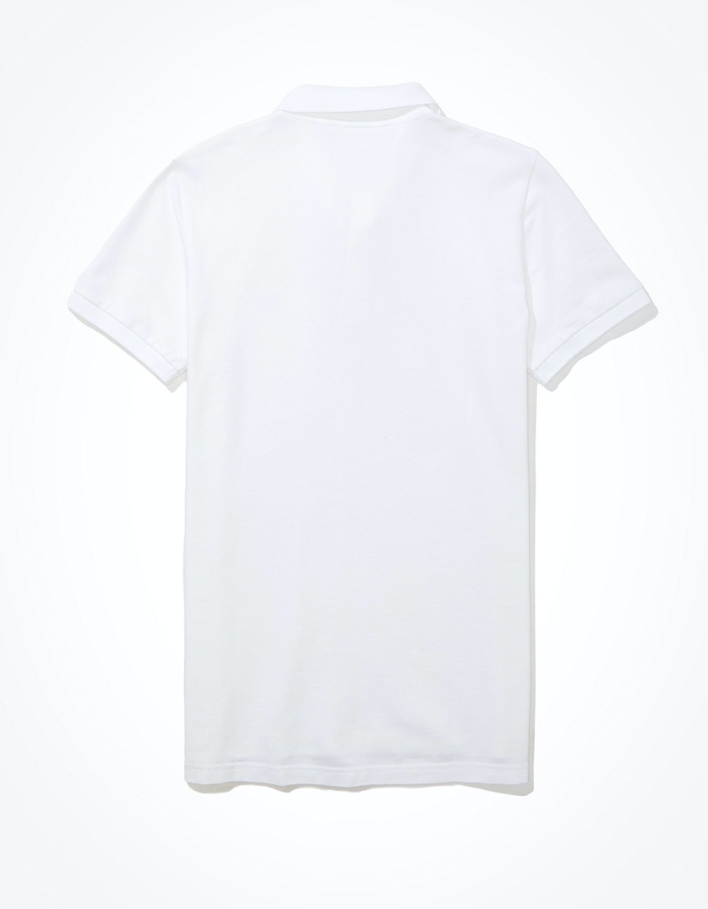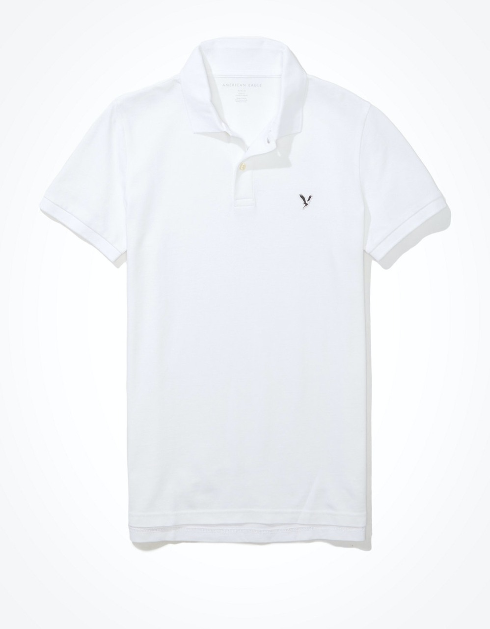 Elevate your casual attire with the American Eagle slim fit white polo shirt. Crafted from a comfortable cotton-elastane blend, it offers both breathability and a touch of stretch for all-day ease. The short sleeves provide a relaxed feel, making it perfect for leisurely outings or laid-back weekends. With its clean design, this polo effortlessly combines style and comfort for a refined yet casual look.