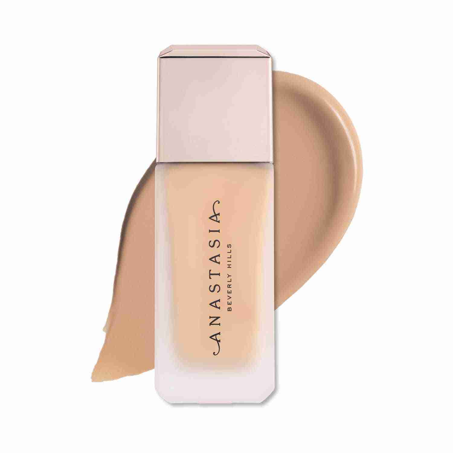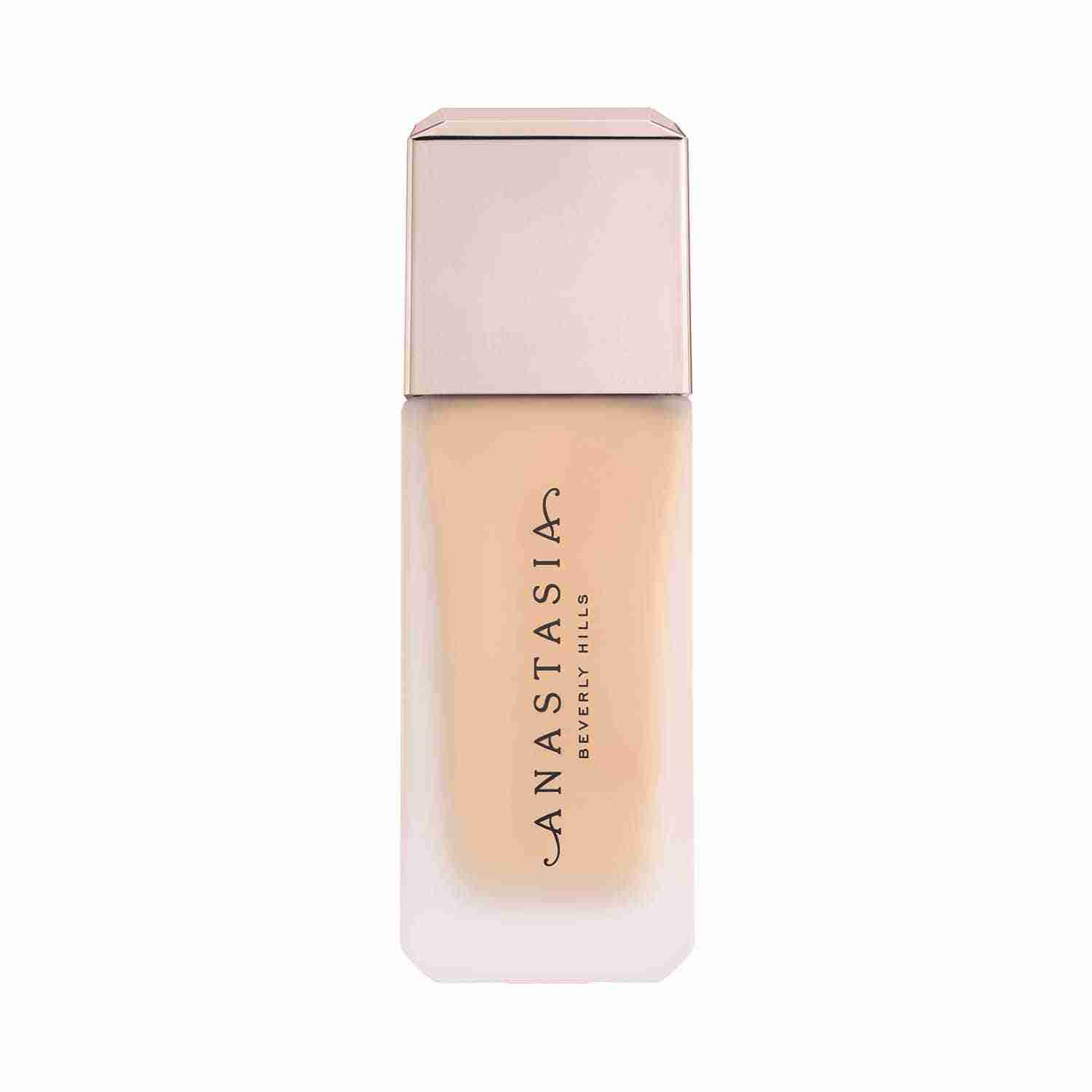 Find your perfect match and flawless coverage with the Anastasia Beverly Hills Impeccable Blurring Second Skin Matte Foundation - 2W (35 ml). This medium to full-coverage foundation delivers a smooth, velvet-matte finish that lasts up to 12 hours. Infused with hyaluronic acid, the Anastasia Beverly Hills foundation hydrates and plumps skin while blurring imperfections like pores and fine lines. Also, this weightless foundation blends seamlessly for a second-skin feel, and it is perfect for all skin types, especially oily skin.