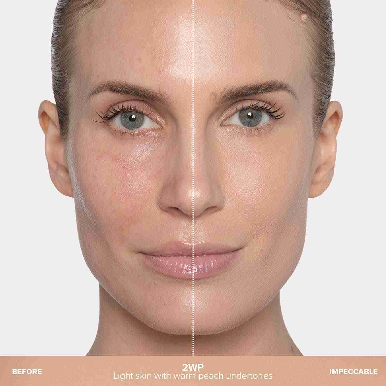Achieve effortlessly smooth skin with the Anastasia Beverly Hills Impeccable Blurring Second Skin Matte Foundation - 2WP (35 ml). This medium to full-coverage foundation delivers a smooth, velvet-matte finish that lasts up to 12 hours. Infused with hyaluronic acid, the Anastasia Beverly Hills foundation hydrates and plumps skin while blurring imperfections like pores and fine lines. Also, this weightless foundation blends seamlessly for a second-skin feel, and it is perfect for all skin types, especially oily skin.