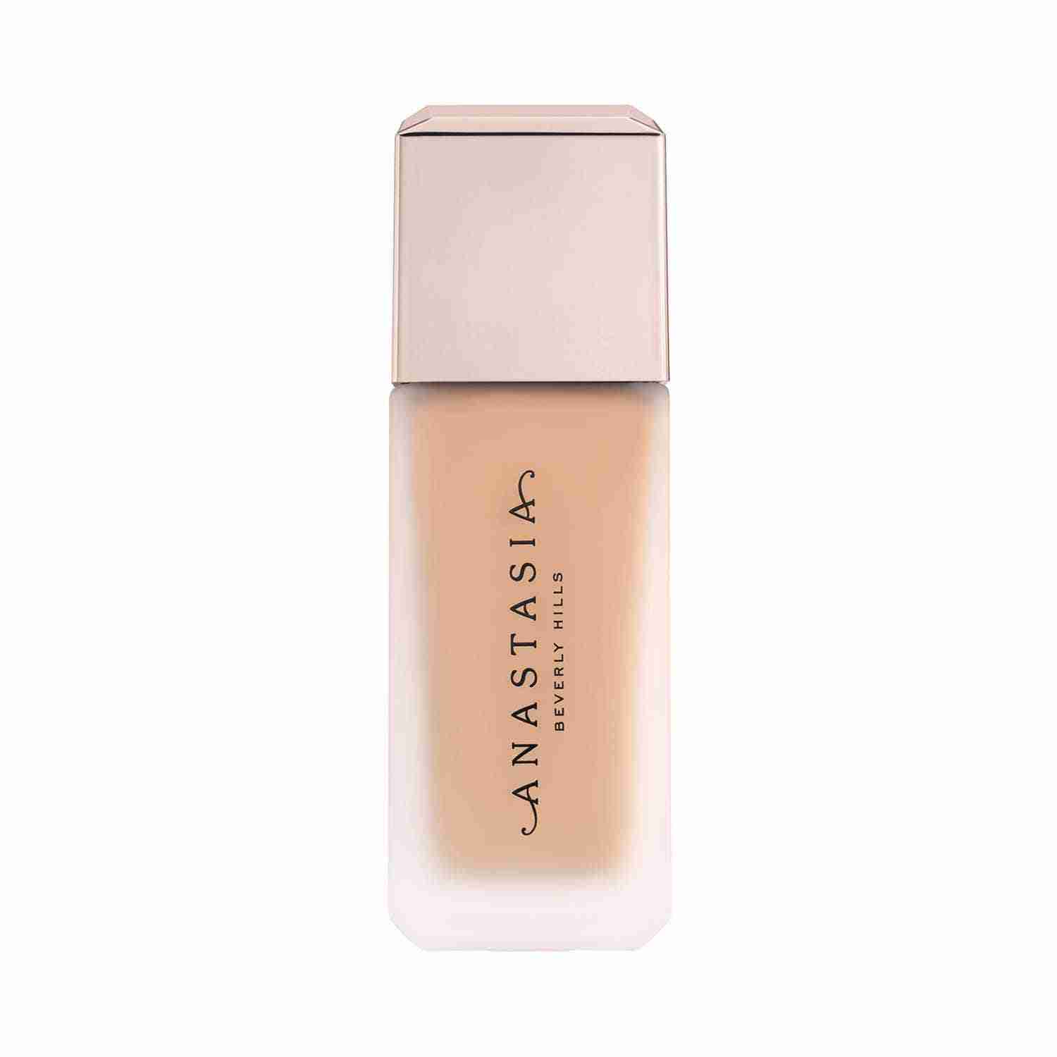 Experience the secret to airbrushed skin with the Anastasia Beverly Hills Impeccable Blurring Second Skin Matte Foundation - 4N (35 ml). This medium to full-coverage foundation delivers a smooth, velvet-matte finish that lasts up to 12 hours. Infused with hyaluronic acid, the Anastasia Beverly Hills foundation hydrates and plumps skin while blurring imperfections like pores and fine lines. Also, this weightless foundation blends seamlessly for a second-skin feel, and it is perfect for all skin types, especially oily skin.