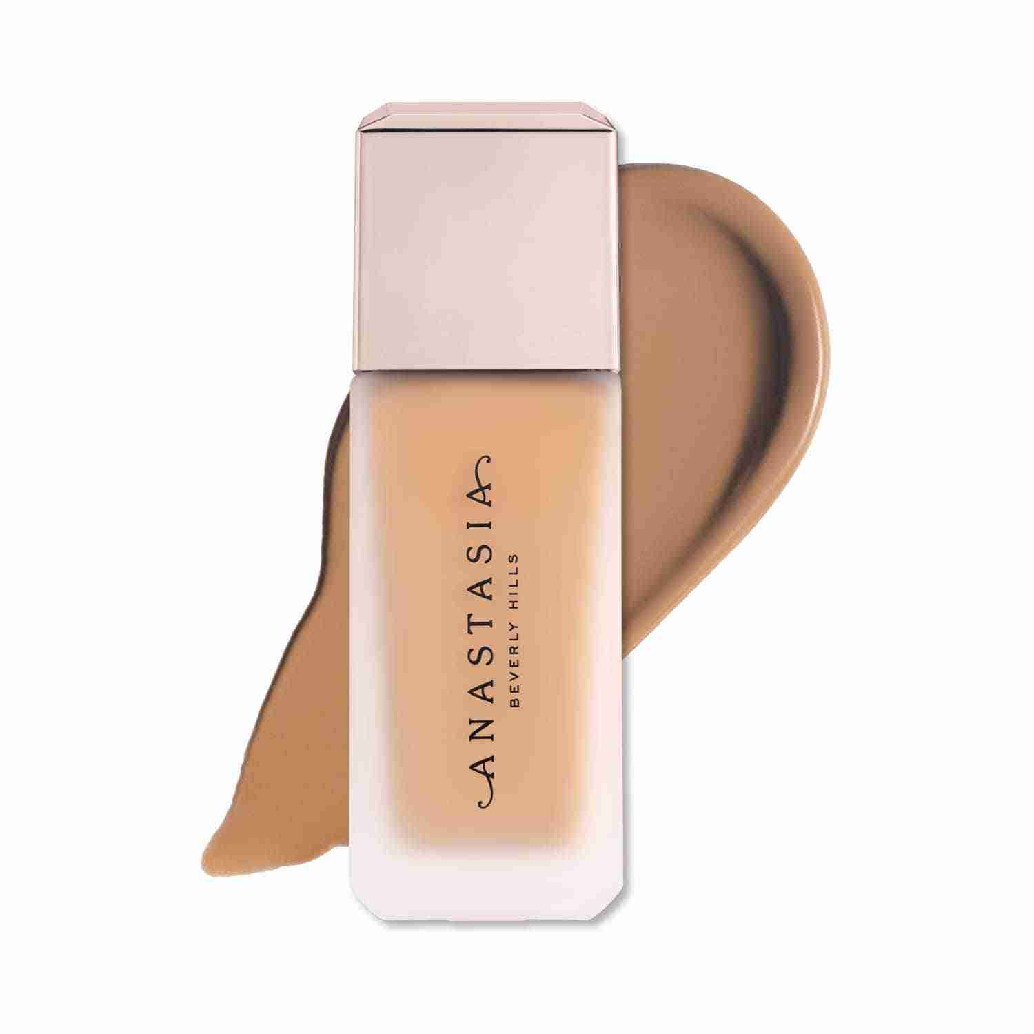 Discover the magic of perfect, radiant skin with the Anastasia Beverly Hills Impeccable Blurring Second Skin Matte Foundation - 4W (35 ml). This medium to full-coverage foundation delivers a smooth, velvet-matte finish that lasts up to 12 hours. Infused with hyaluronic acid, the Anastasia Beverly Hills foundation hydrates and plumps skin while blurring imperfections like pores and fine lines. Also, this weightless foundation blends seamlessly for a second-skin feel, and it is perfect for all skin types, especially oily skin.