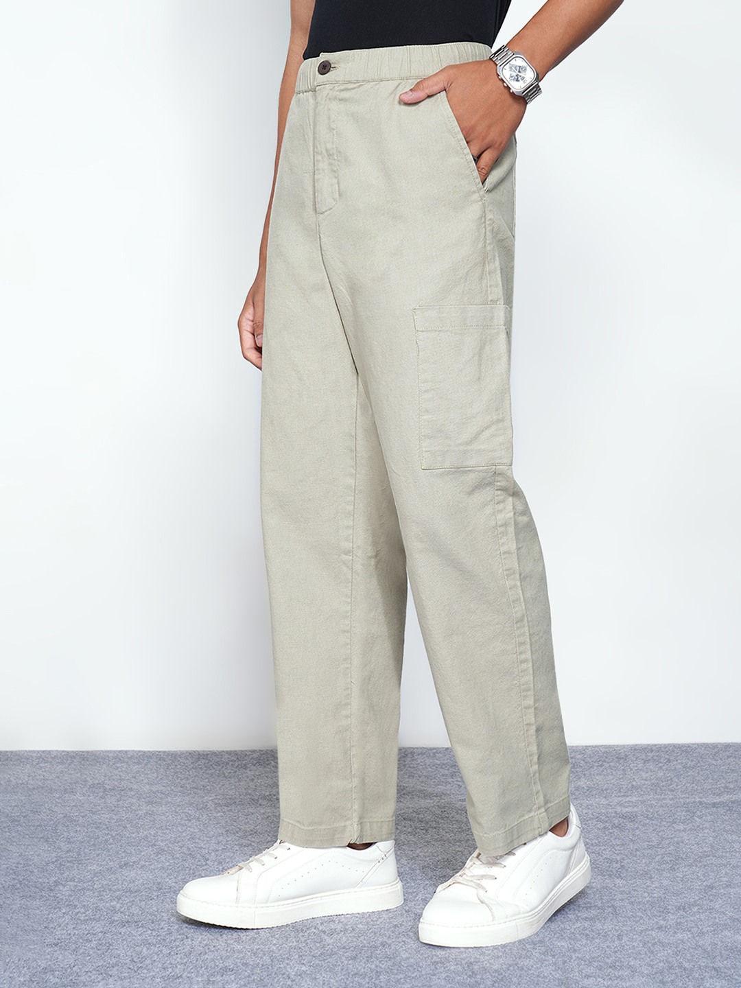 A utility-inspired essential designed with a clean chino structure and roomy cargo pockets. Cut in a relaxed fit with a part-elasticated waistband and belt loops for ease and movement. Finished with dual patch pockets at the back, adding a casual yet refined edge.