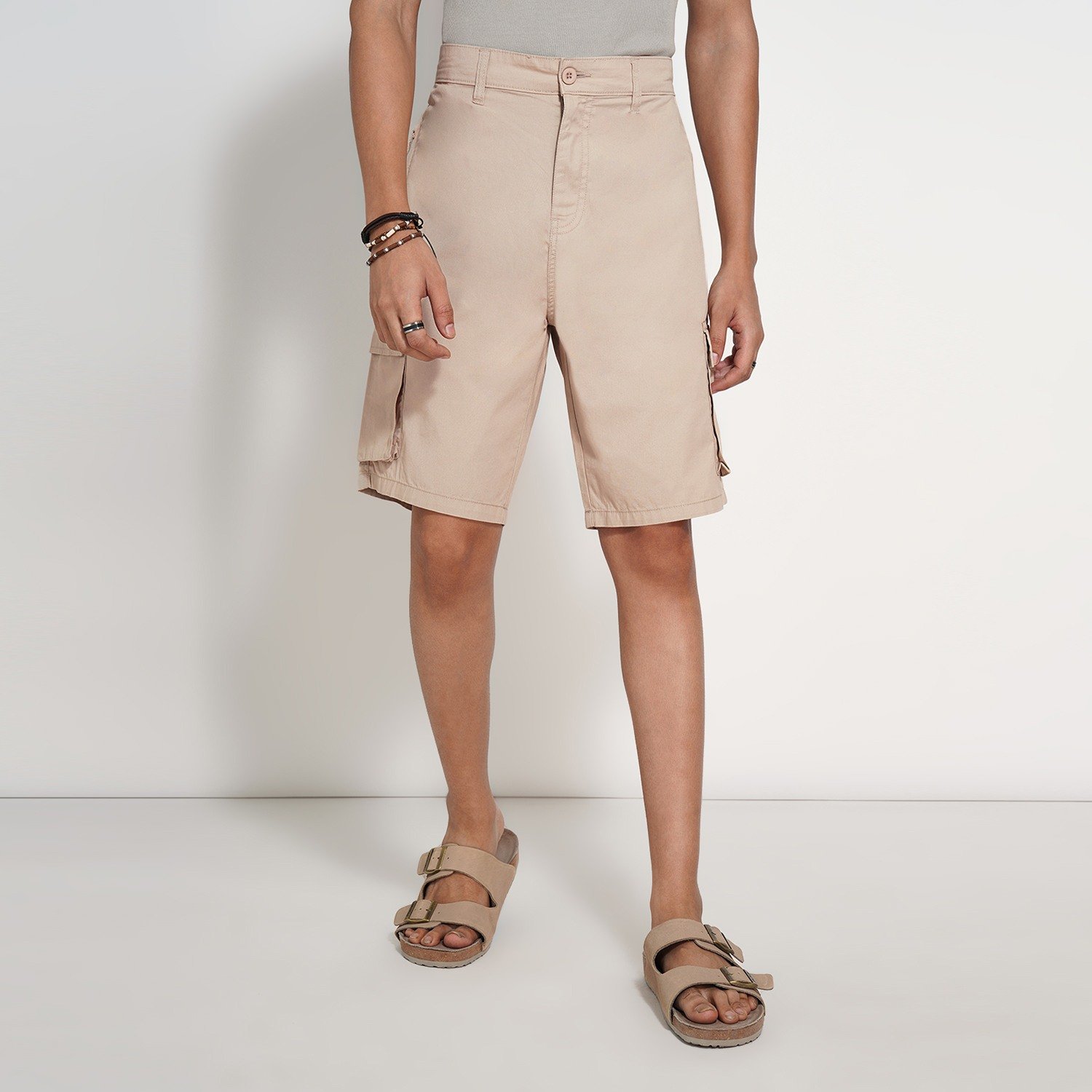 Home/Shorts/7 Alt by Pantaloons/beige solid cargo shorts