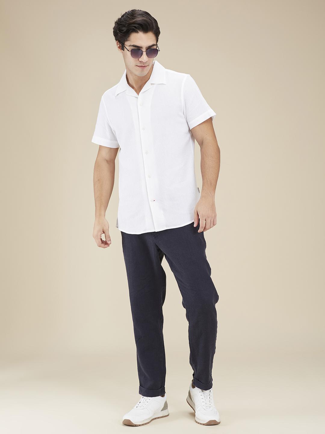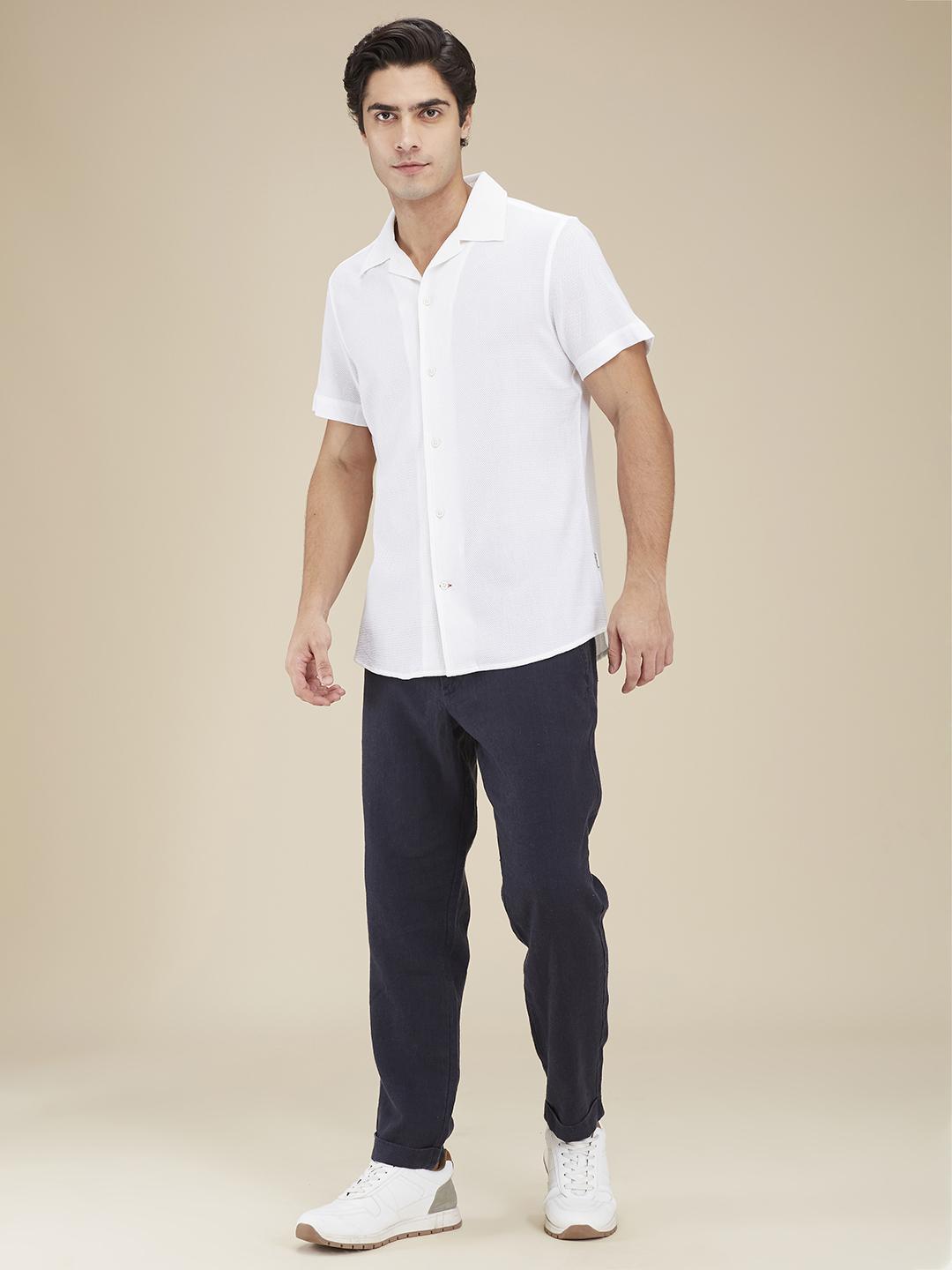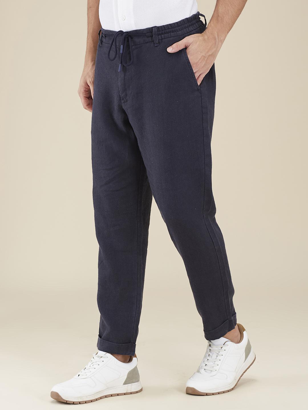 Step out in style with these navy chinos from Being Human. The mid-rise waist and solid pattern offer a sleek, versatile look for casual outings. These trousers blend comfort and sophistication, making them perfect for various occasions. Elevate your everyday wardrobe with these essential chinos.