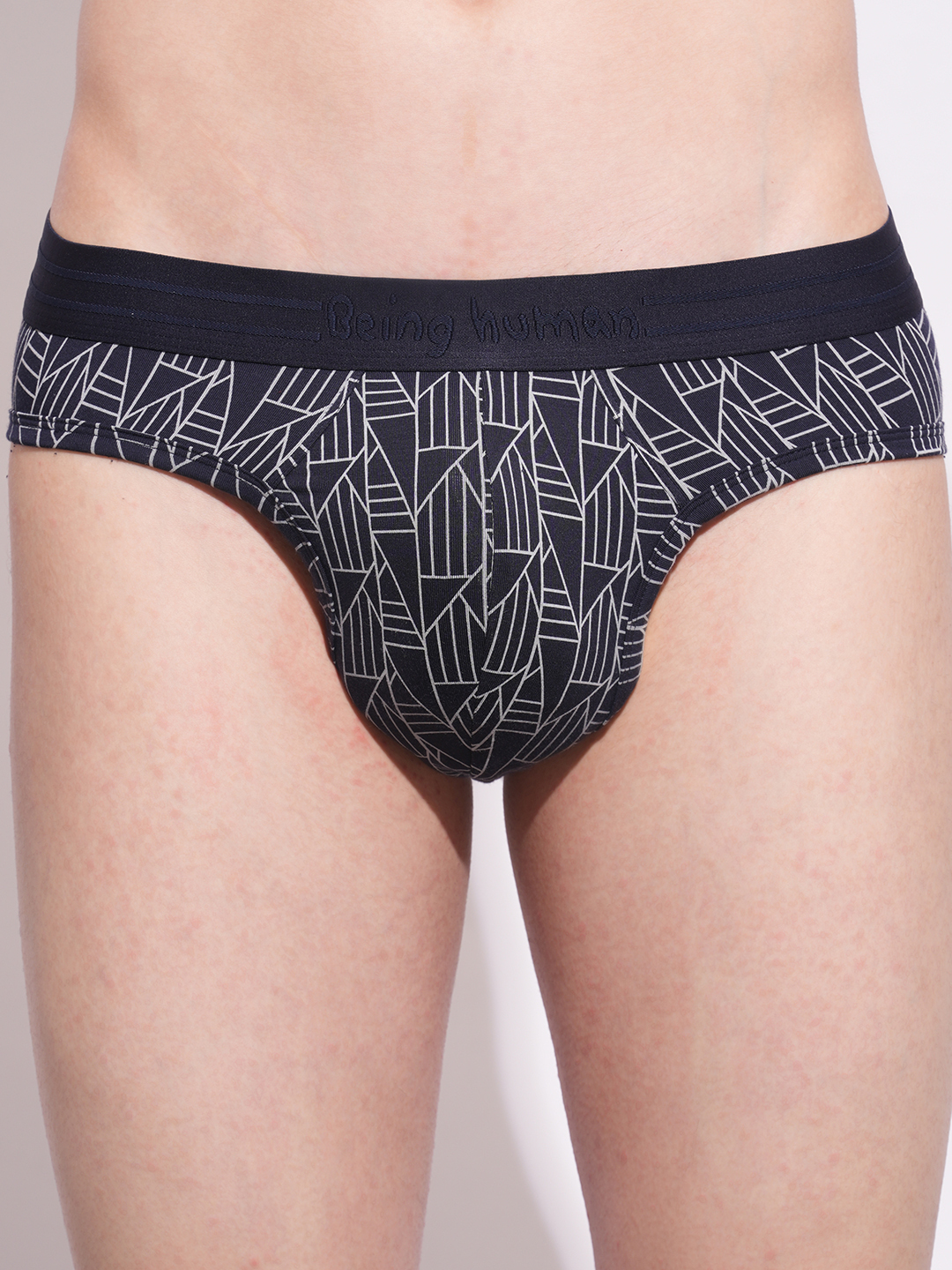 Being Human Men's Navy Prt Mid Rise Brief Underwear