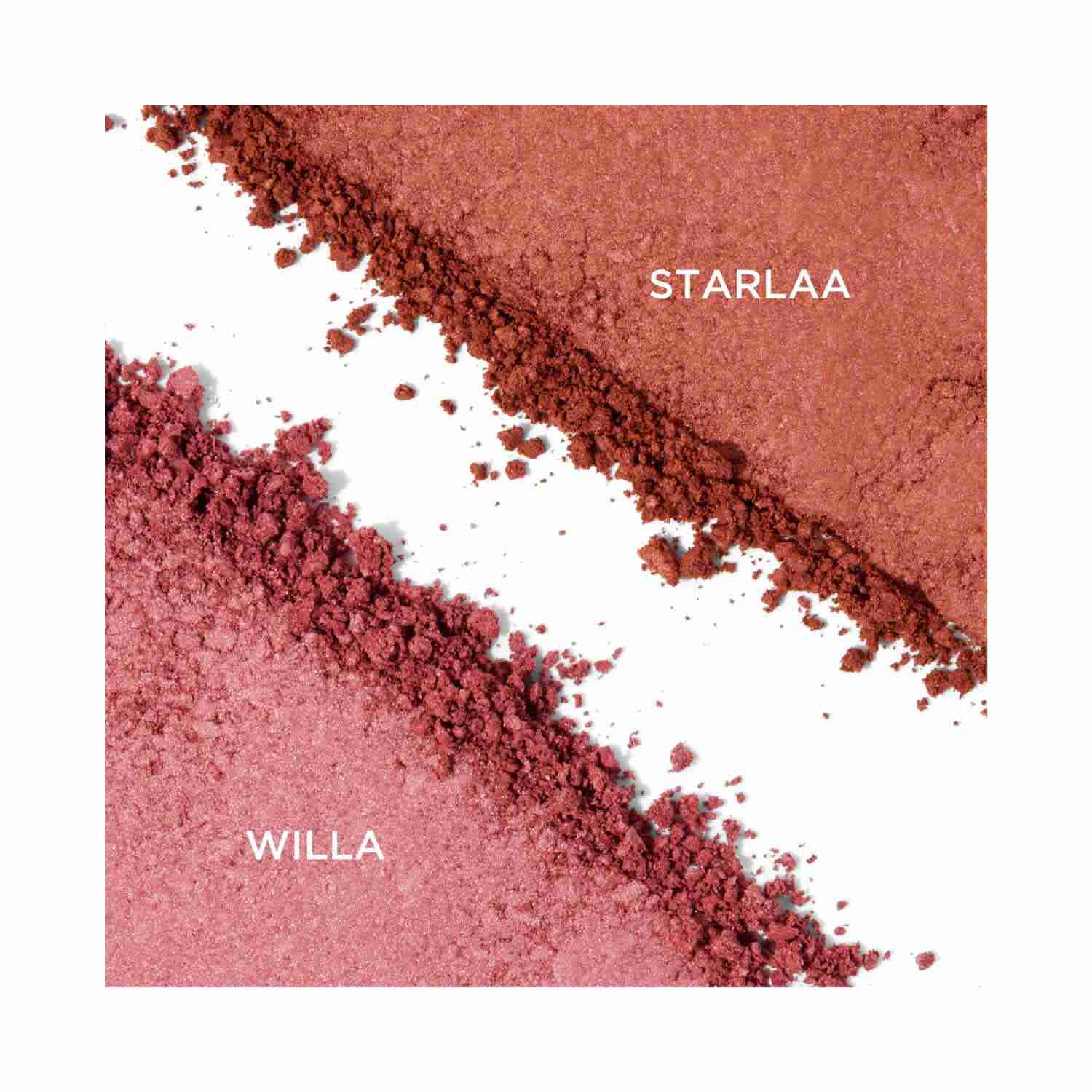 Willa Soft Neutral-Rose Blush Synthetic Fluorphlogopite, Mica, Zinc Stearate, Lauryl Dimethicone, Pentaerythrityl Tetraisostearate, Alumina, Vinyl Dimethicone/Methicone Silsesquioxane Crosspolymer, Dimethicone/Vinyl Dimethicone Crosspolymer, Caprylyl Glycol, Ethylhexylglycerin, Dehydroacetic Acid, Triethoxycaprylylsilane, Parfum (Fragrance), Pearl Powder, Stearic Acid, Laureth-4, Aqua (Water), Tocopherol. [+/- Ci 77891 (Titanium Dioxide), Ci 77491, Ci 77492, Ci 77499 (Iron Oxides), Ci 77007 (Ultramarines), Ci 15850 (Red 6, Red 7 Lake)]. Starlaa Rosy Bronze Blush Synthetic Fluorphlogopite, Mica, Zinc Stearate, Lauryl Dimethicone, Pentaerythrityl Tetraisostearate, Alumina, Vinyl Dimethicone/Methicone Silsesquioxane Crosspolymer, Dimethicone/Vinyl Dimethicone Crosspolymer, Caprylyl Glycol, Ethylhexylglycerin, Dehydroacetic Acid, Parfum (Fragrance), Triethoxycaprylylsilane, Pearl Powder, Stearic Acid, Laureth-4, Aqua (Water), Tocopherol. [+/- Ci 77491, Ci 77492, Ci 77499 (Iron Oxides), Ci 77891 (Titanium Dioxide)].