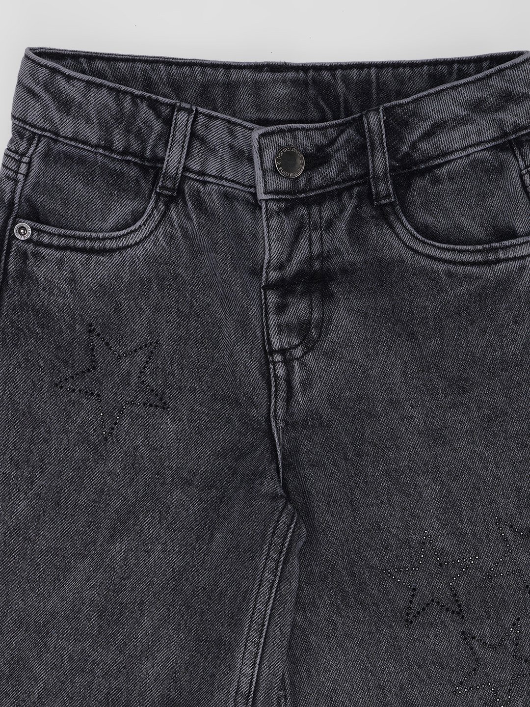 Home/Jeans/Pantaloons Junior/black acid wash wide leg jeans with starry print