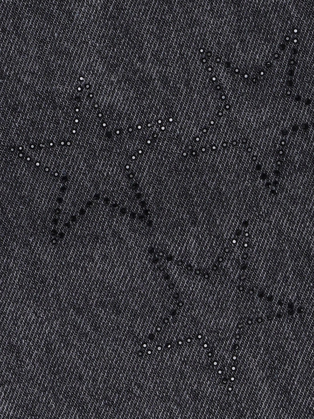 Black Acid Wash Wide Leg Jeans with Starry Print