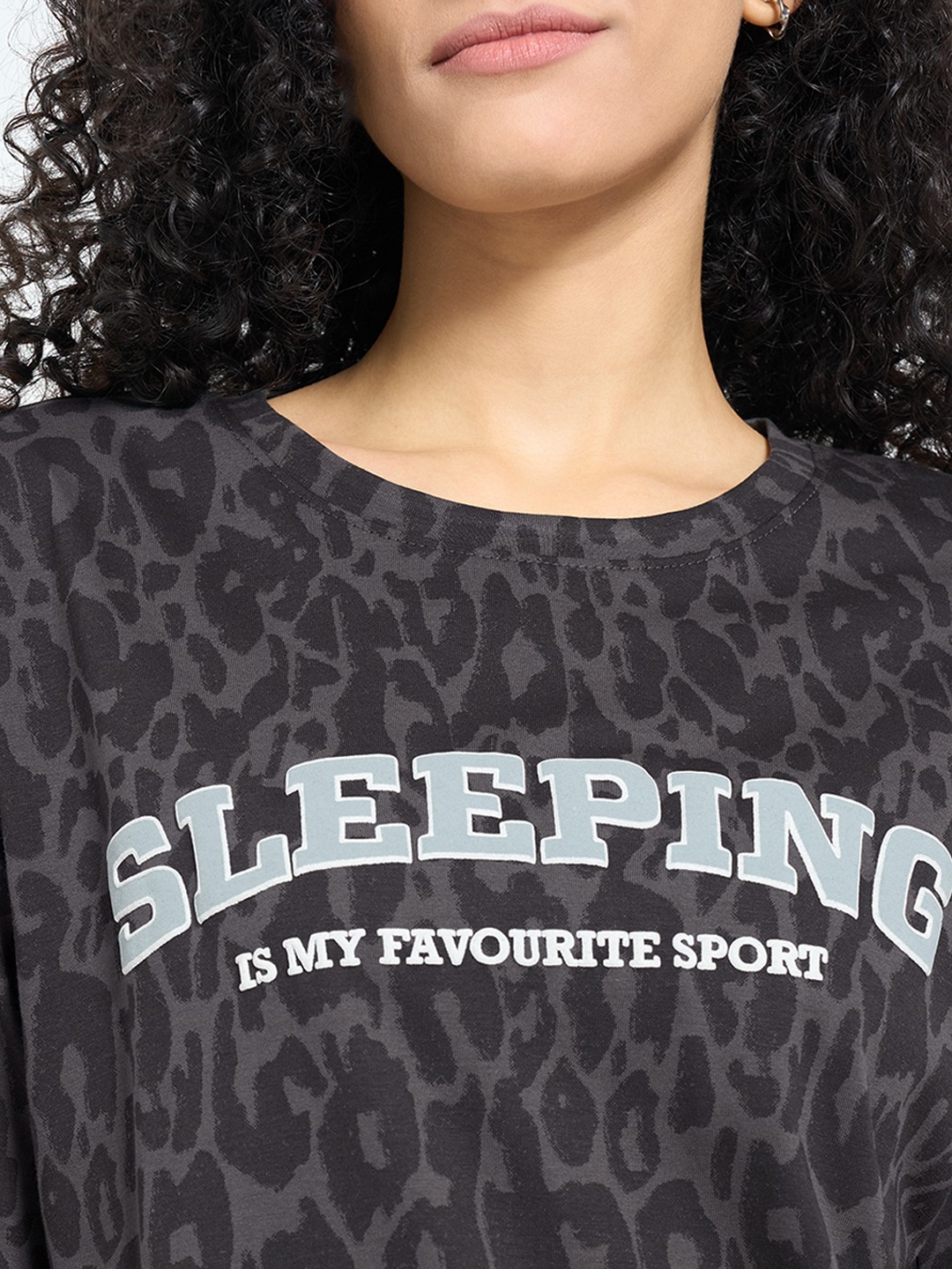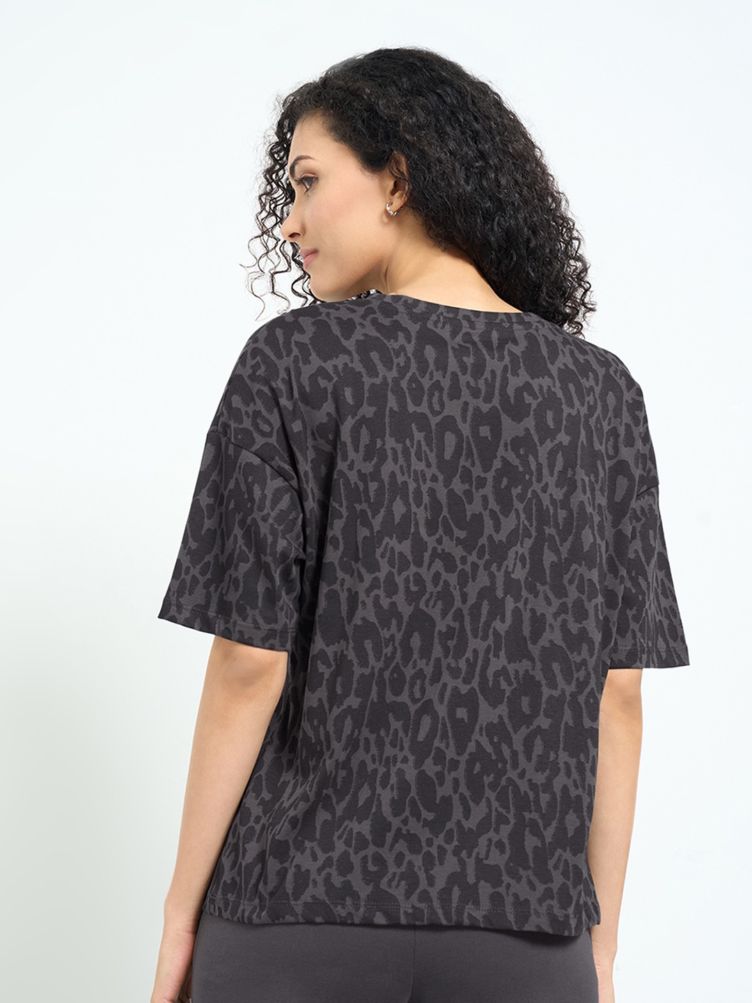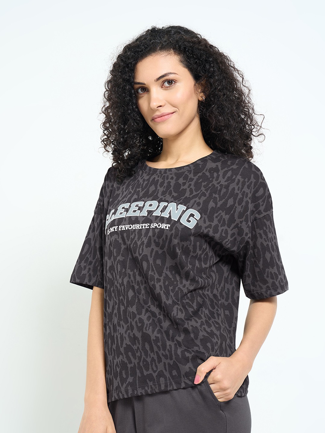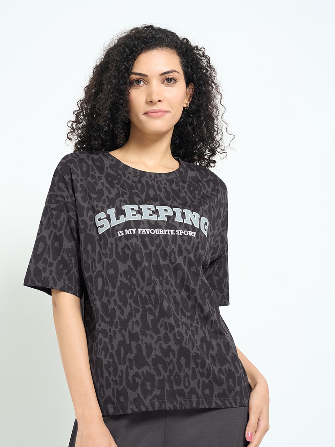 Home/T-Shirts/Dreamz by Pantaloons/black animal print lounge top