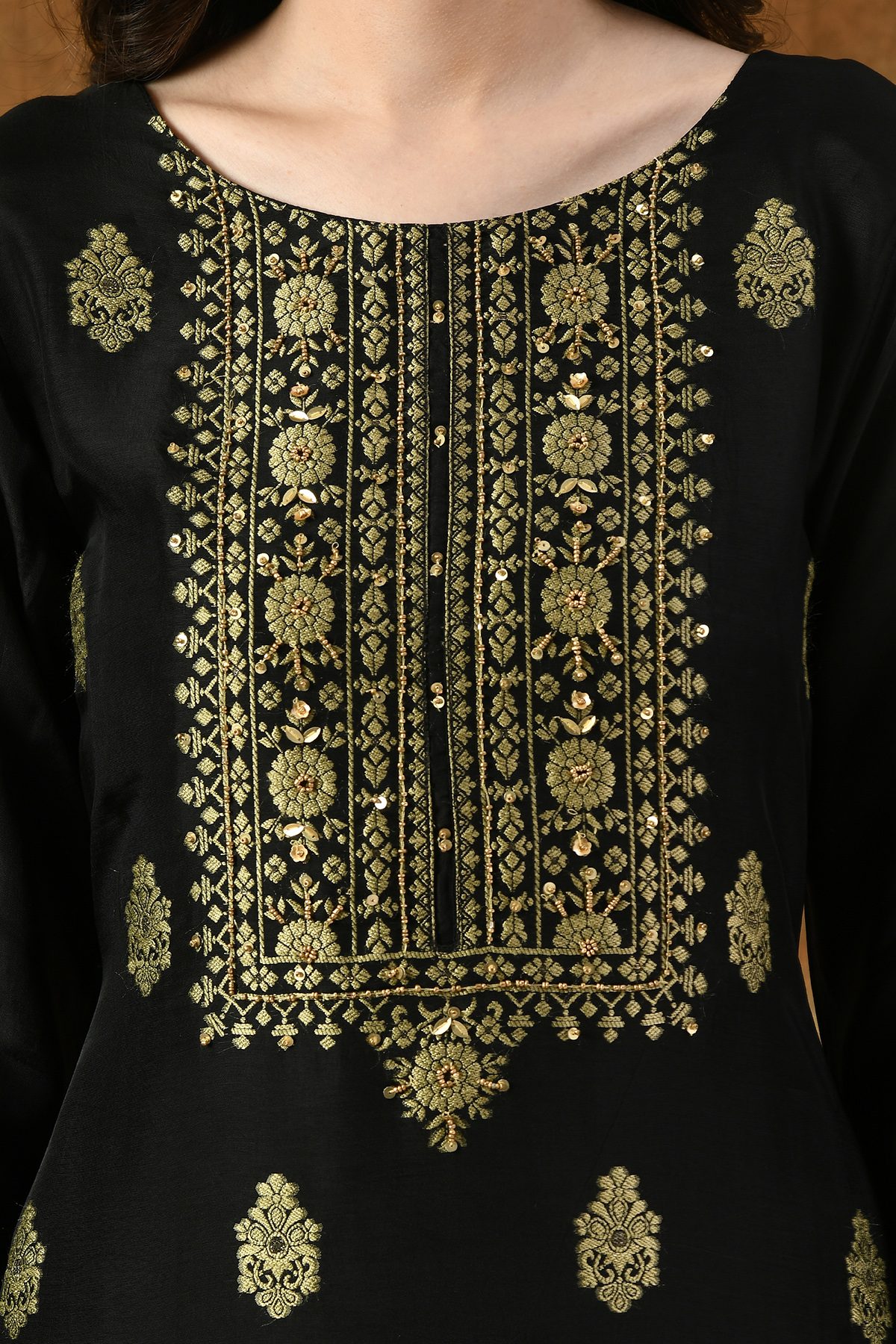 Home/Kurta Sets/Sabhyata/black embroidered straight kurta set