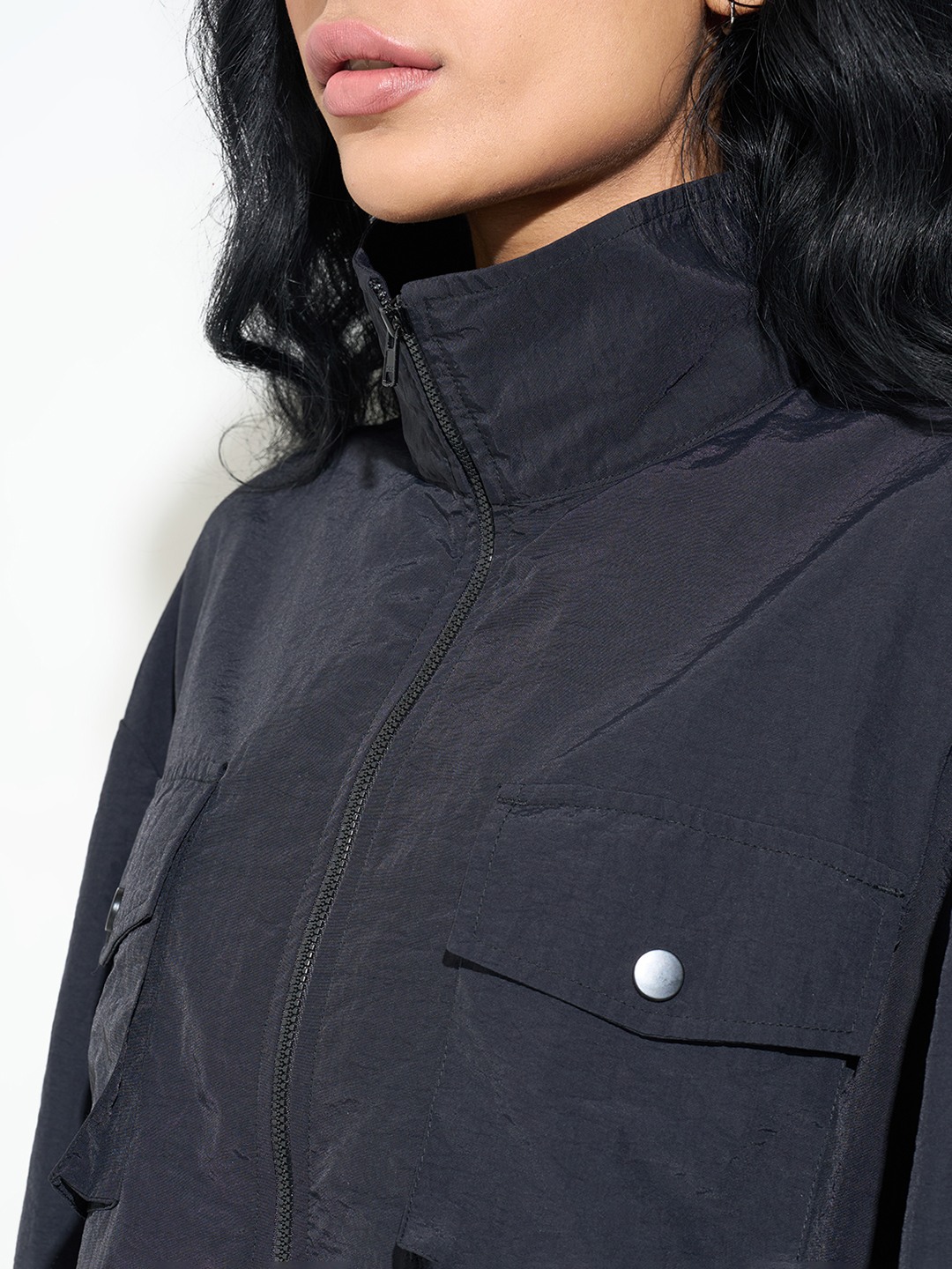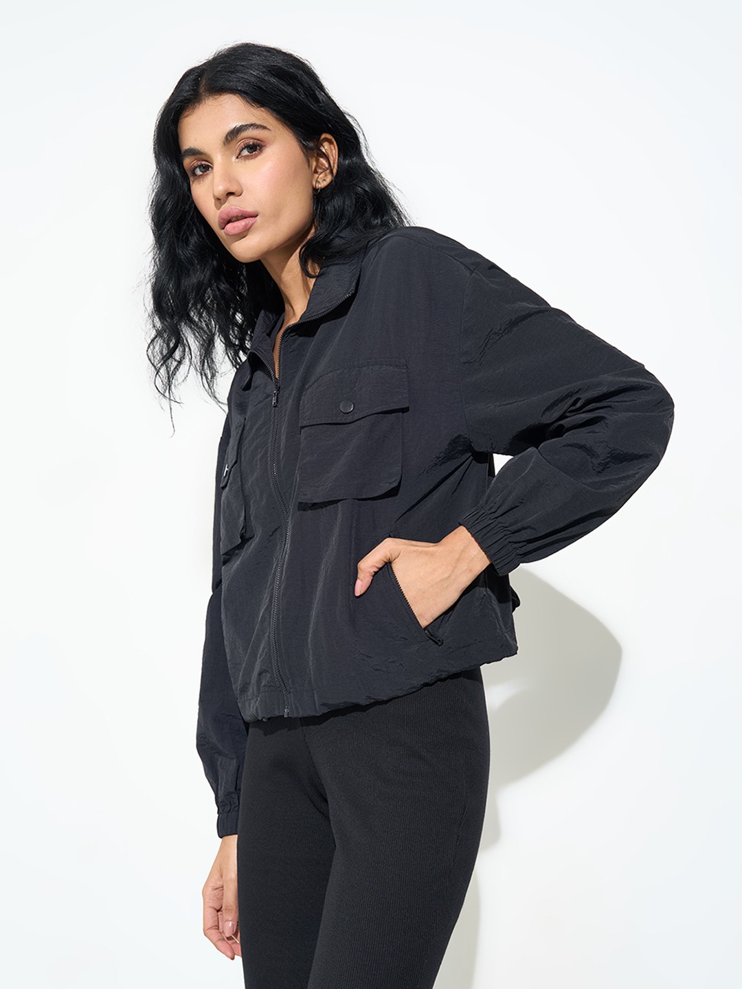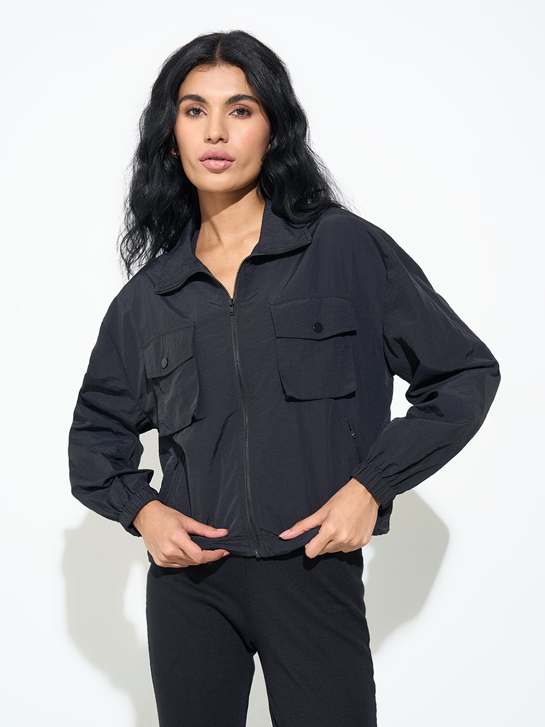 Athleisure wear that is as stylish as practical. This jacket has a convertible collar with a zipper opening, full sleeves and a dark body with chest pockets. Made of prime quality fabric to deliver extraordinary comfort while you chill out.