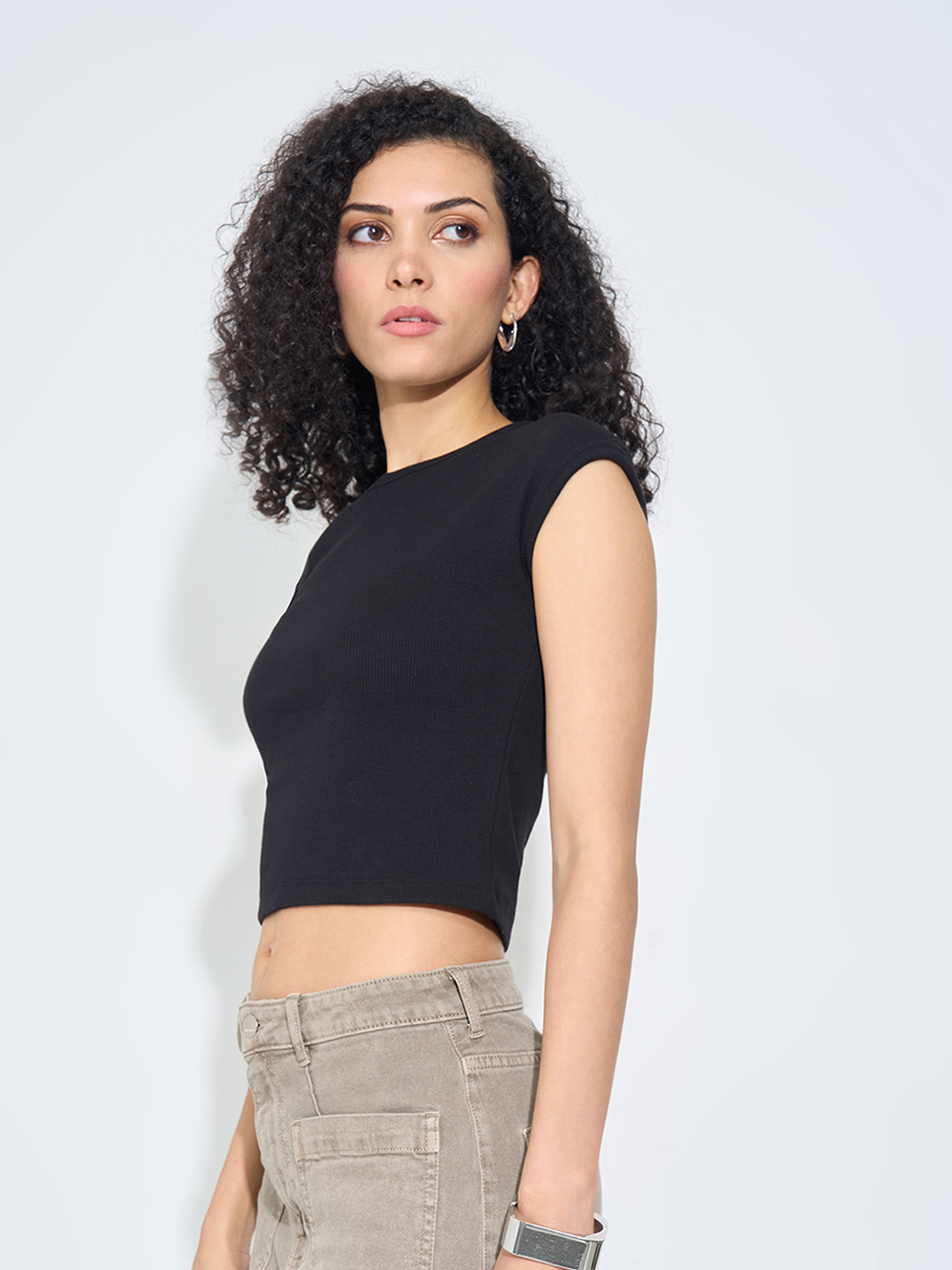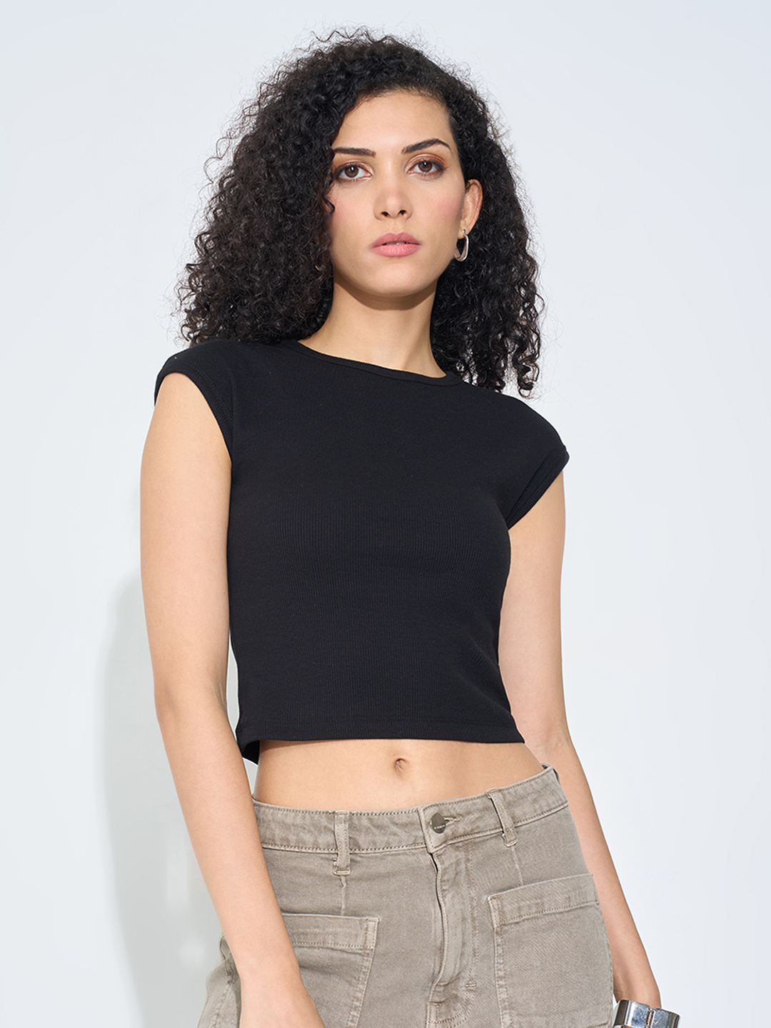 Home/Tops/SF JEANS by Pantaloons/black solid ribbed crop top