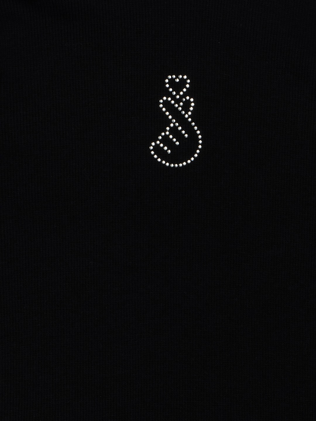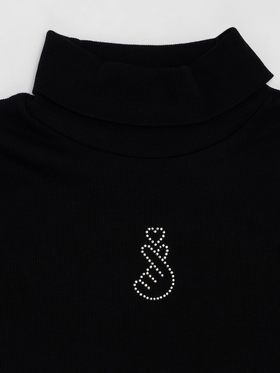 Black Solid Turtleneck Minimal Print Sweatshirt