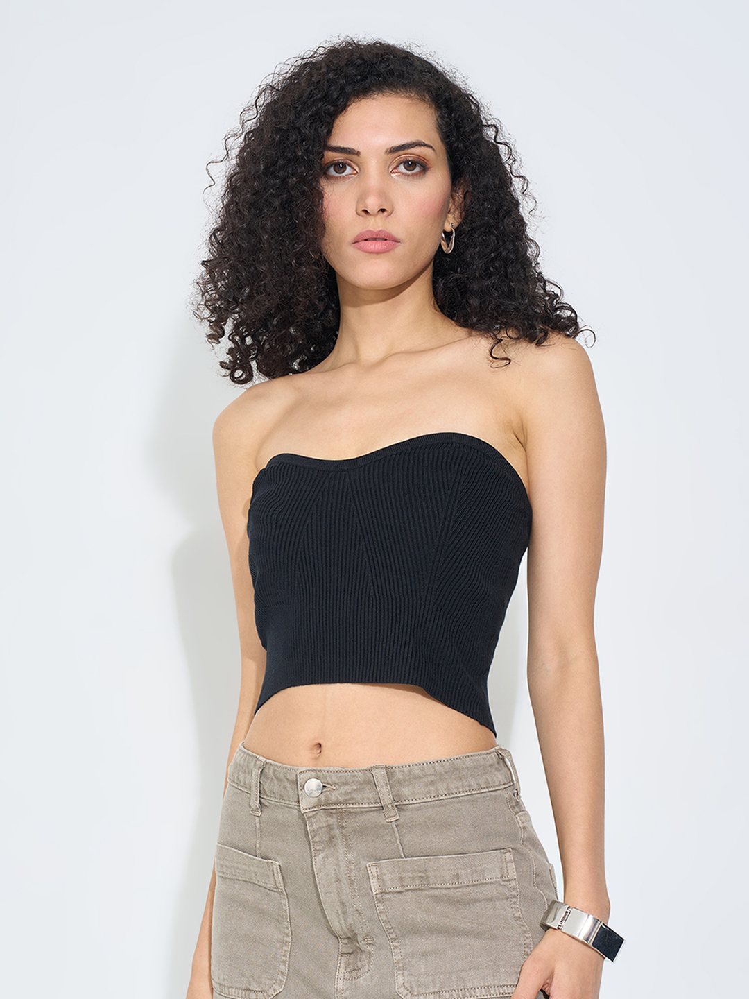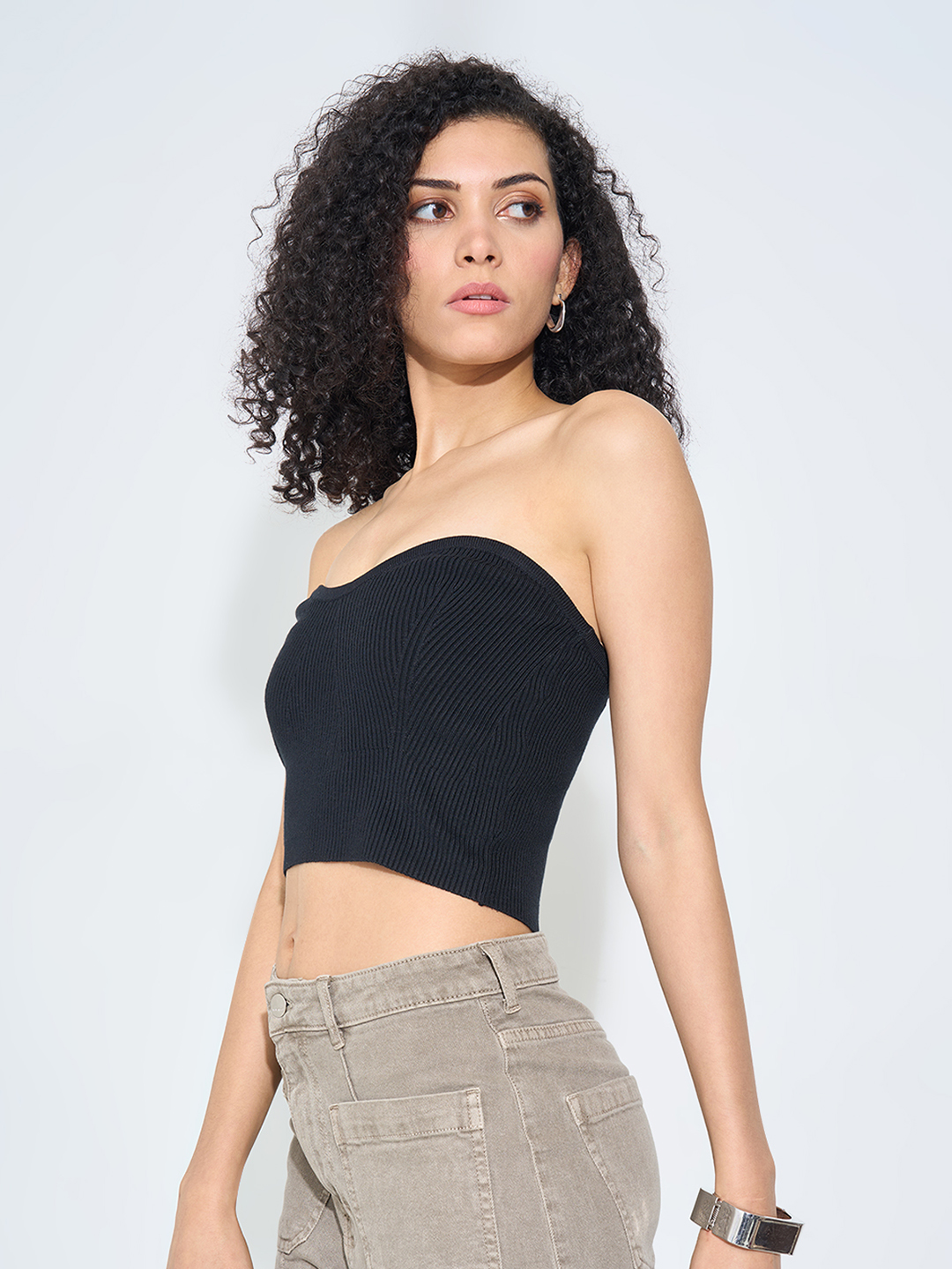 Home/Tops/SF JEANS by Pantaloons/black strapless ribbed crop top