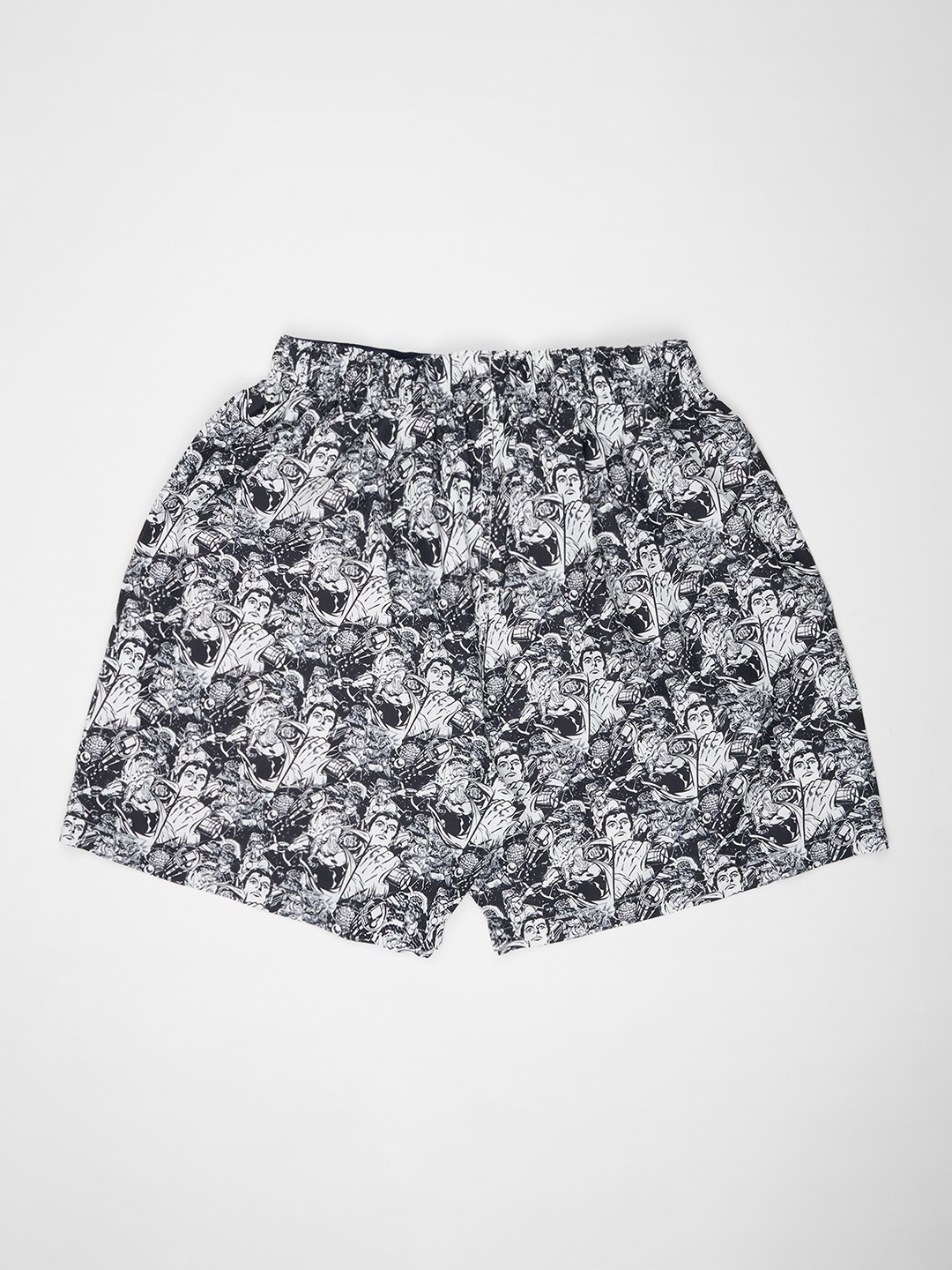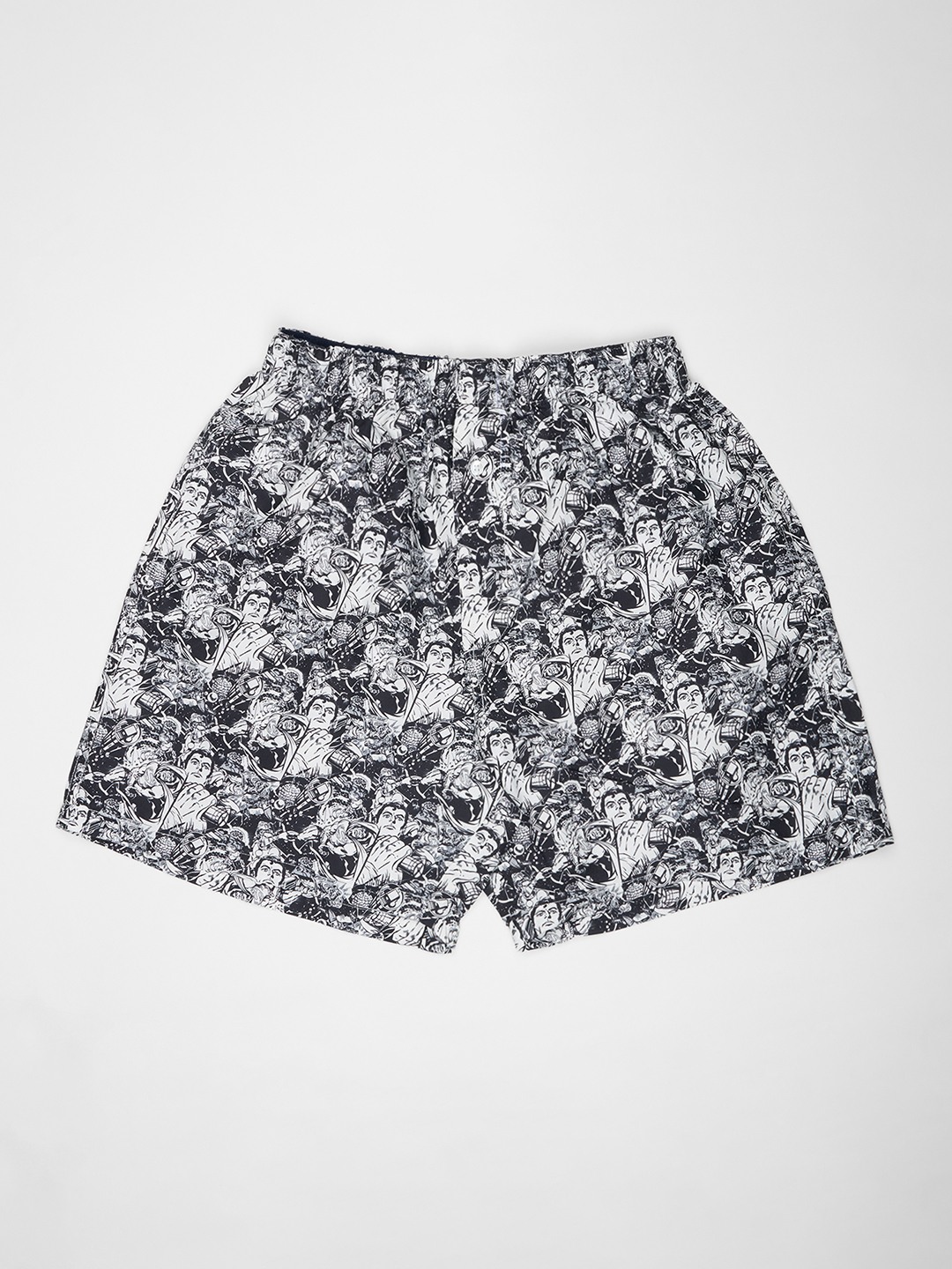 Add a bold twist to your essentials with these Superman-print boxers in a striking monochrome palette. Crafted from soft woven fabric with an elasticated waistband and button fly, they offer ease and structure in equal measure. The detailed superhero motifs bring a playful, comic-inspired edge to your lounge rotation.