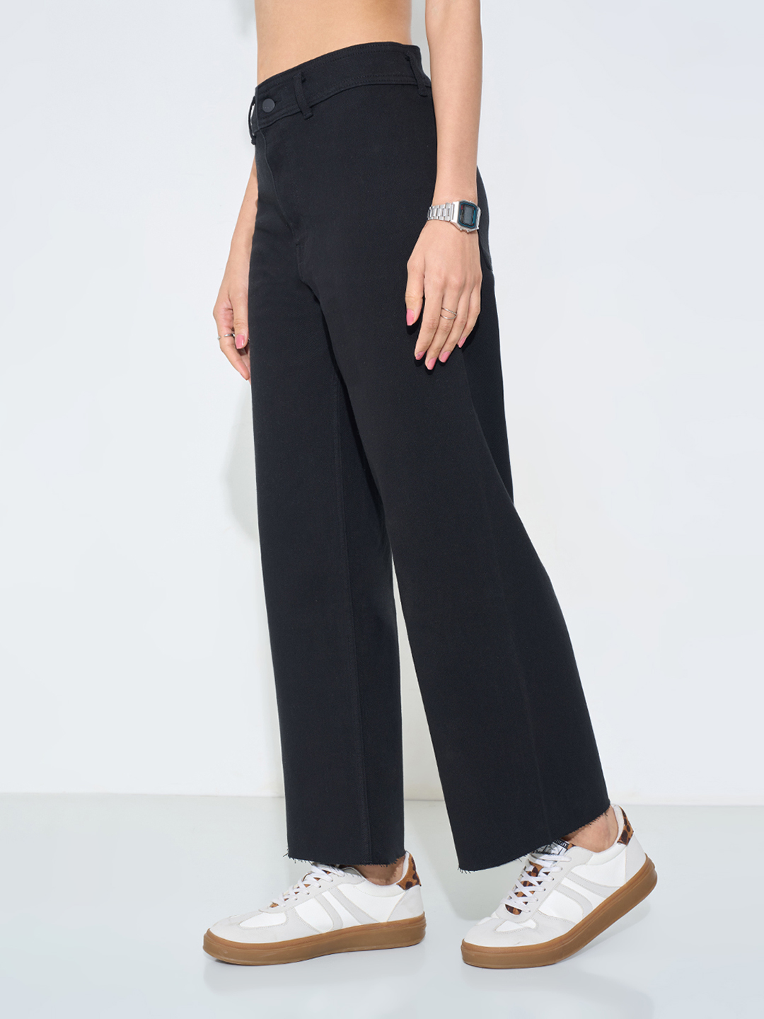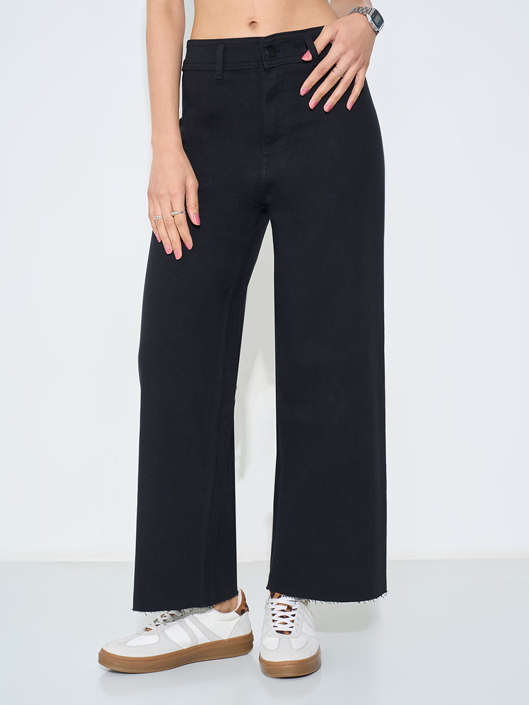 Home/Jeans/SF JEANS by Pantaloons/black wide-leg jeans with raw hem