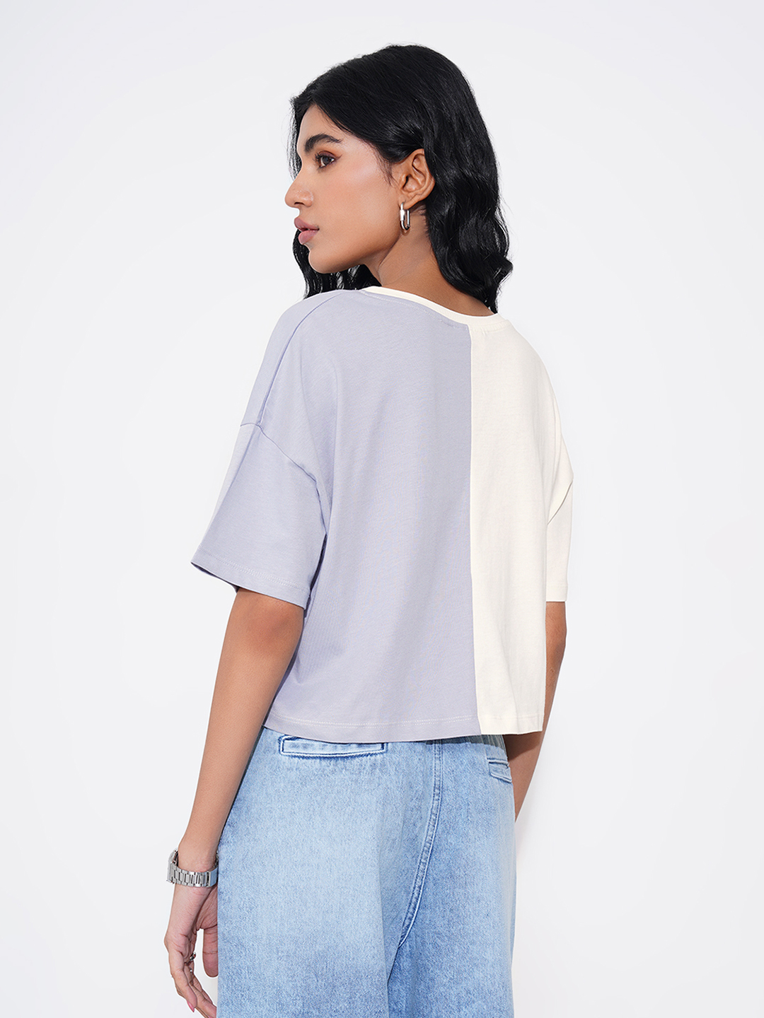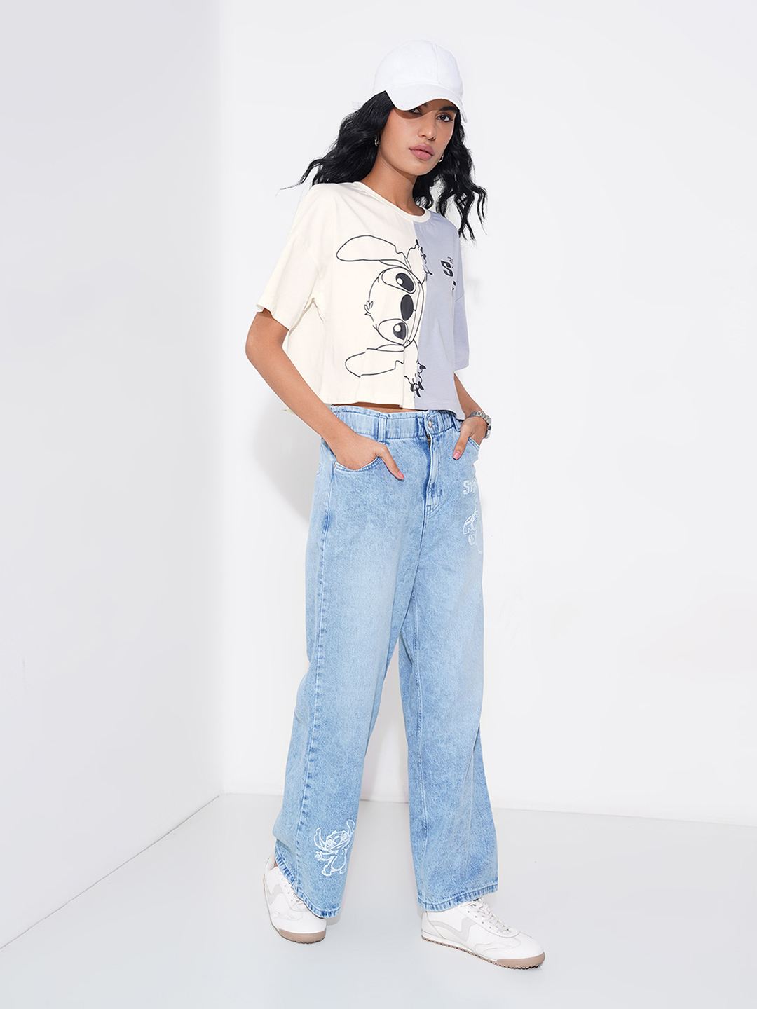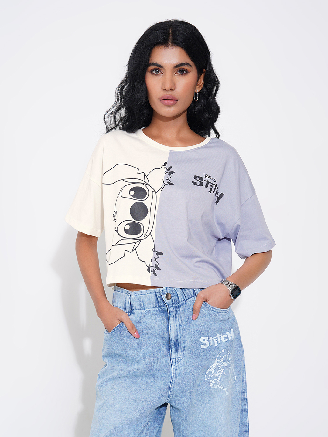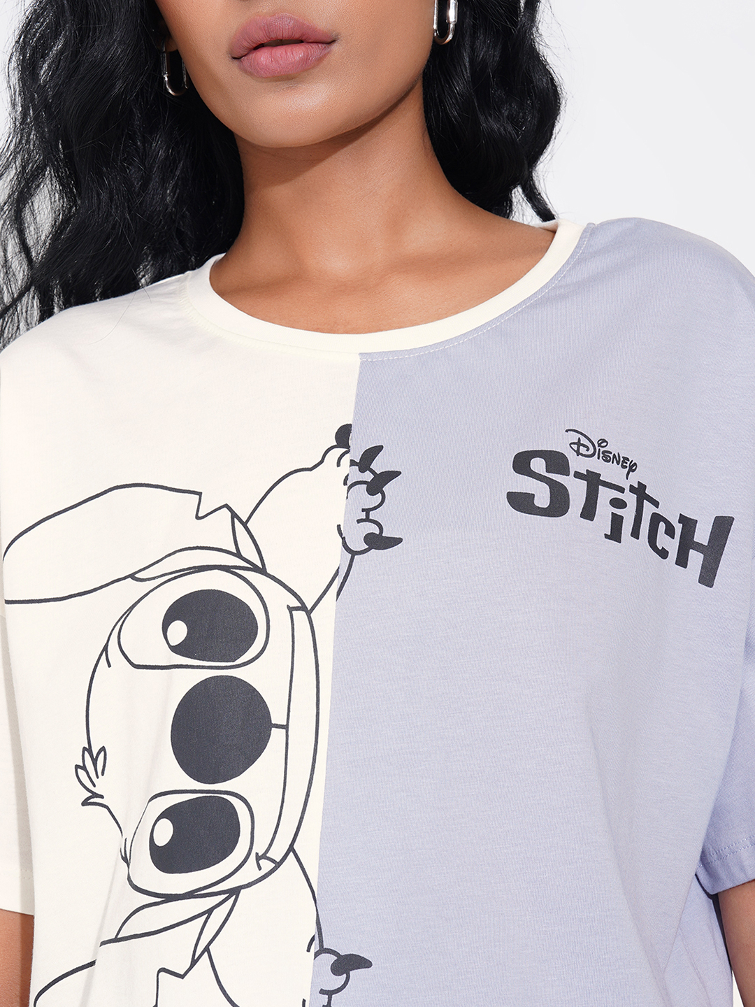 Home/T-Shirts/SF JEANS by Pantaloons/blue colour block lilo & stitch oversized graphic t-shirt