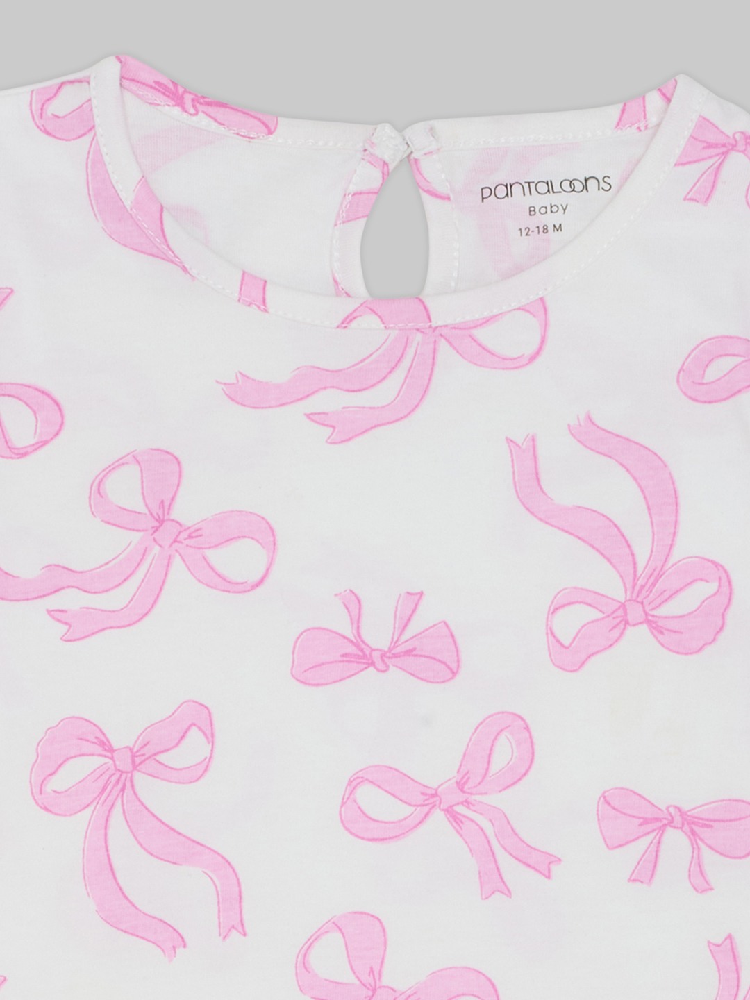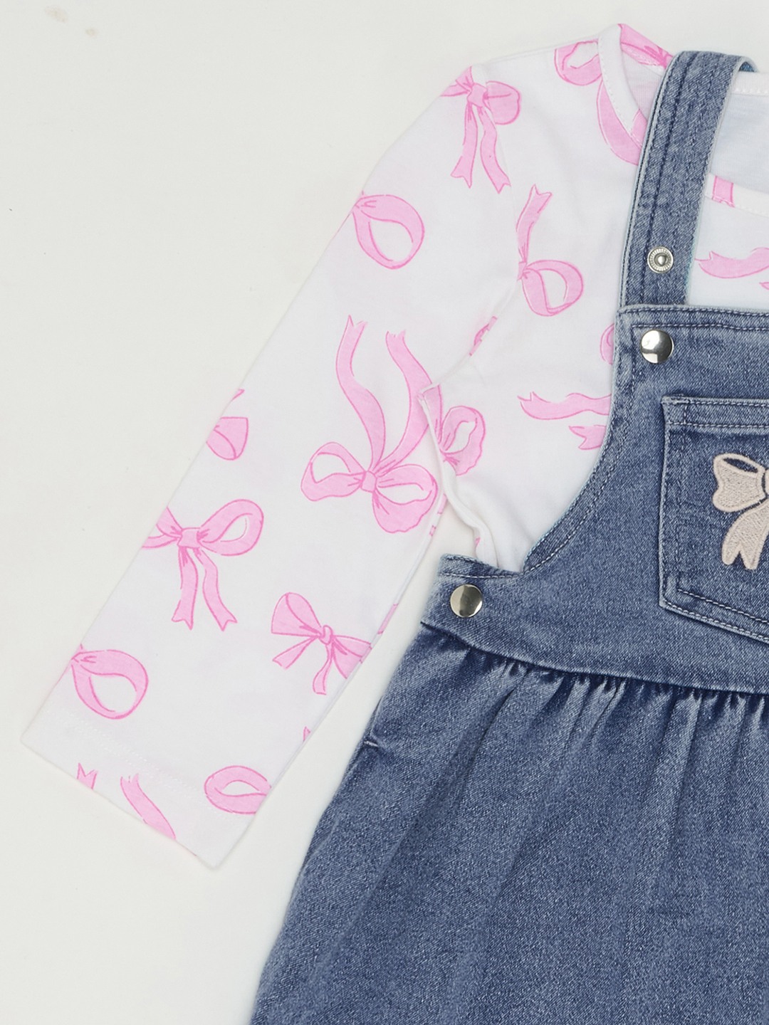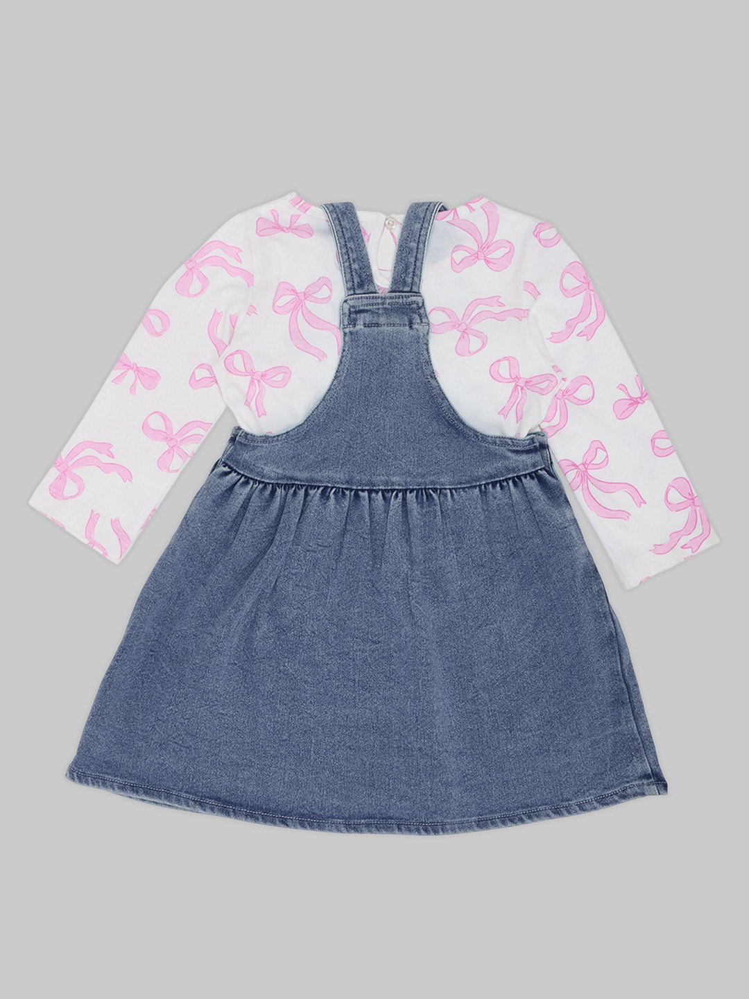 Home/Dresses/Pantaloons Baby/blue denim dungarees & bow print t-shirt