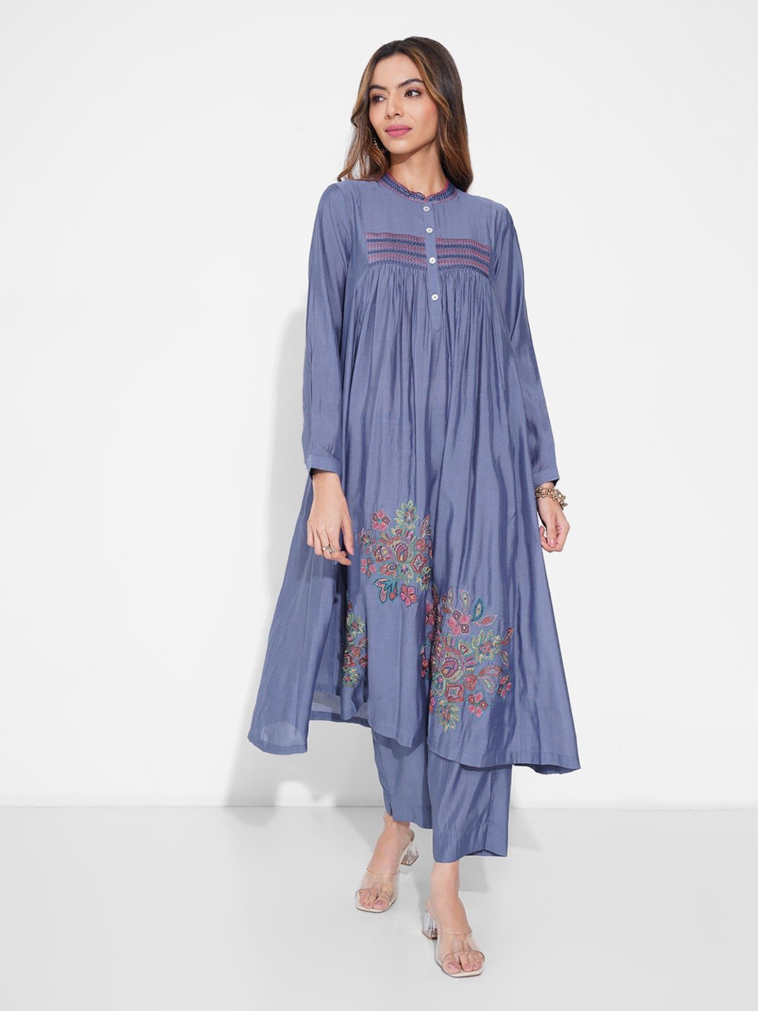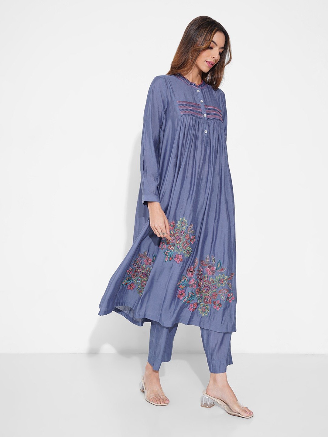 Home/Kurta Sets/RANGMANCH by Pantaloons/blue embroidered kurta & pants set