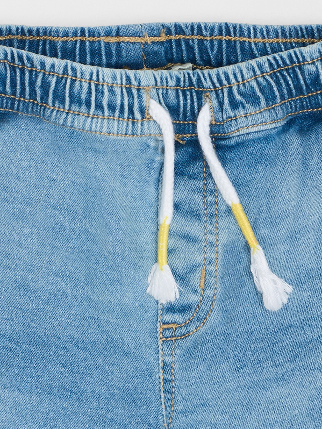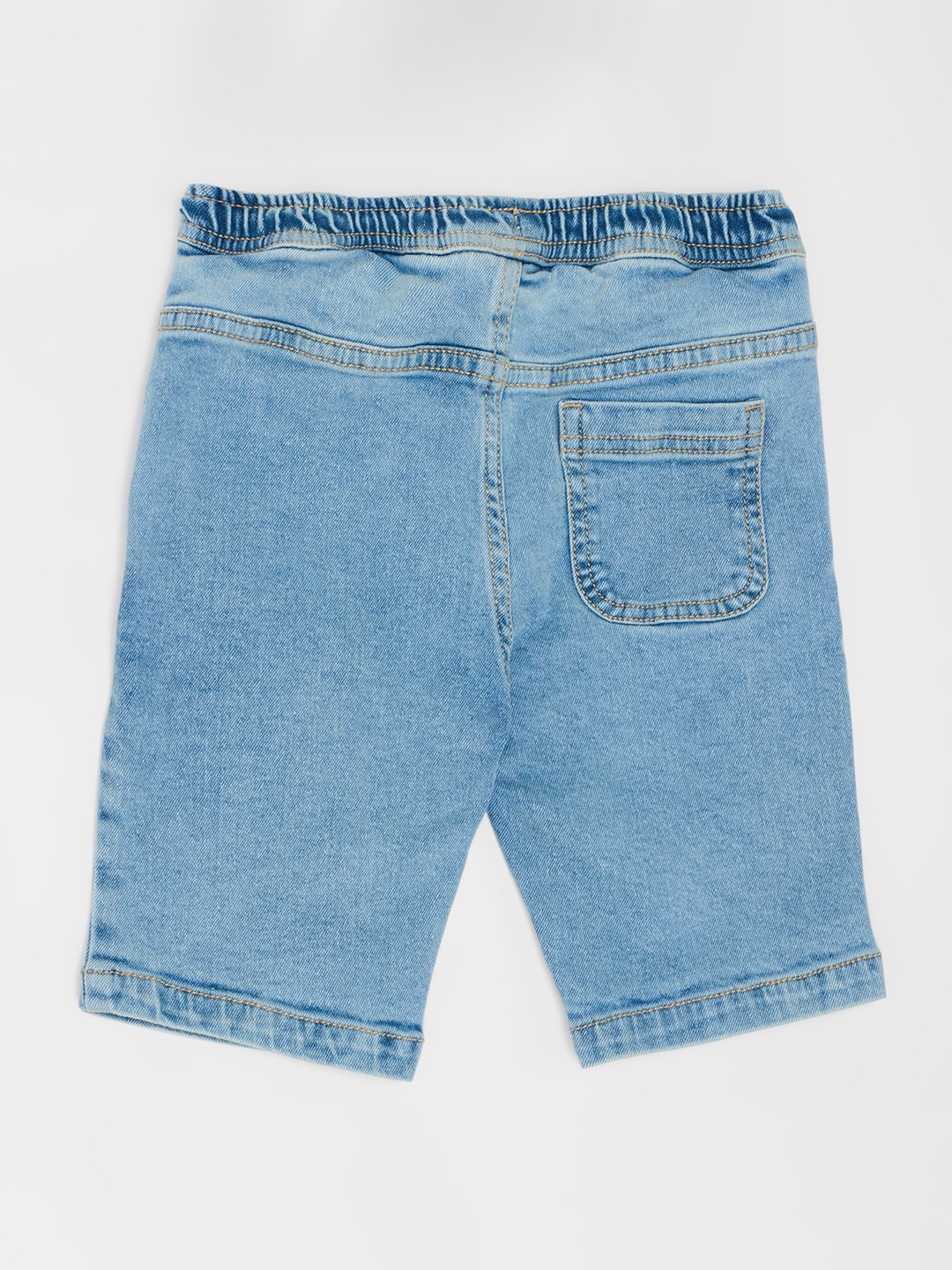 Home/Shorts/Pantaloons Baby/blue lion embroidered washed drawstring shorts