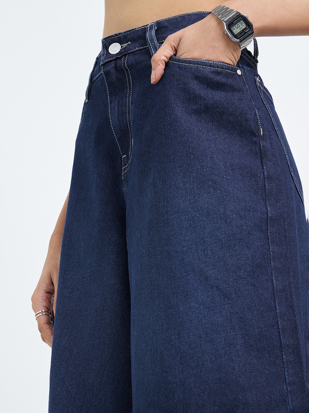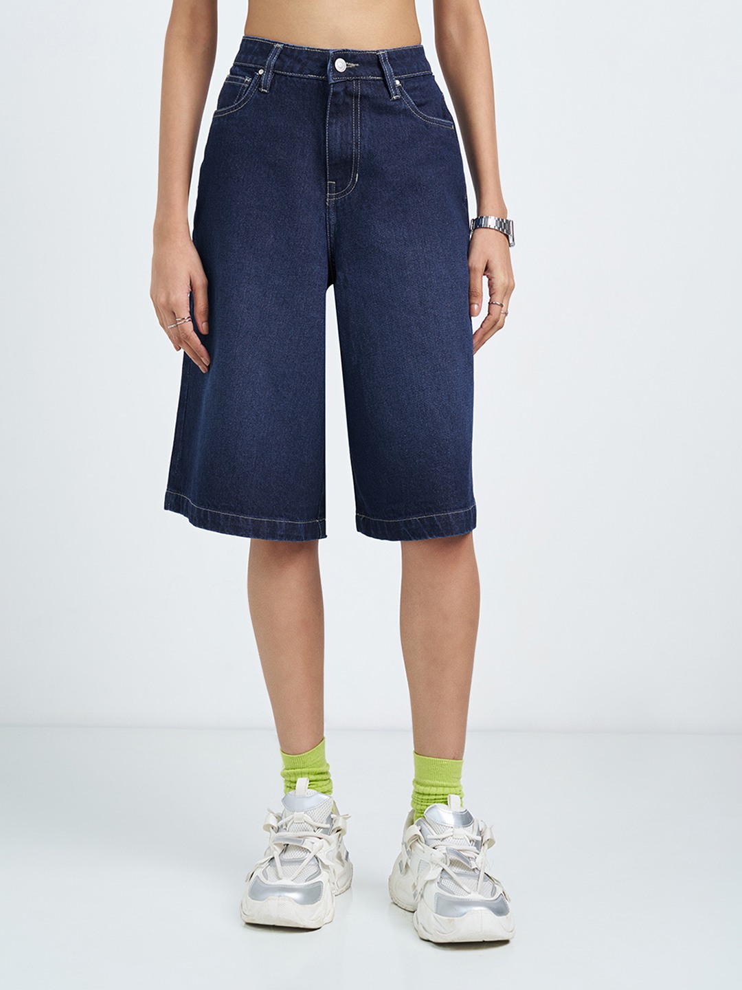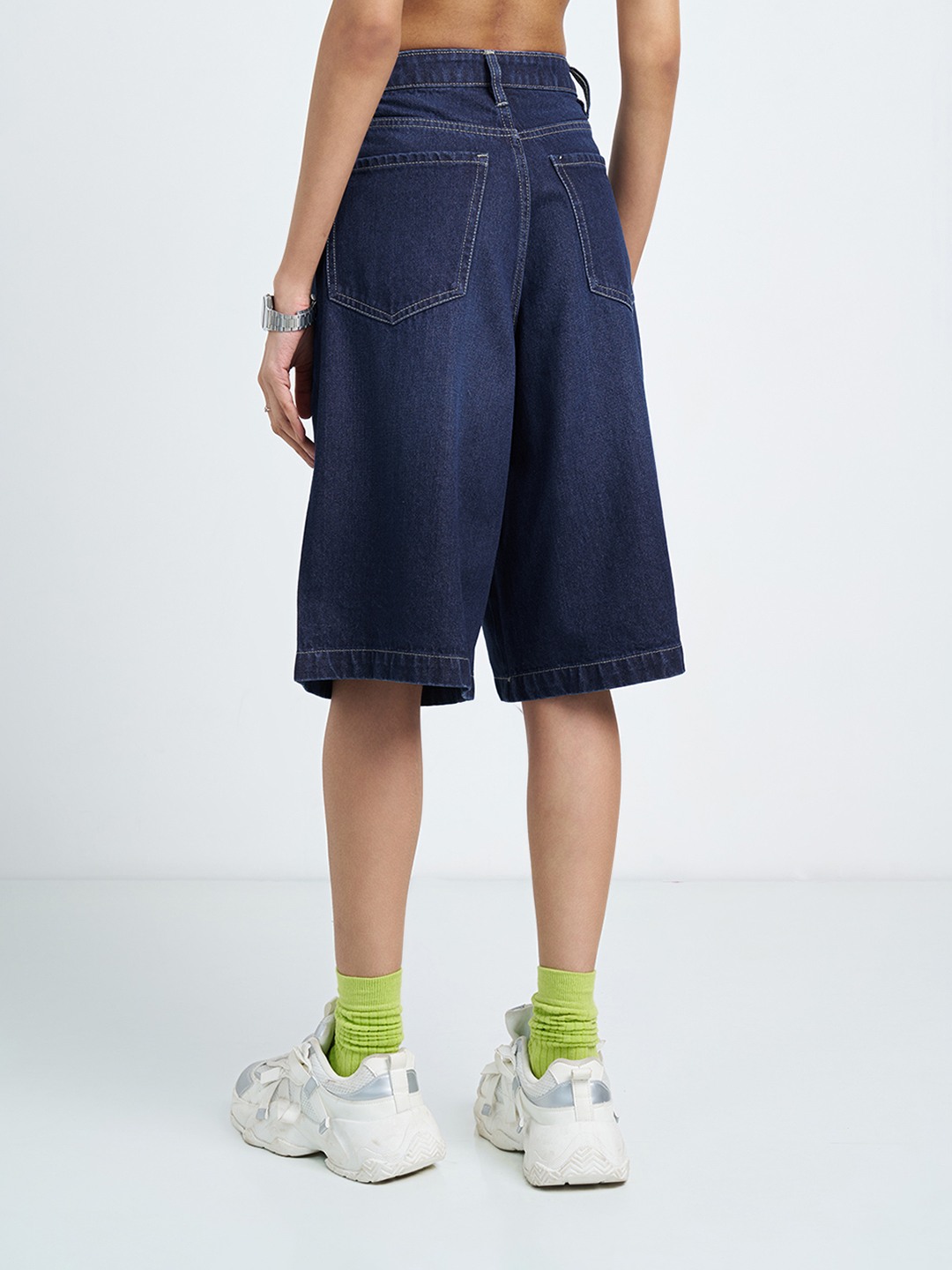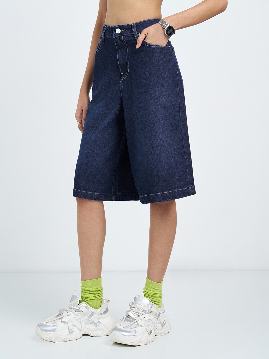 Street-leaning and deliberately oversized in attitude. These high-rise jorts feature a clean waistband, classic five-pocket construction and a wide leg that hits just below the knee for a relaxed silhouette. Cut from sturdy washed denim that softens with wear while holding its shape.