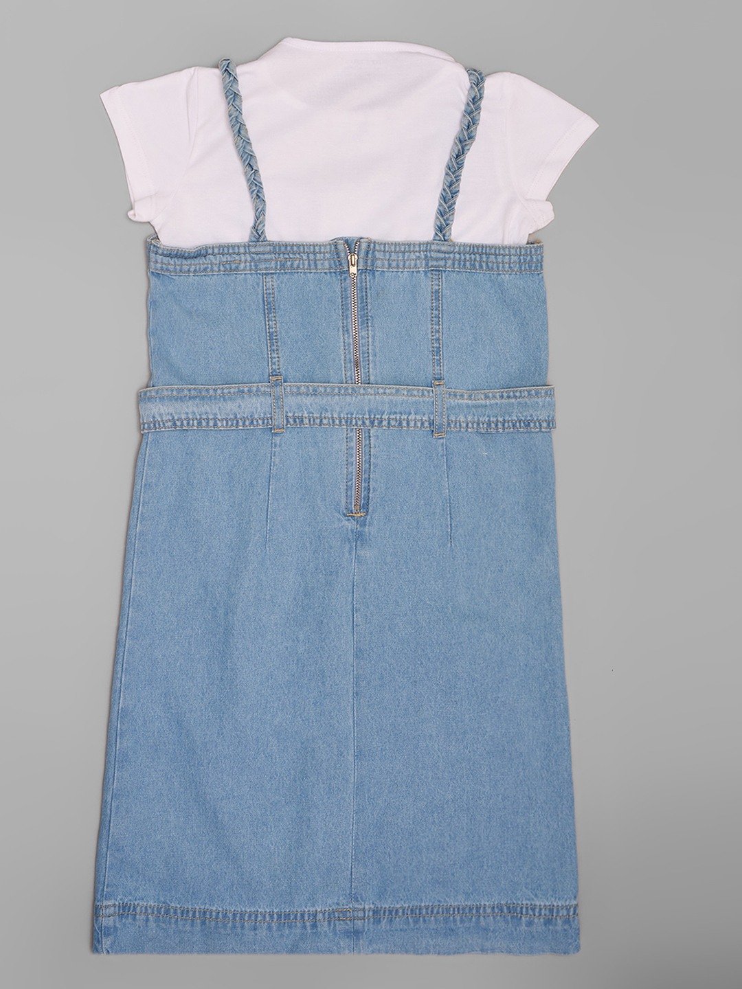 Home/Dresses/Pantaloons Junior/blue washed denim dungarees with waist tie & lilac t-shirt set