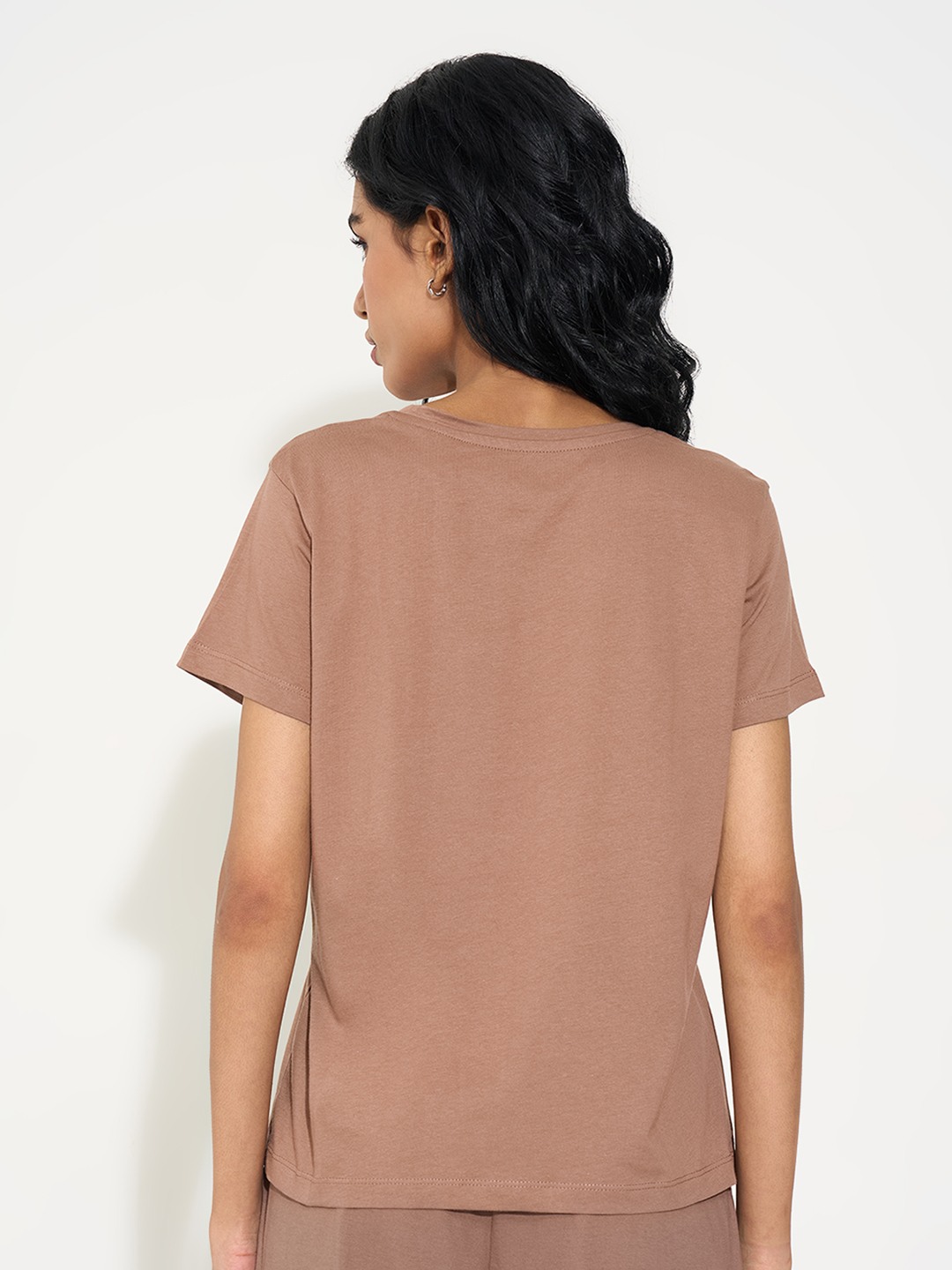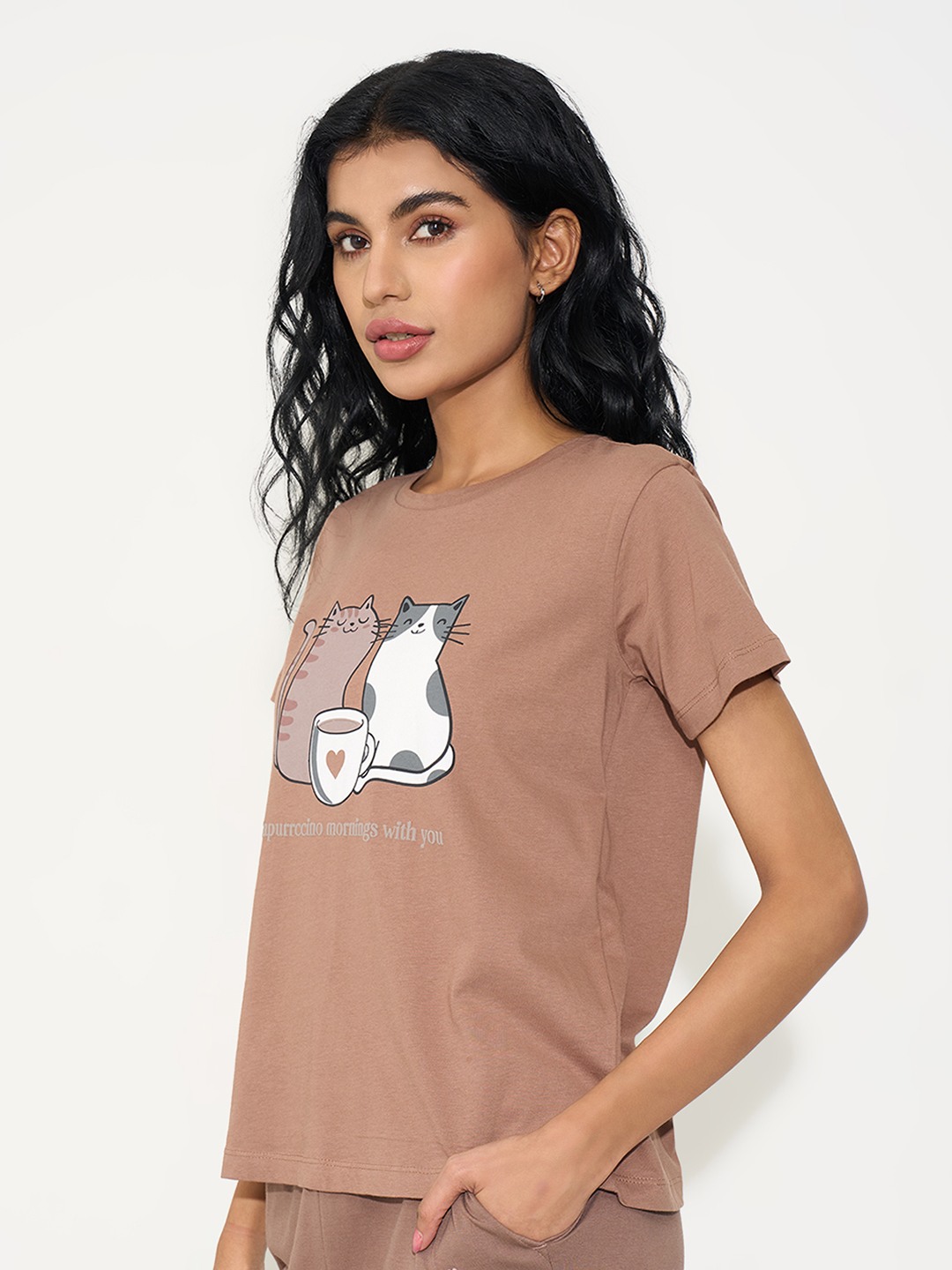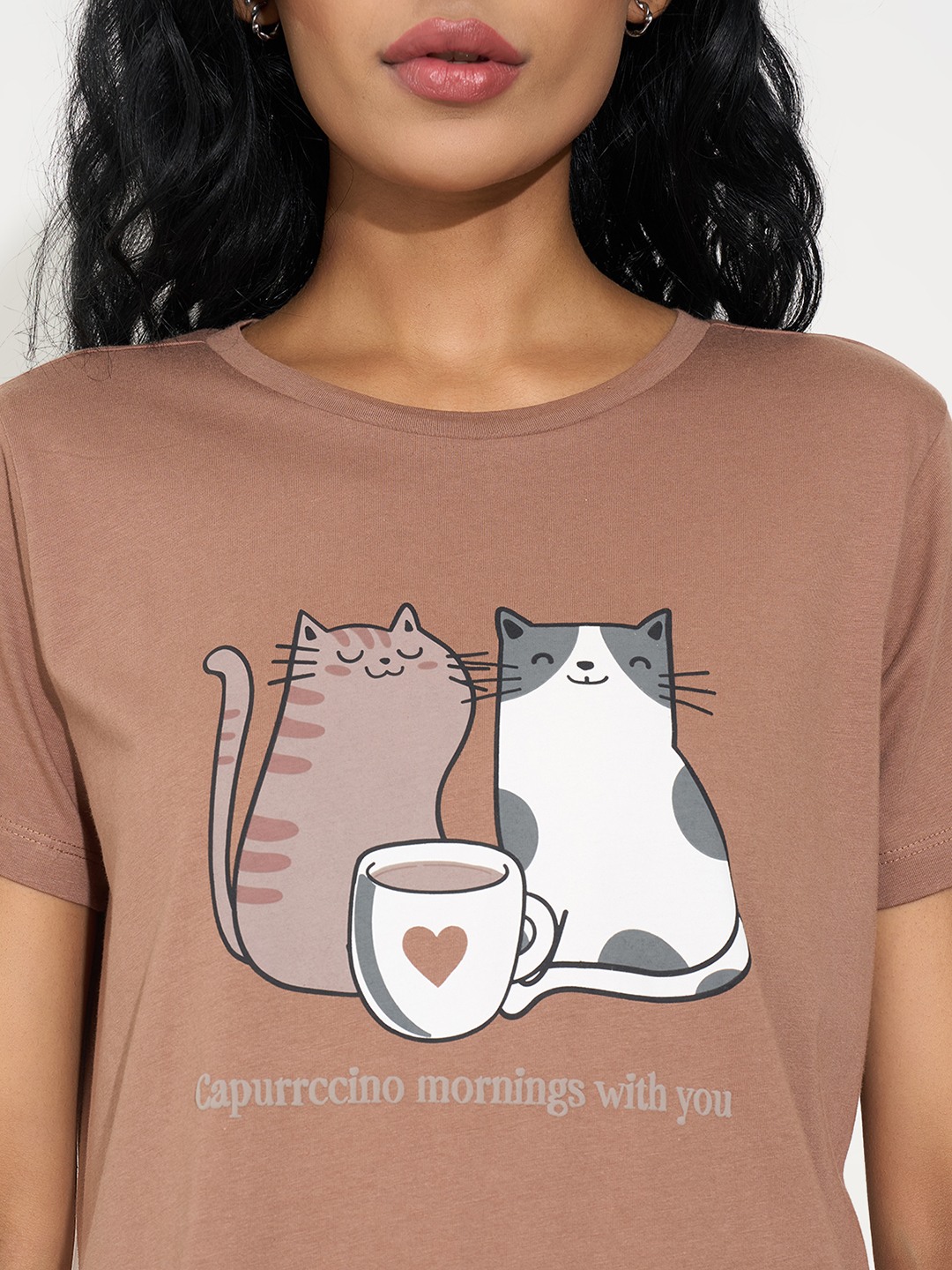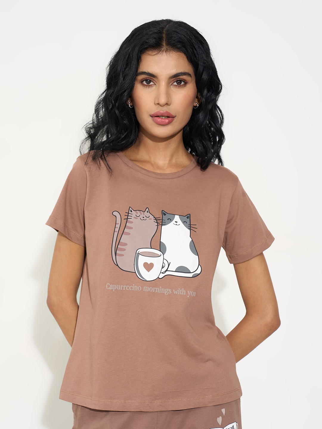 Home/T-Shirts/Dreamz by Pantaloons/brown cat beverage graphic sleepwear top