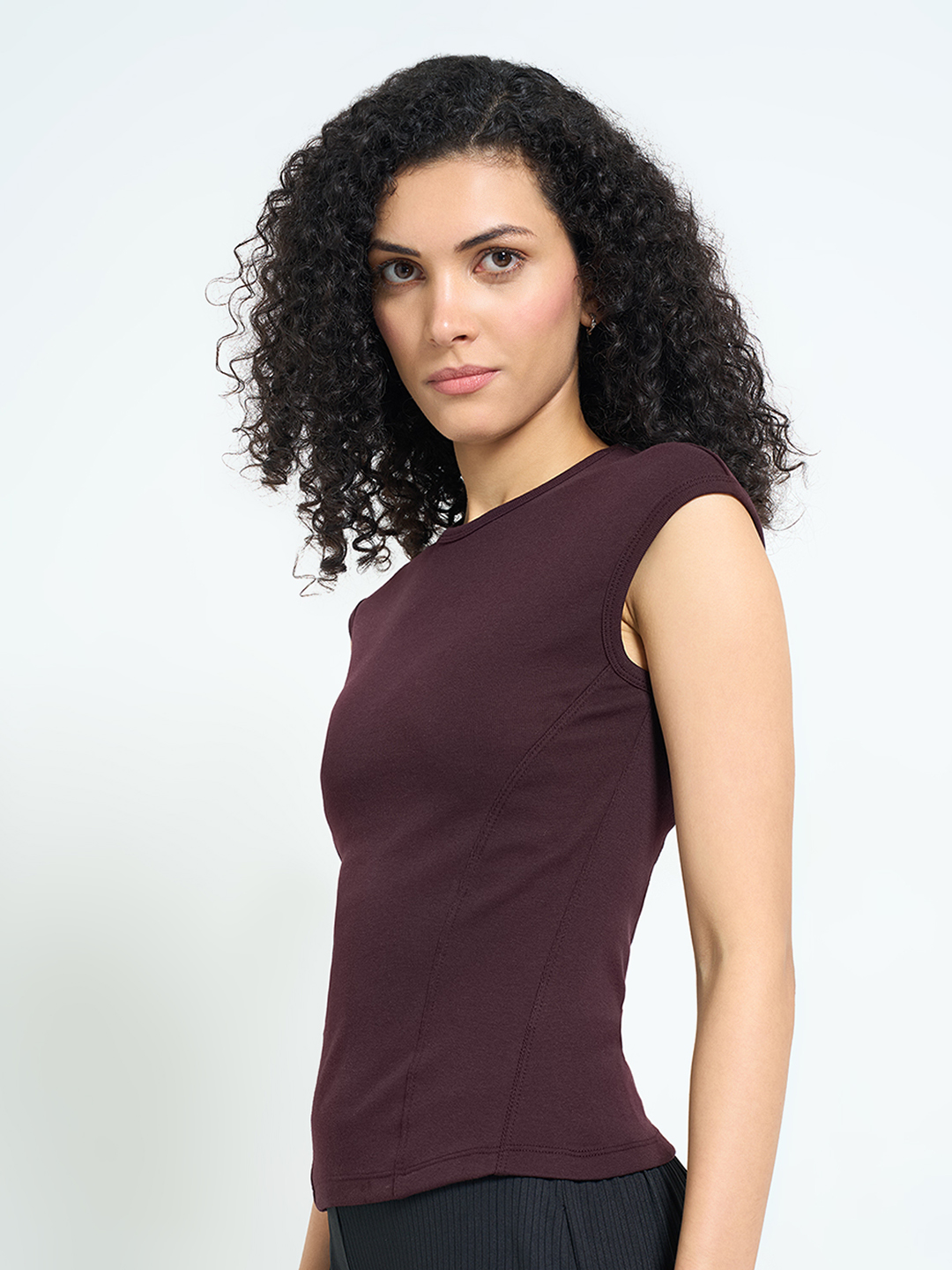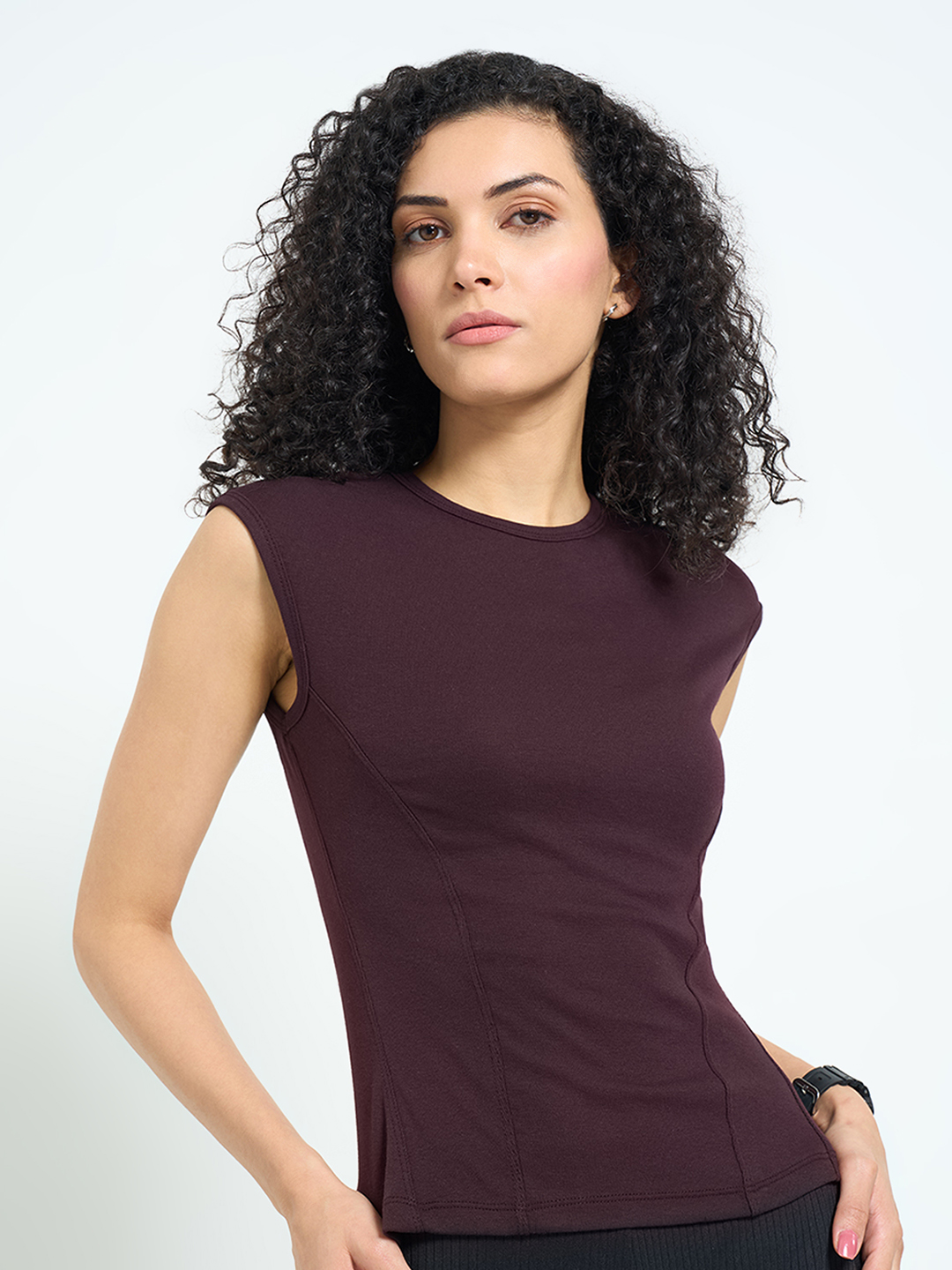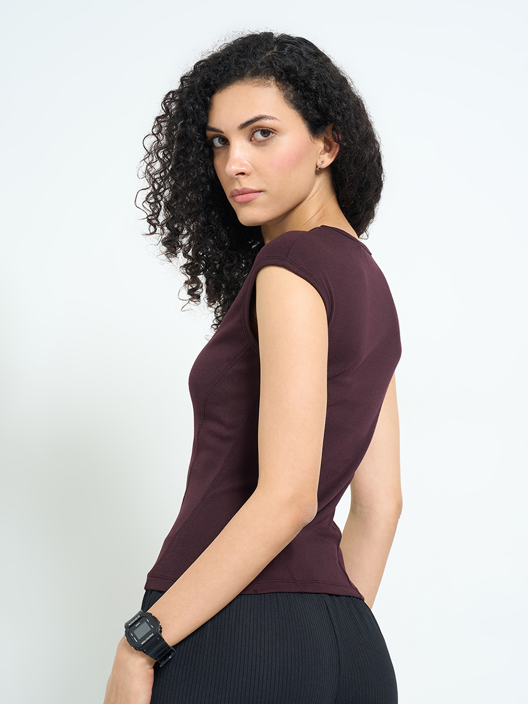Home/T-Shirts/Ajile by Pantaloons/brown ribbed fitted top