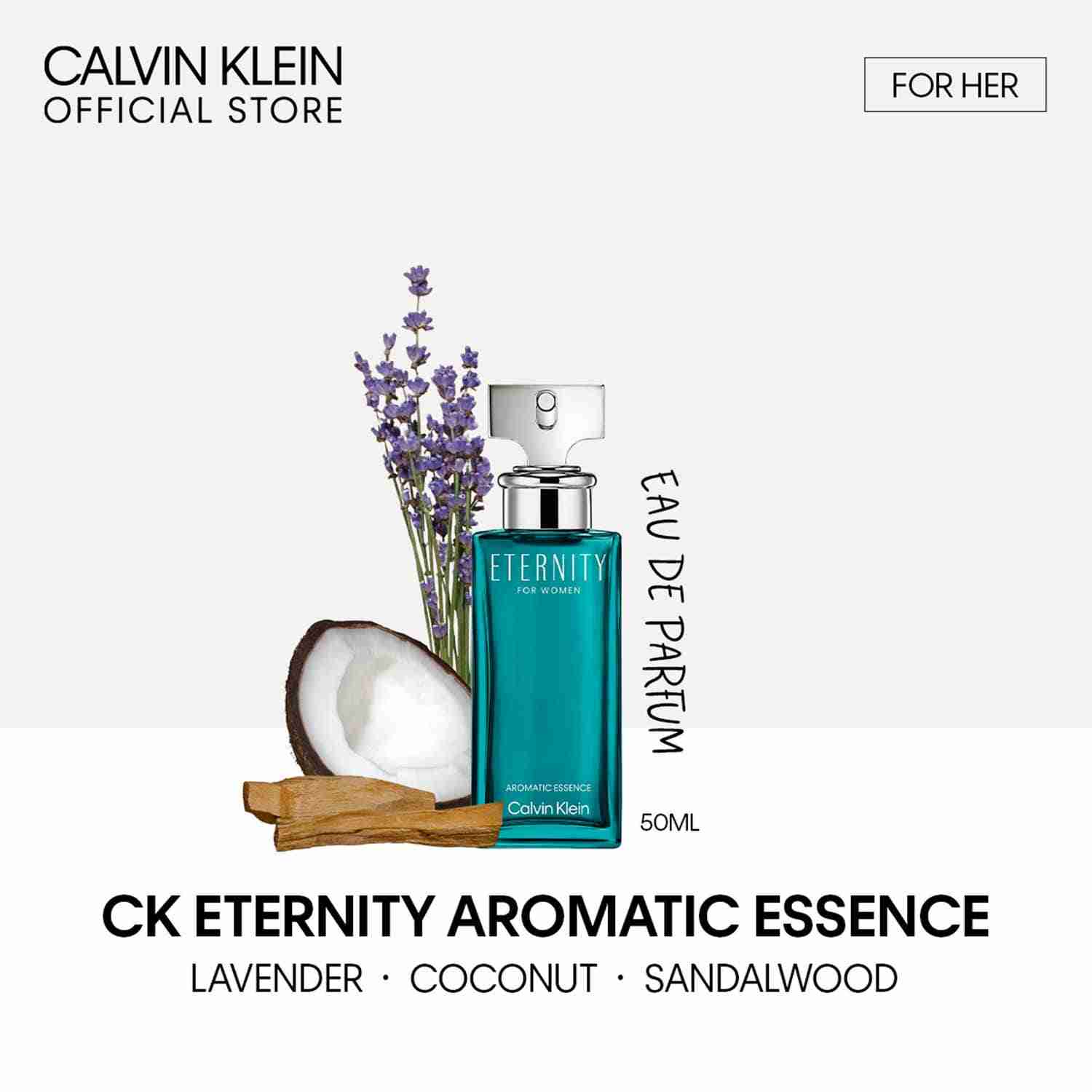 Surround your senses with the richness of the Calvin Klein Eternity Aromatic Essence Perfume For Women (50 ml). With notes of blackcurrant, lavender, and musk, this long-lasting perfume offers a delightful, floral fragrance that lasts all day. This Calvin Klein women's perfume keeps body odor at bay while also uplifting your mood, making it perfect for everyday wear by women.