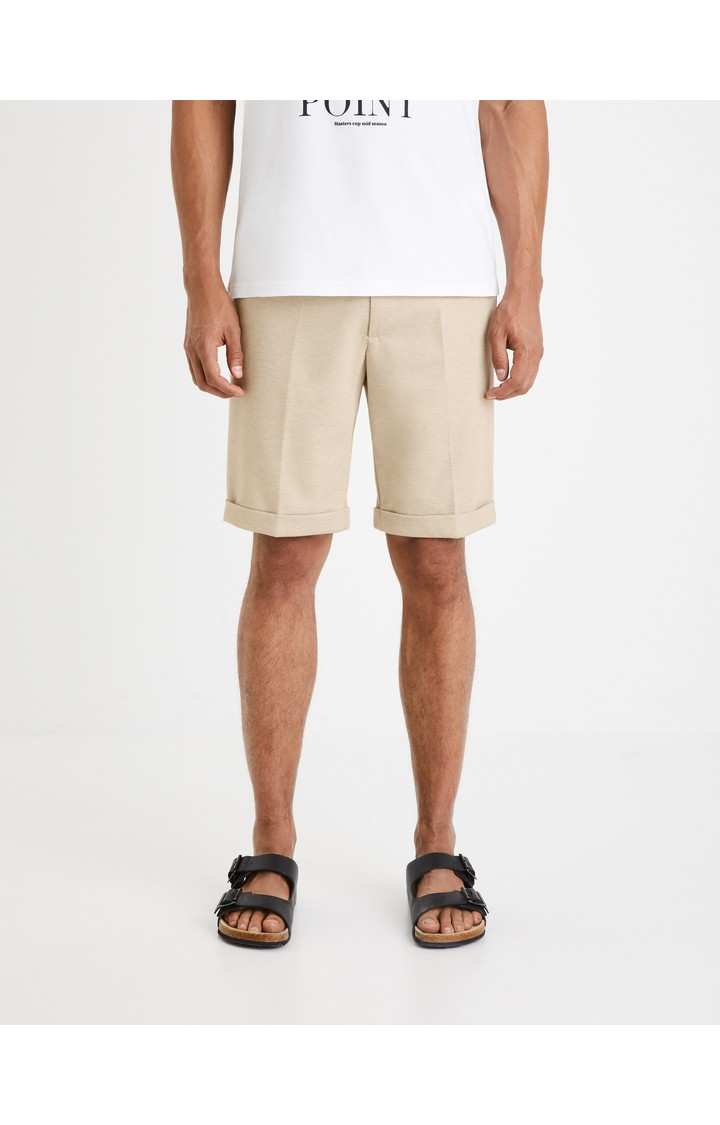 Upgrade your casual wardrobe with these stylish beige Bermuda shorts from Celio. Made with a blend of polyester, polyamide, viscose, and elastane, they provide a comfortable regular fit. Perfect for any casual occasion, these shorts are a must-have for any modern man.'