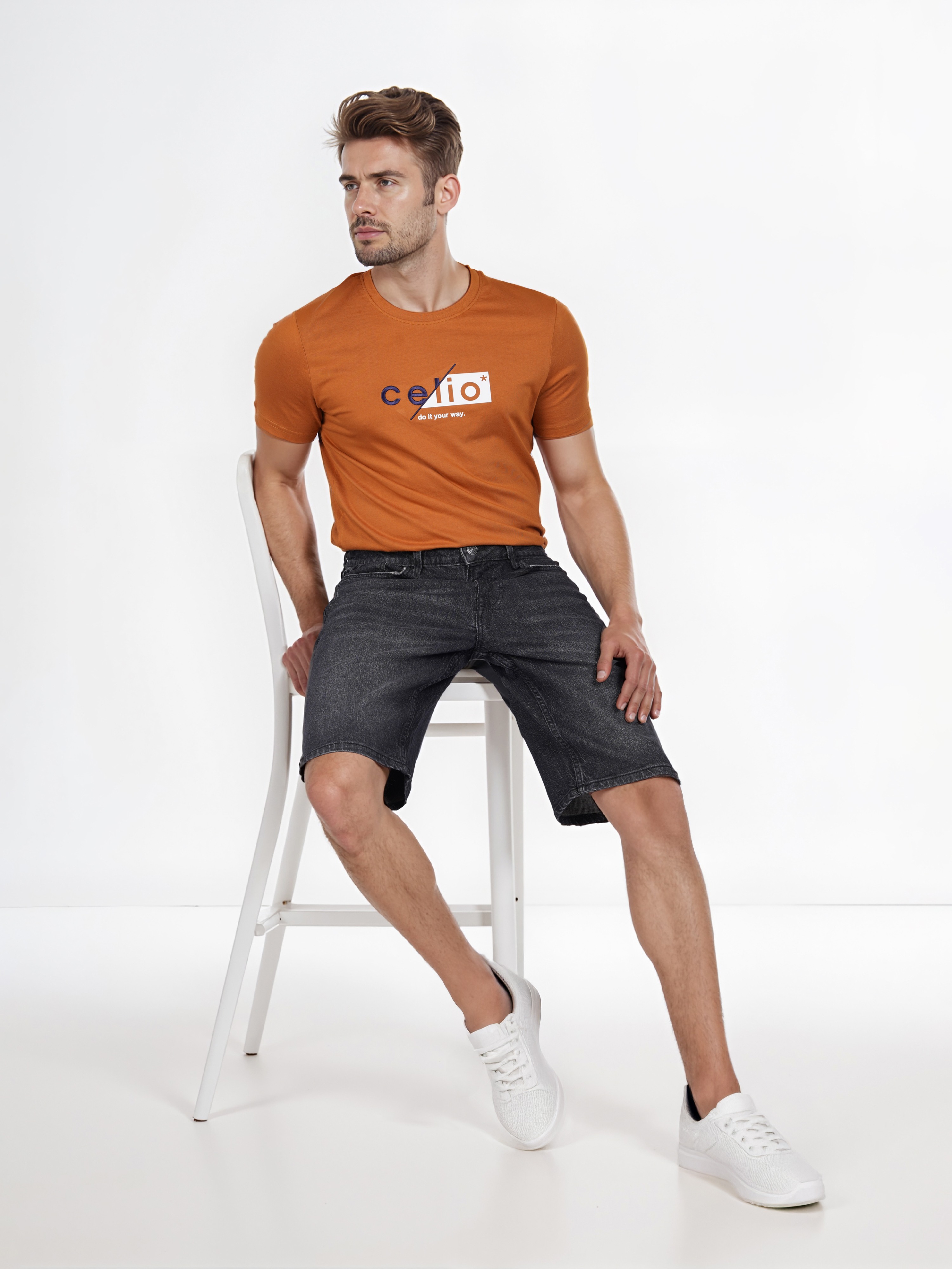 Explore comfort and style with Celio's Men Black Solid Regular Fit Cotton Denim Bermuda Shorts, perfect for casual occasions. Designed for the modern man.