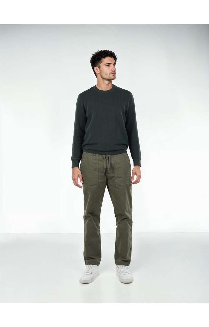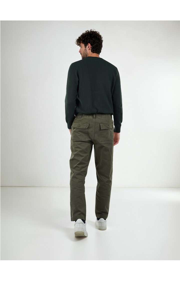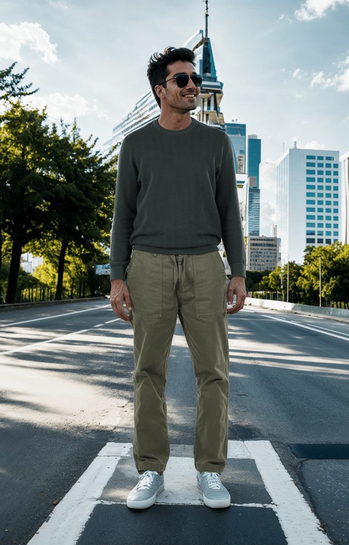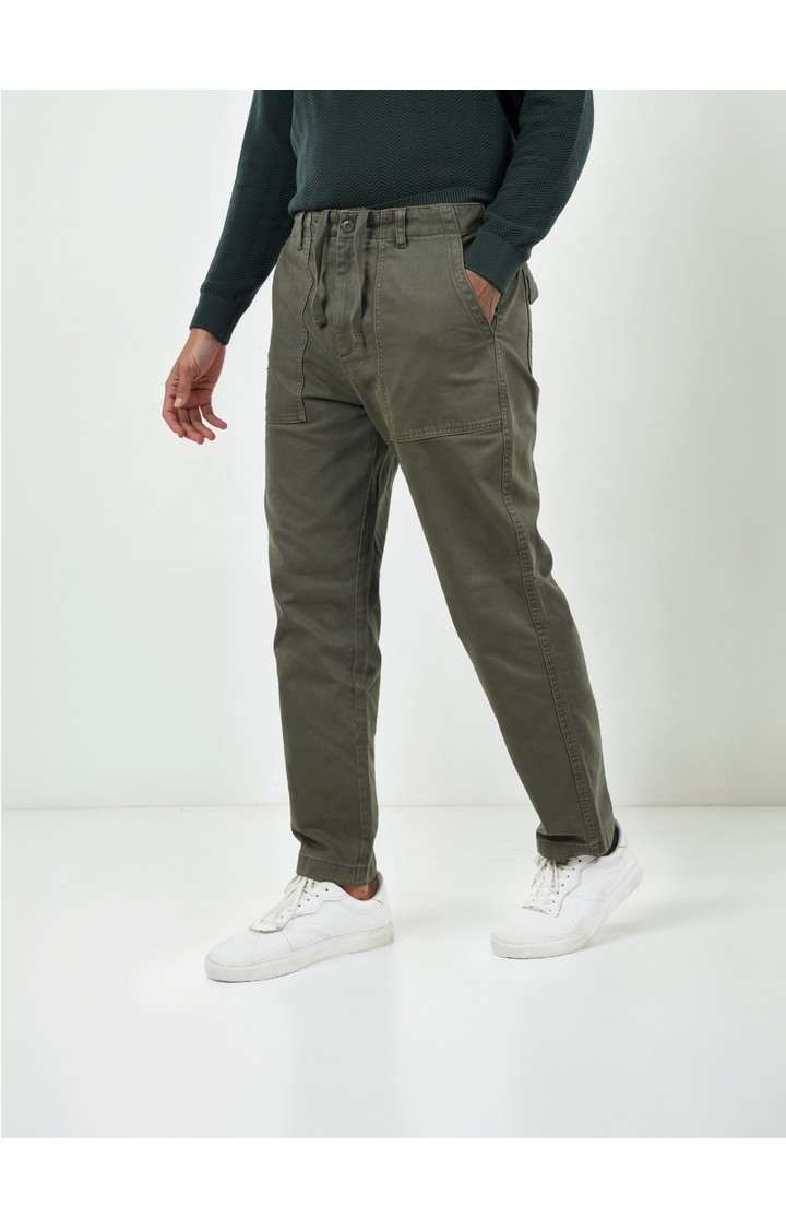 Upgrade your casual wardrobe with these Celio Men Green Solid Regular Cotton Fashion Pant Trousers. Made with 100% cotton, these trousers are perfect for a stylish and comfortable look. Ideal for men, suitable for all occassions.'