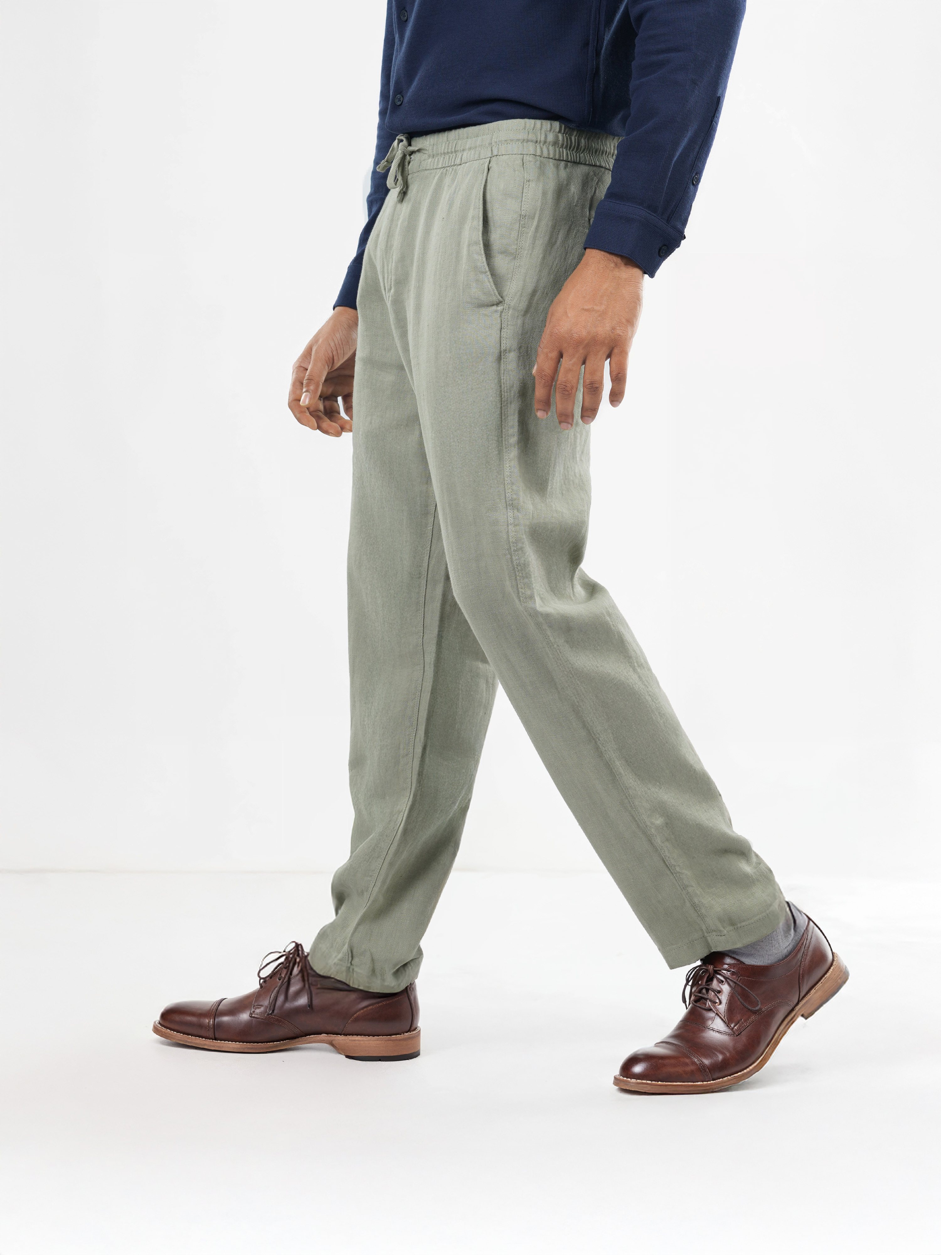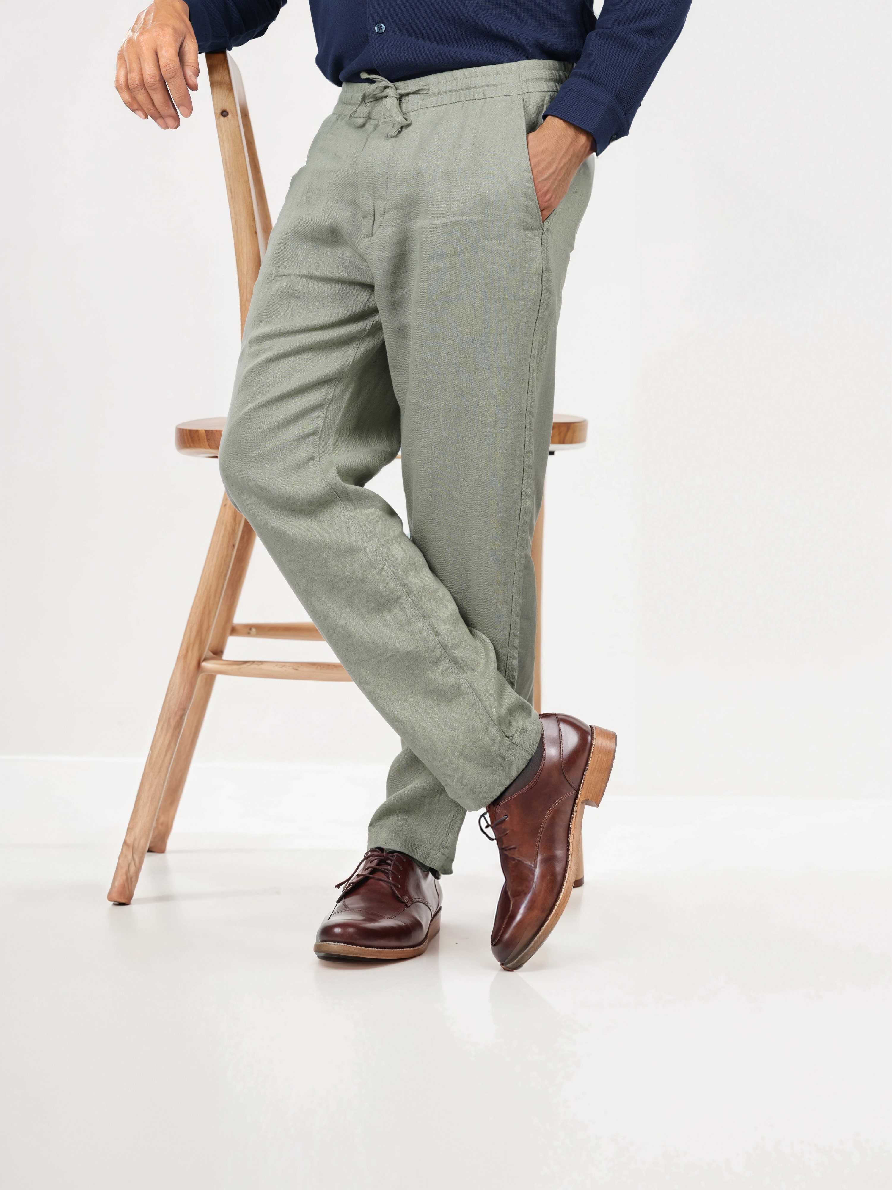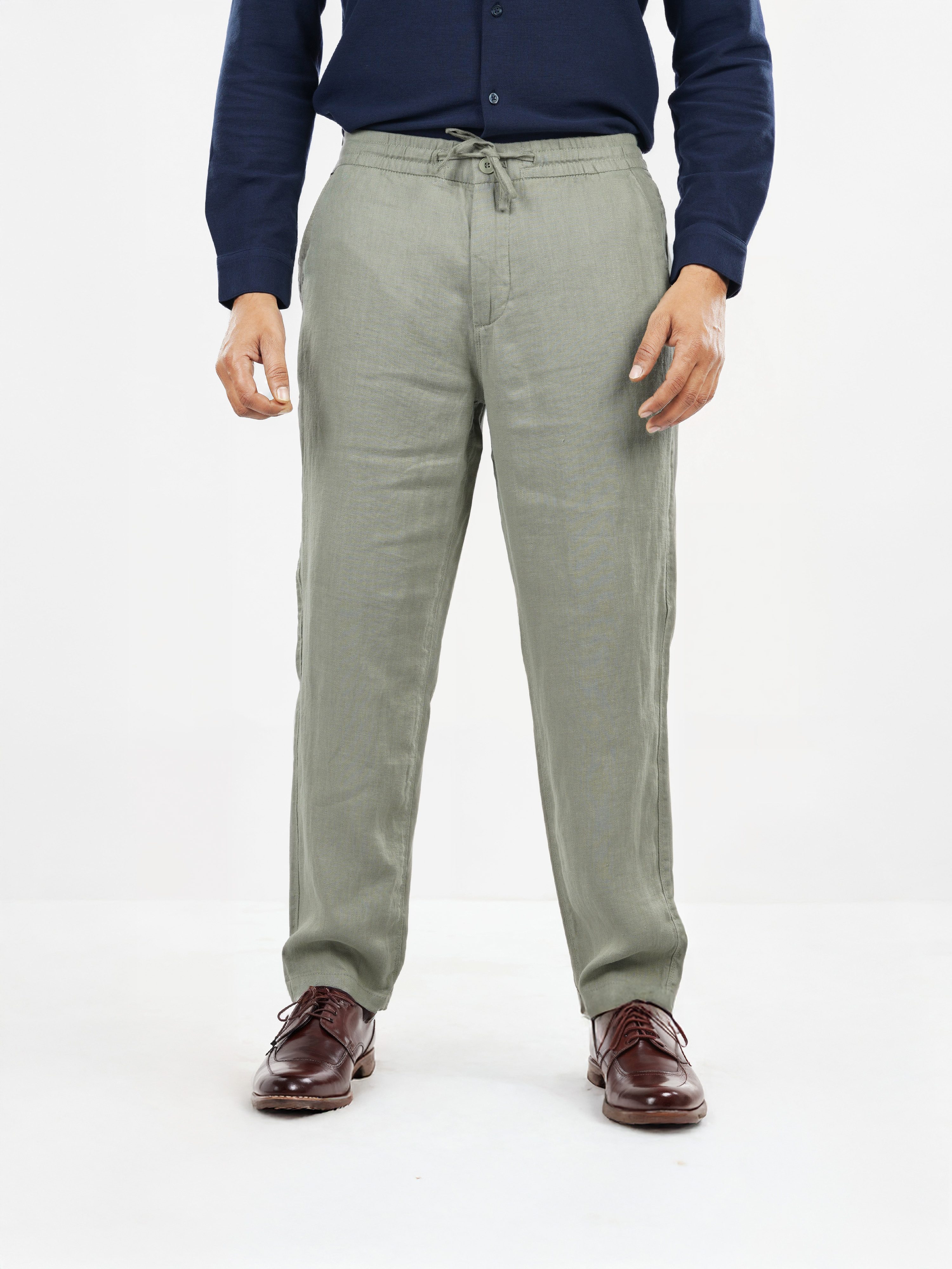 Elevate your casual wardrobe with Celio's green solid straight linen trousers for men. Perfect for relaxed outings, these trousers combine comfort and style effortlessly.