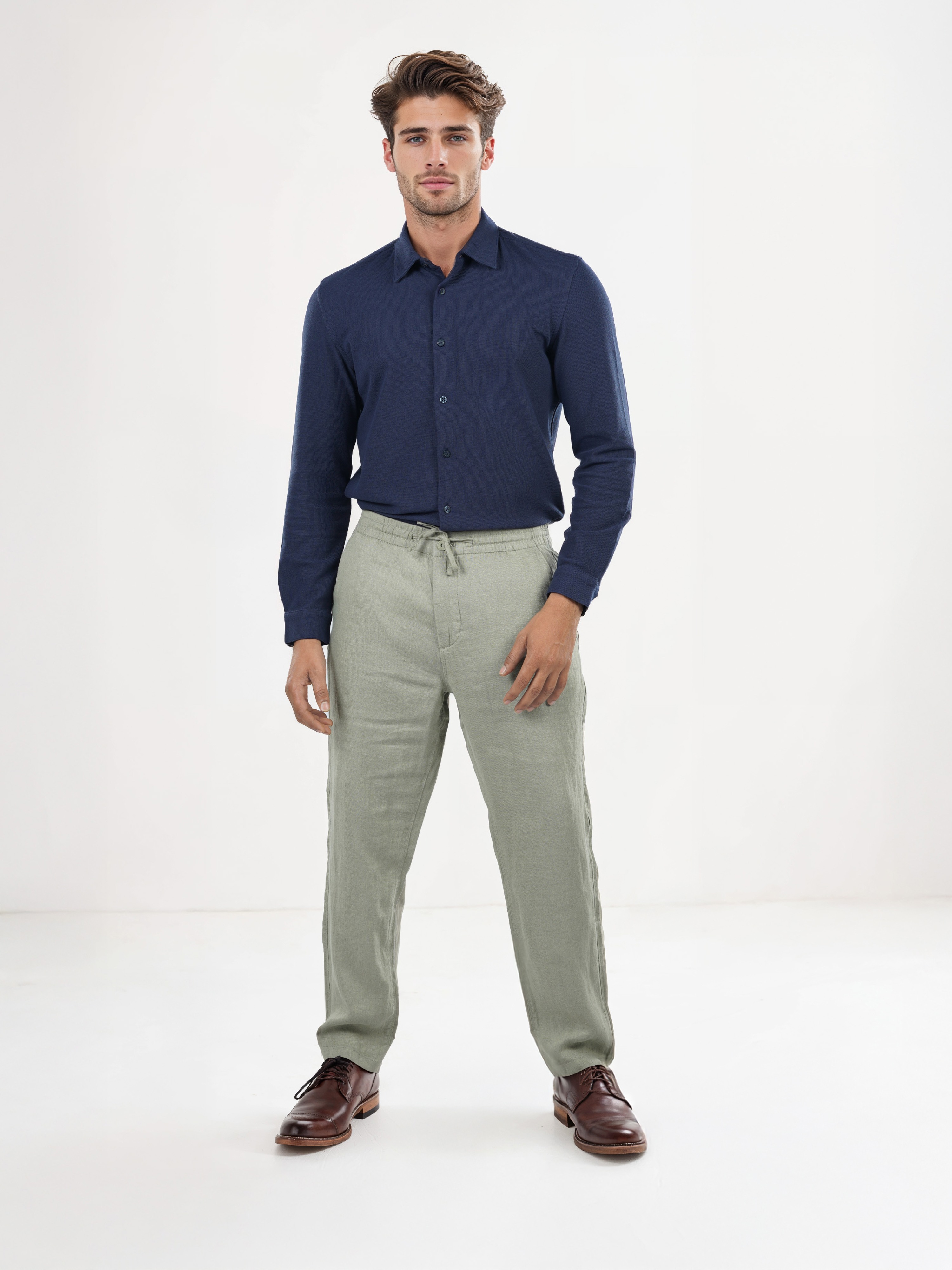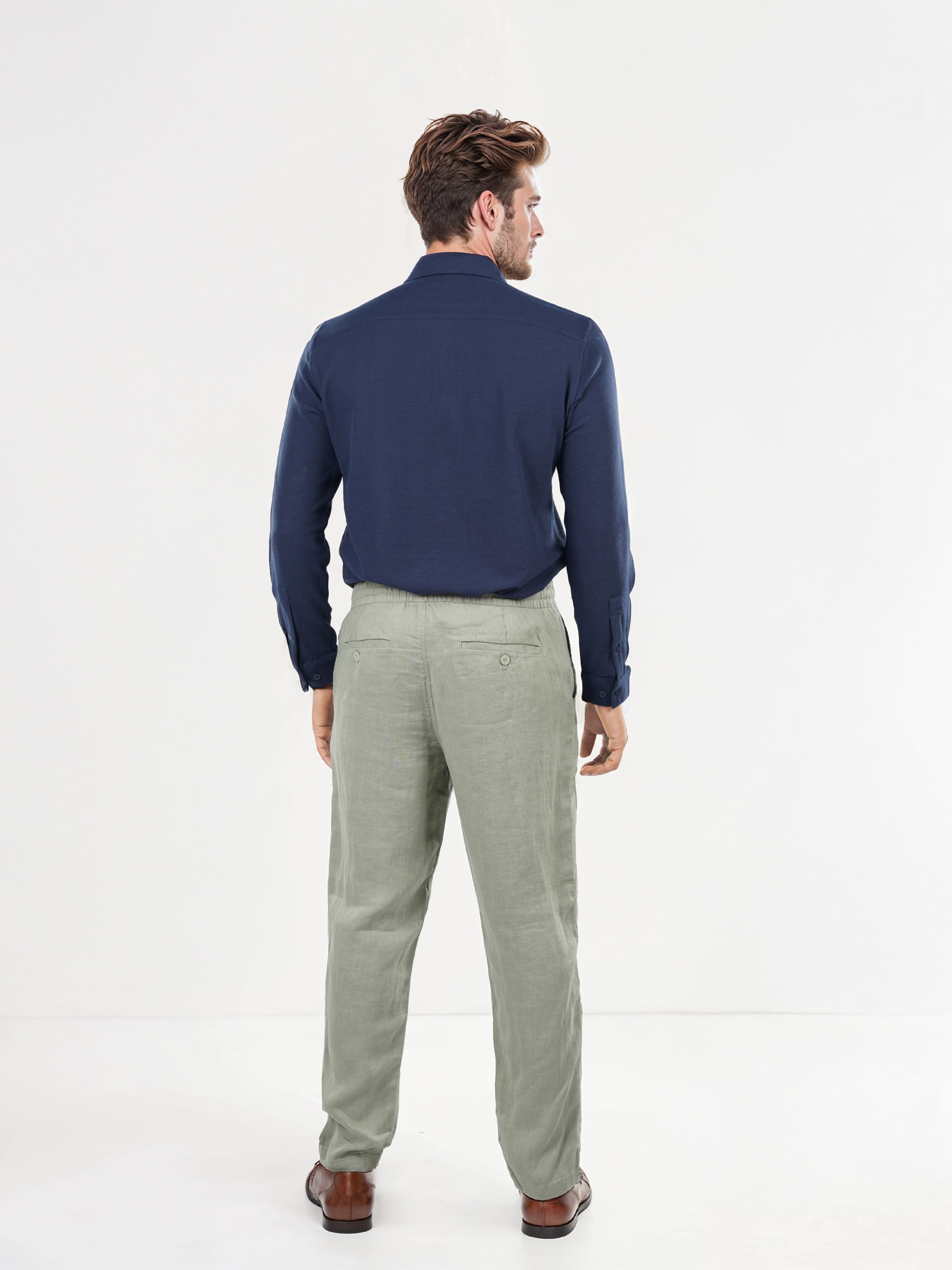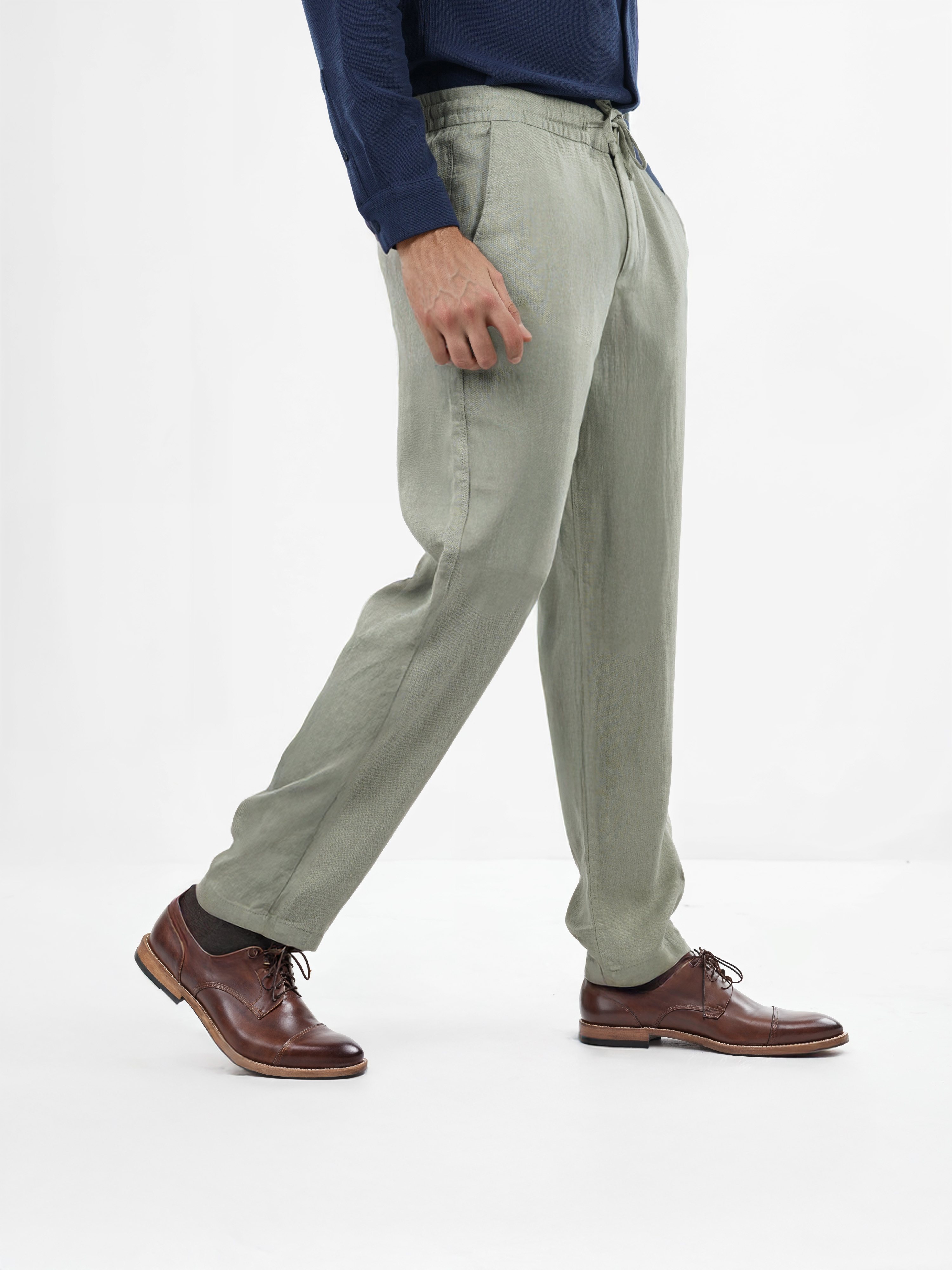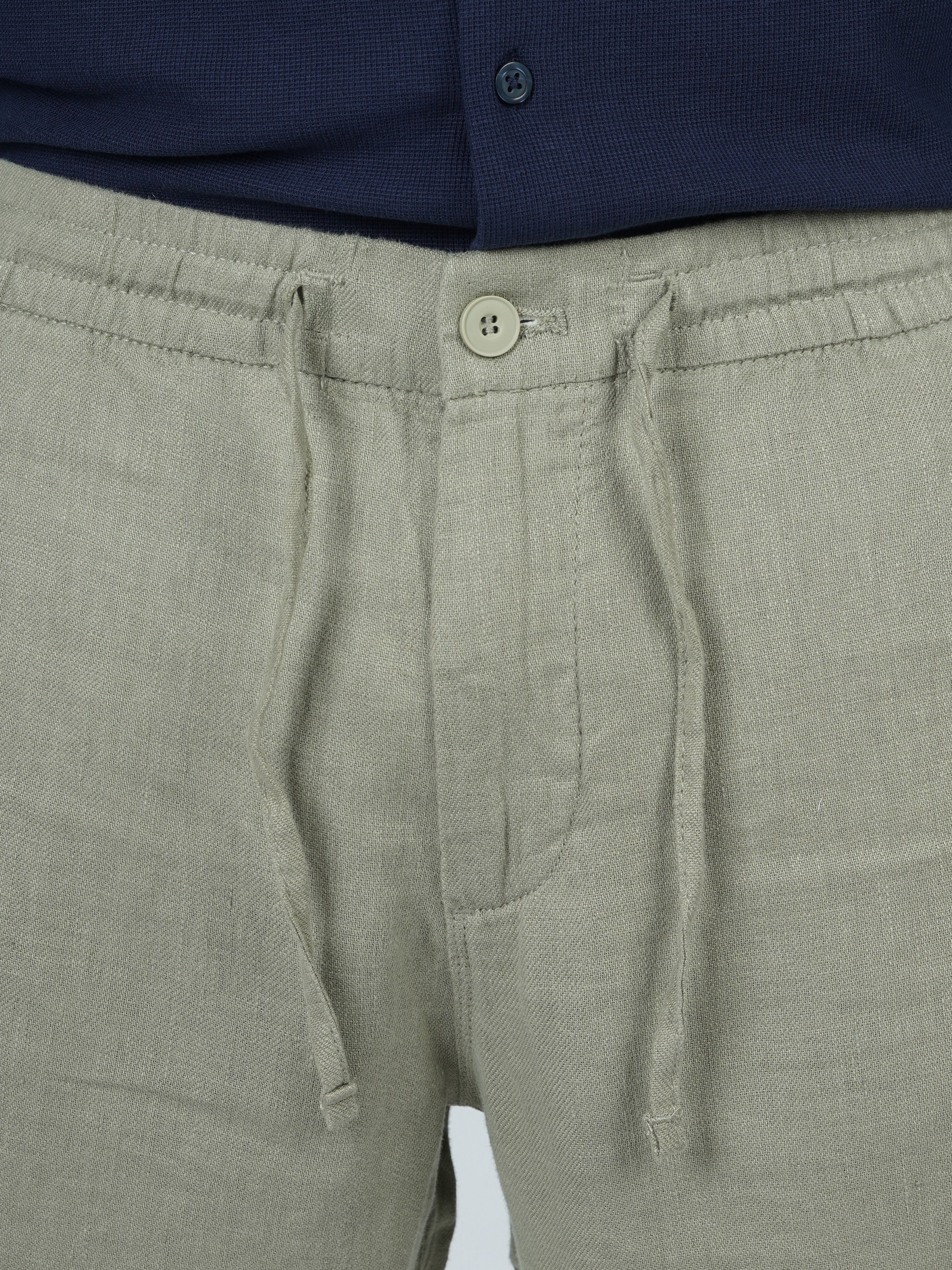 Elevate your casual wardrobe with Celio's green solid straight linen trousers for men. Perfect for relaxed outings, these trousers combine comfort and style effortlessly.