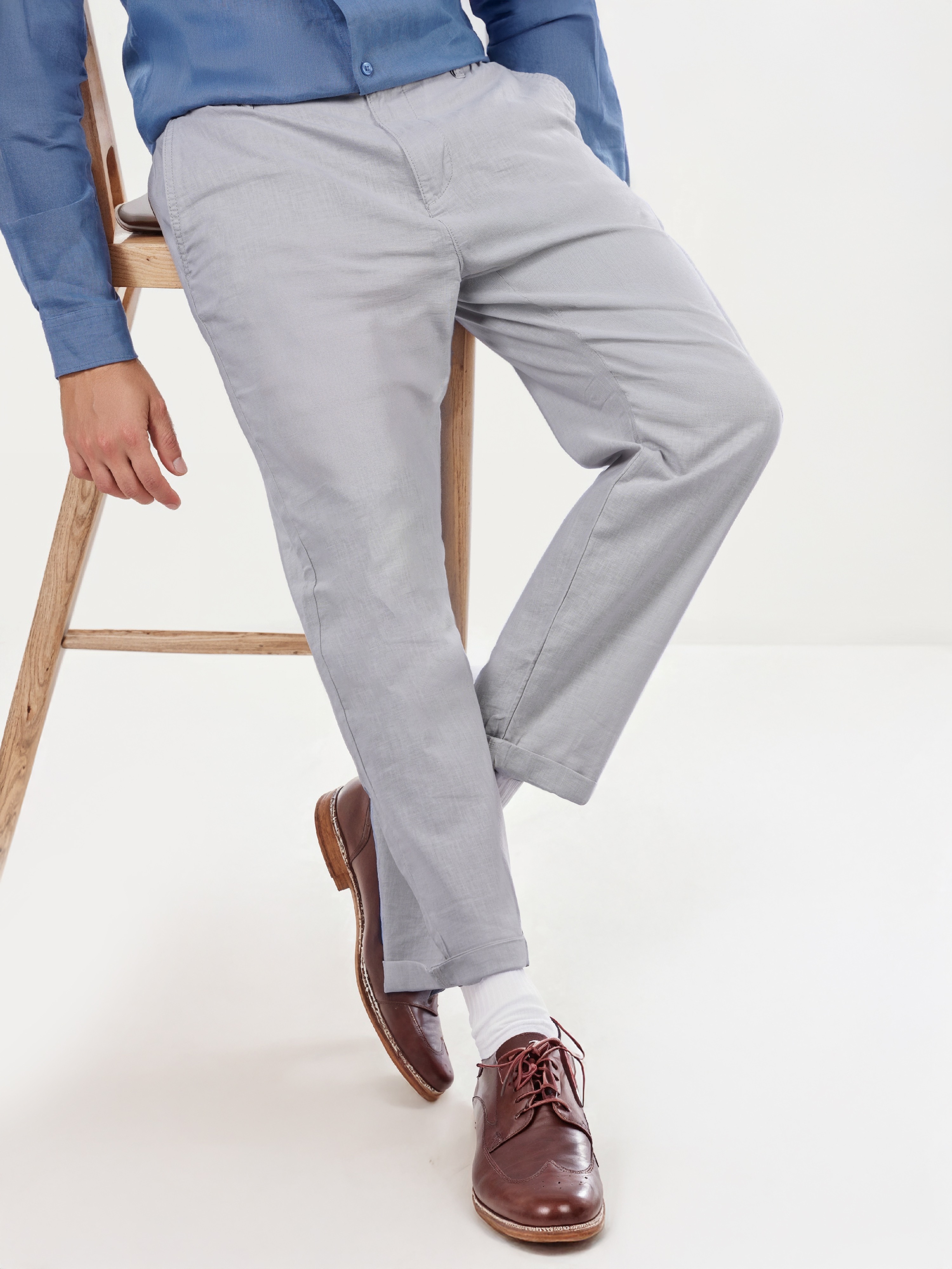 Elevate your casual wardrobe with Celio's grey solid trousers. Crafted from a comfortable cotton-blend, these regular fit trousers are perfect for a stylish men's look.
