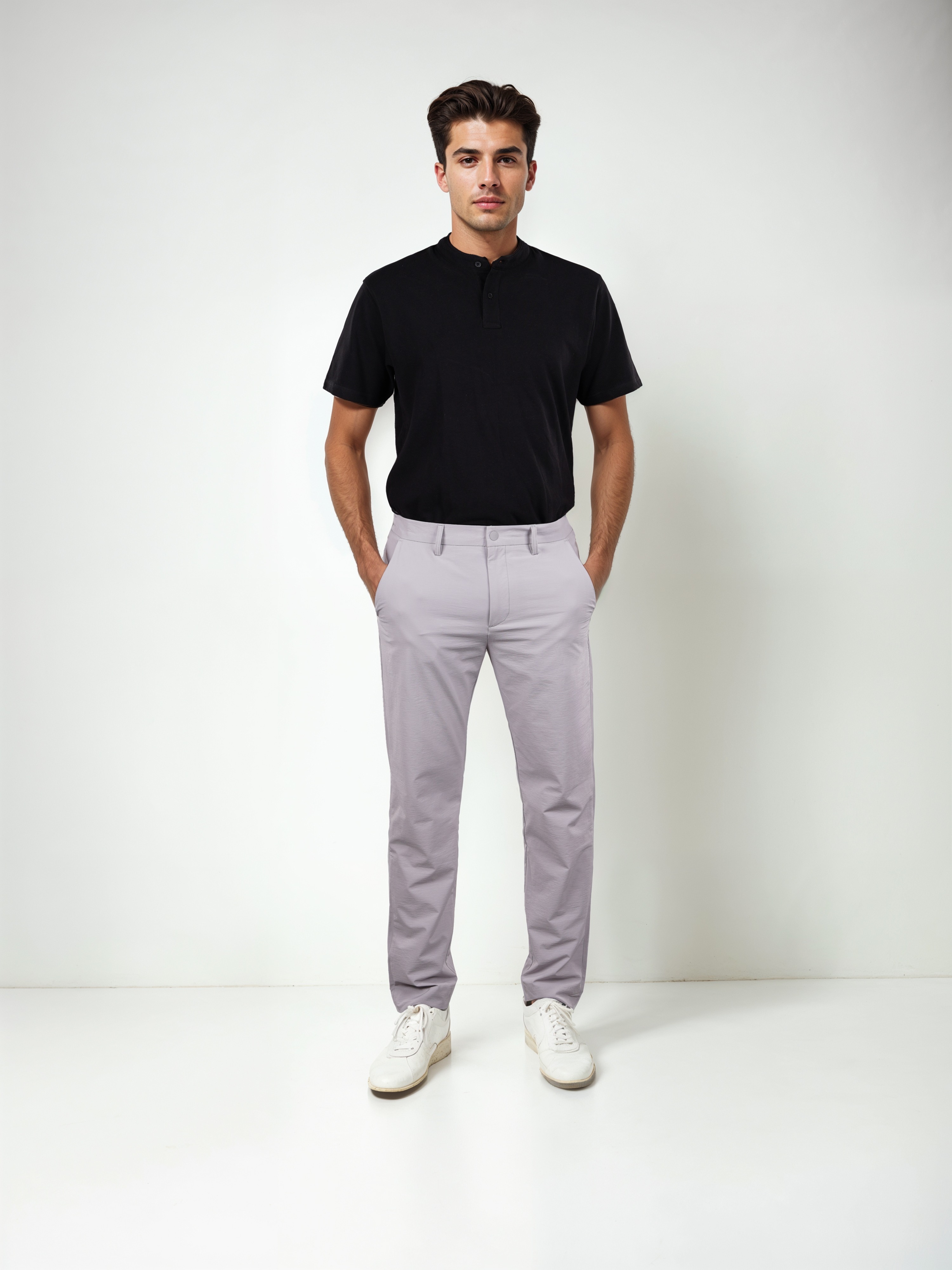 Add a touch of sophistication to your casual wardrobe with these grey chino trousers from Celio. Crafted from a poly-blend fabric, they offer a comfortable and stylish straight fit. Perfect for any occasion.'