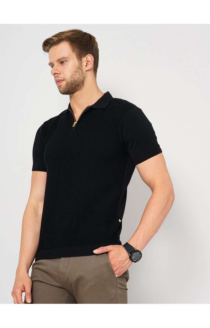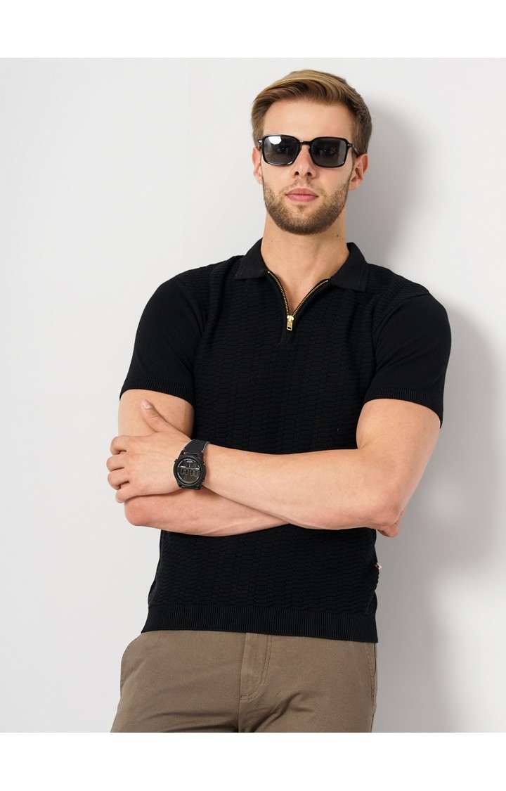 Build your summer wardrobe with this classic black polos from celio. Made of cotton fabric, this polos is extremely comfortable to wear. Featuring a half zip, half and solid pattern, this polos boasts of exclusive appeal. Create a sophisticated style by teaming this polos with a pair of sandals.