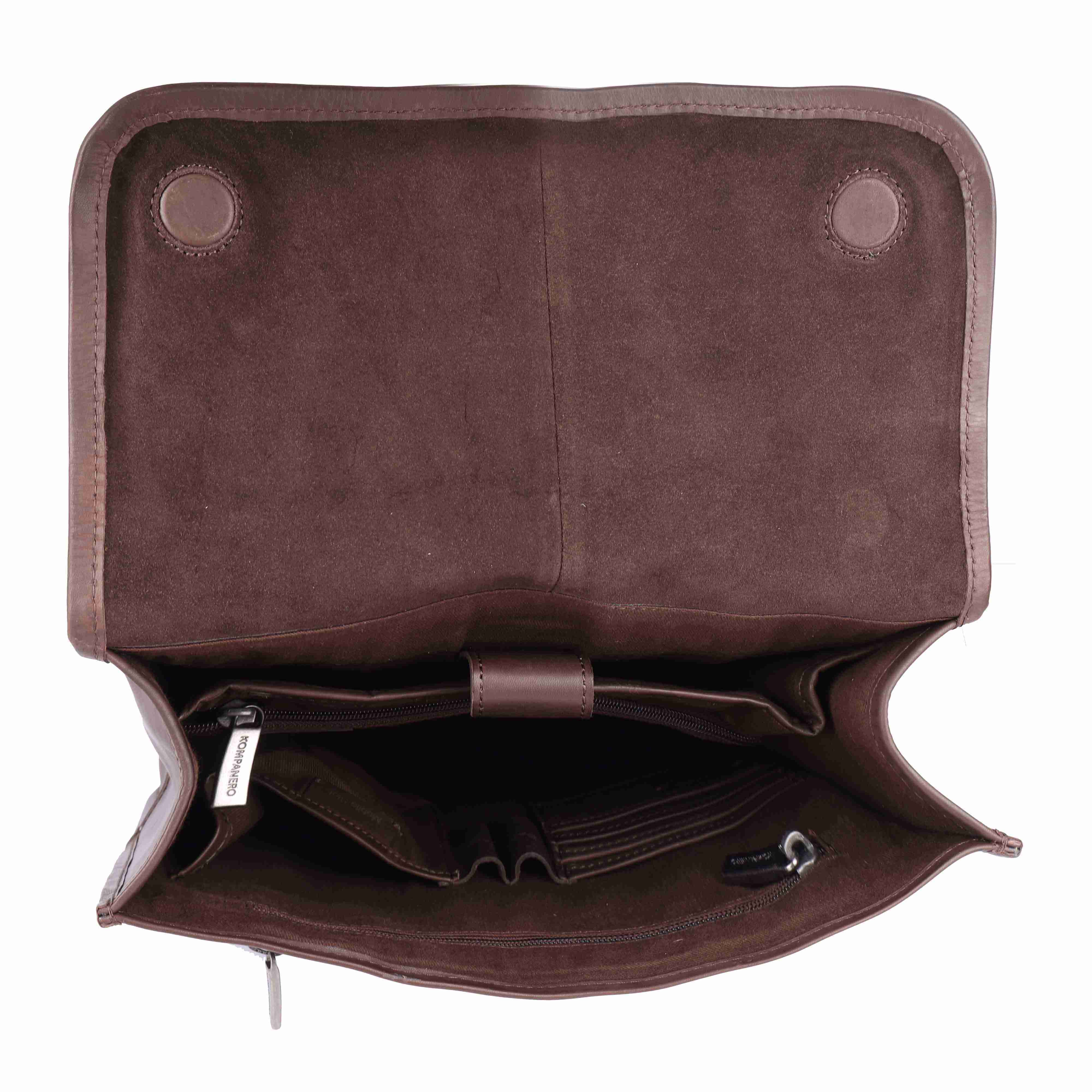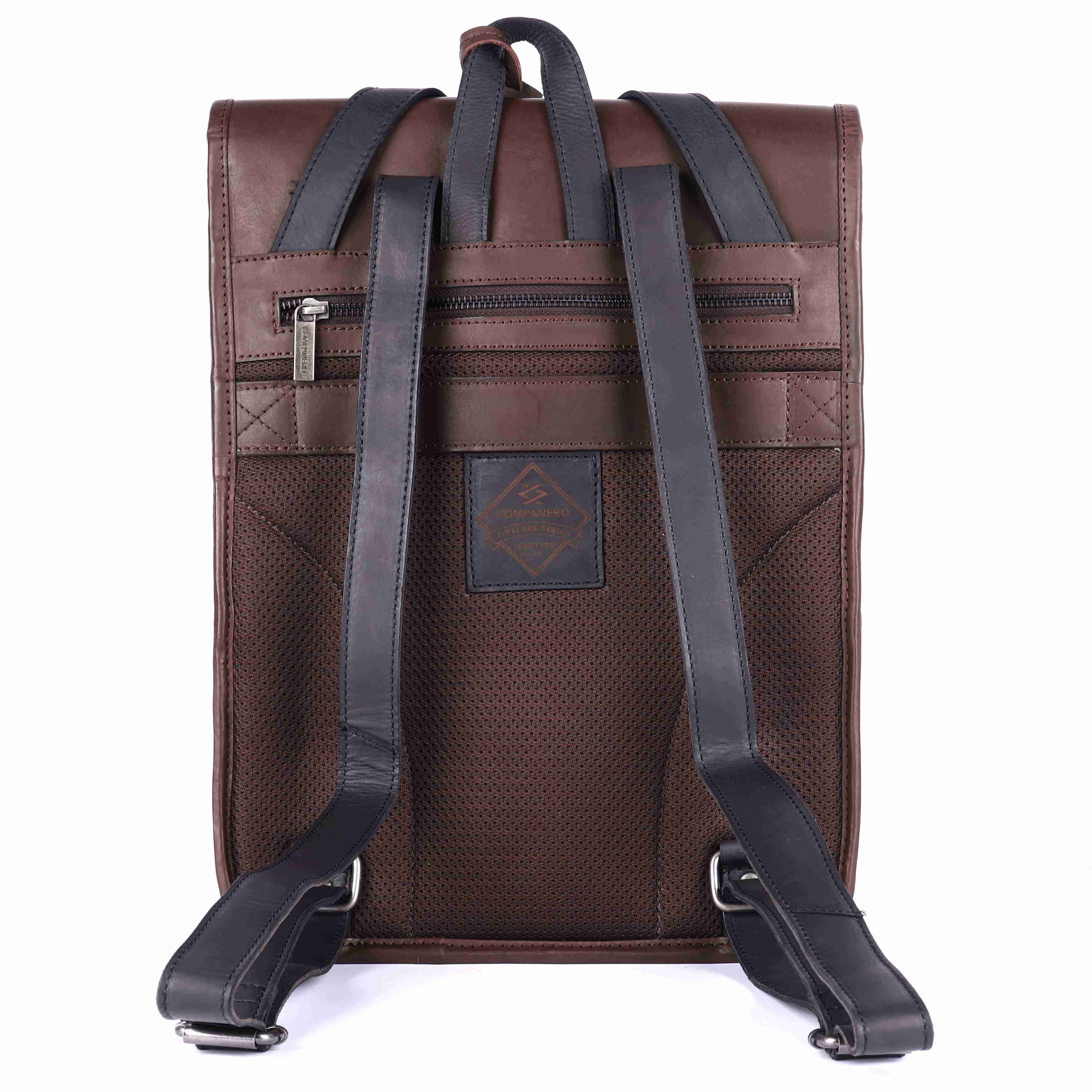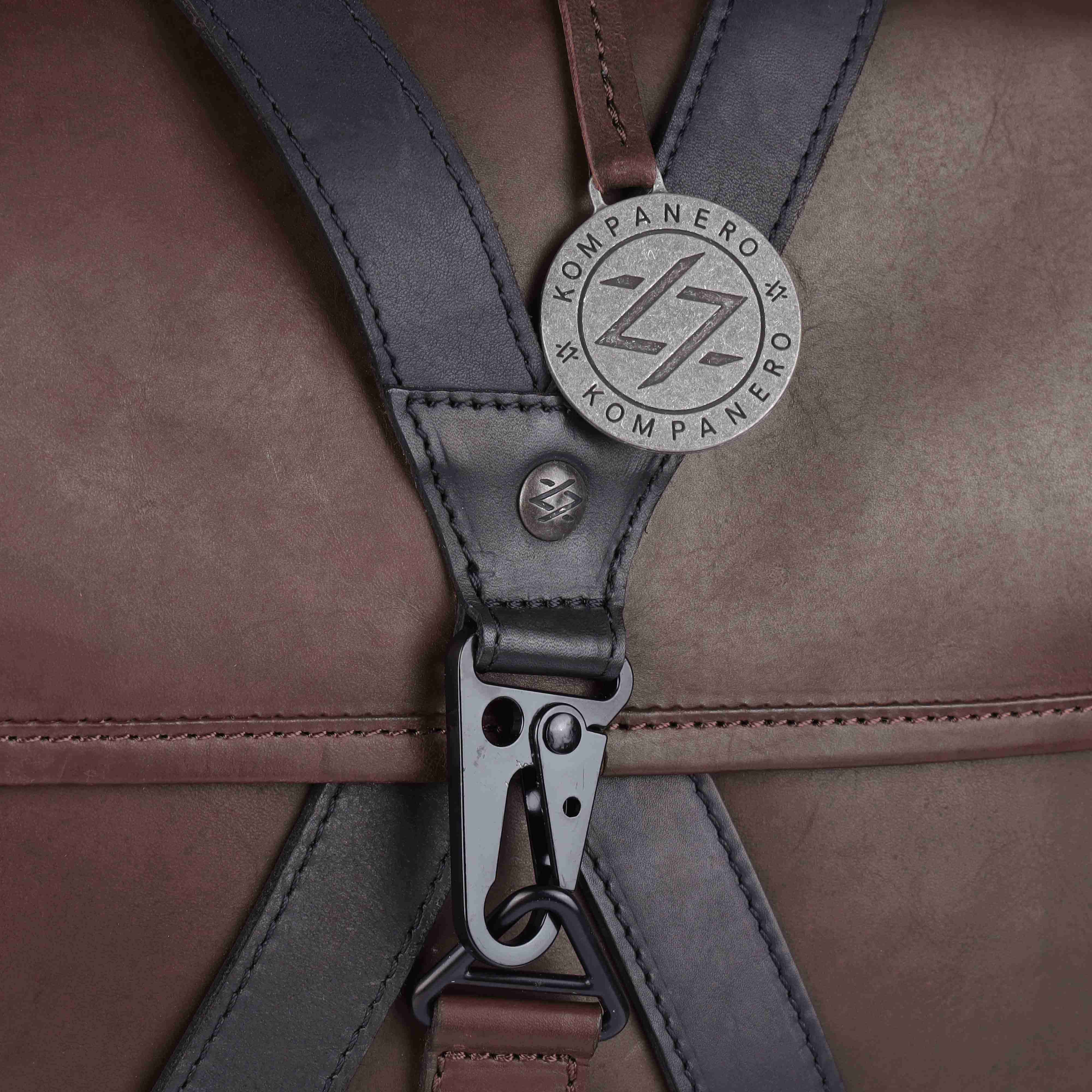 These bags are meticulously crafted from high-quality, vegetabletanned-leather in a warm cognac hue, offering a timeless and sophisticated appeal.  The signature Kompanero metal logo is prominently displayed on the front, reinforcing its authenticity and brand heritage.
