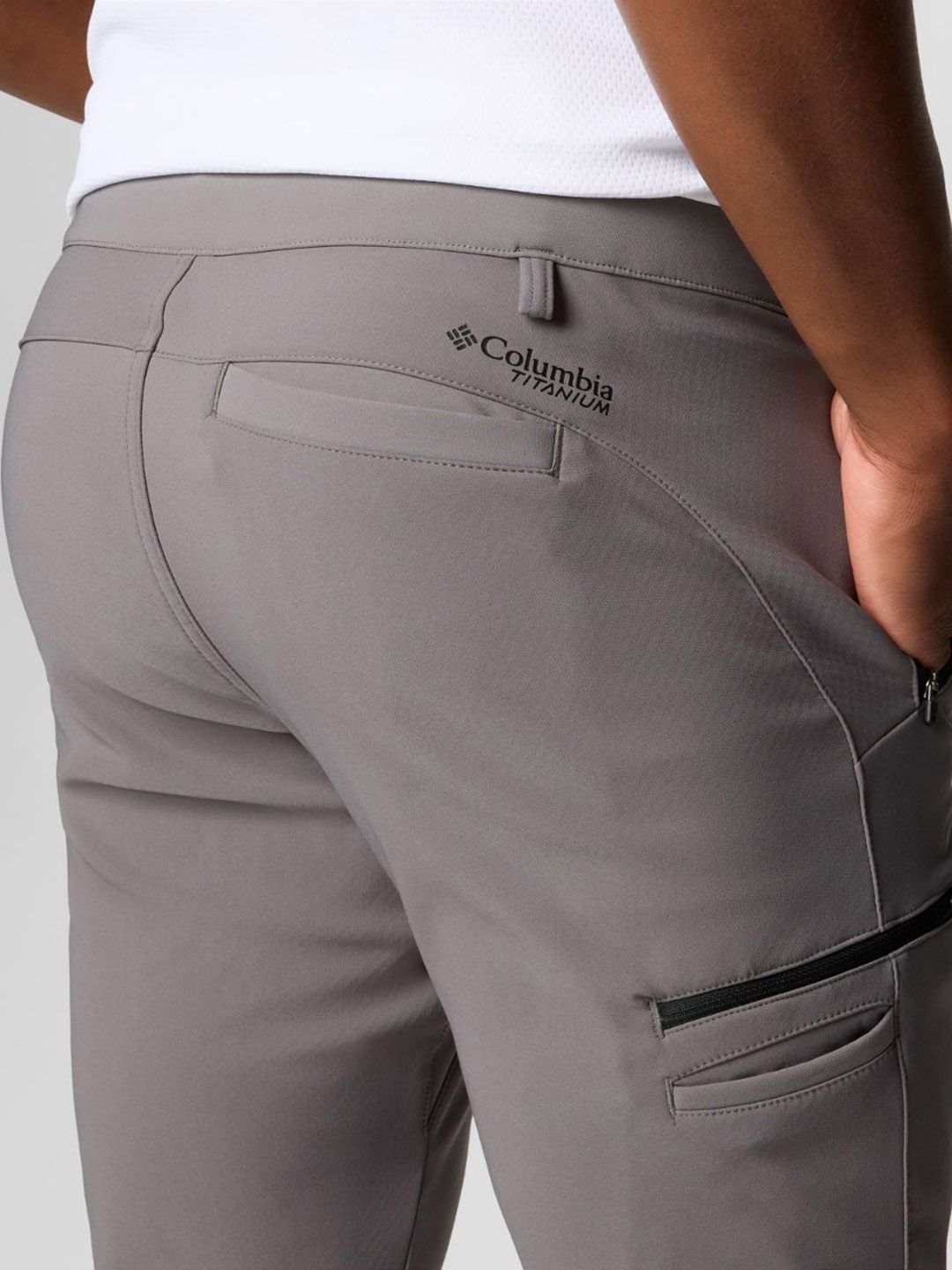 This Columbia Titanium style is made for high-performance outdoor activity in the worst conditions with our best fit, features, and tech Omni-Heat™ Infinity lining retains body heat while remaining breathable using an expanded pattern of thermal-reflective gold dots to keep you extra warm in cold conditions Omni-Shield™ repels moisture and resists stains by preventing liquids from absorbing into fast-drying yarns, so you stay clean and dry in damp, messy conditions Integrated belt and a partial elastic waist for a secure fit Back pocket, zip-closed security pocket, and zippered mesh hand pockets store valuables Durable, gusseted leg openings fit over boots Reinforced back hem Gusset detail to shape and reinforce the fit Gaiter clips on cuffs help block debris Straight leg Uses: Hiking Imported
