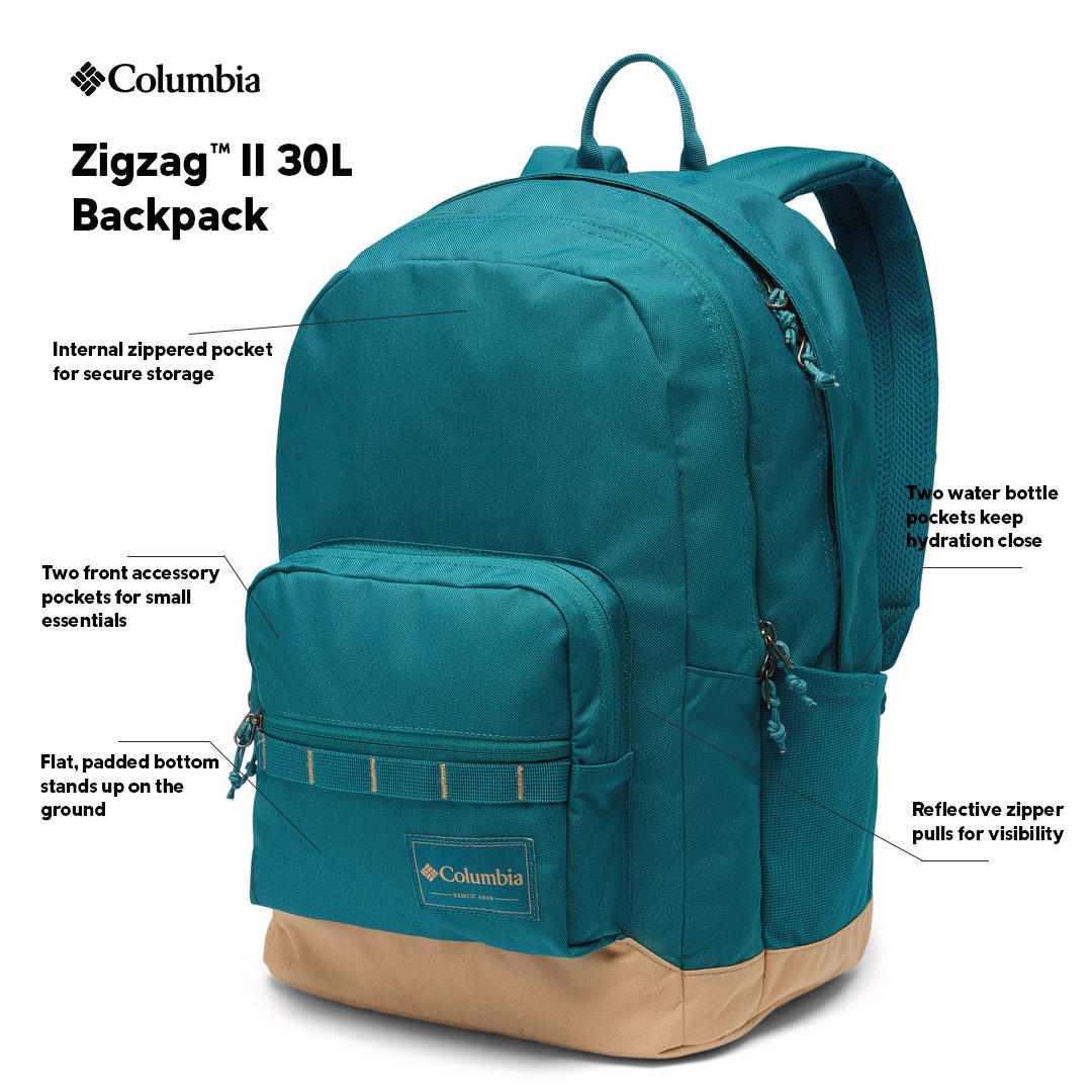 Columbia Zigzag II 30L Backpack - your versatile and durable companion for outdoor adventures and everyday use. Crafted with Columbia's dedication to quality and innovation, this backpack offers ample storage space, comfort, and functionality in a sleek design. With a generous 30-liter capacity, it provides plenty of room for your gear, making it ideal for day hikes, camping trips, or daily commutes. The Zigzag II Backpack features multiple compartments and pockets, including a padded laptop sleeve and an organizer panel, allowing you to keep your belongings organized and easily accessible. The padded back panel and adjustable shoulder straps ensure comfortable carrying, even during long days on the trail. Additionally, the water-resistant fabric helps keep your gear dry in light rain or snow. Whether you're exploring the great outdoors or navigating city streets, elevate your convenience and style with the Columbia Zigzag II 30L Backpack.