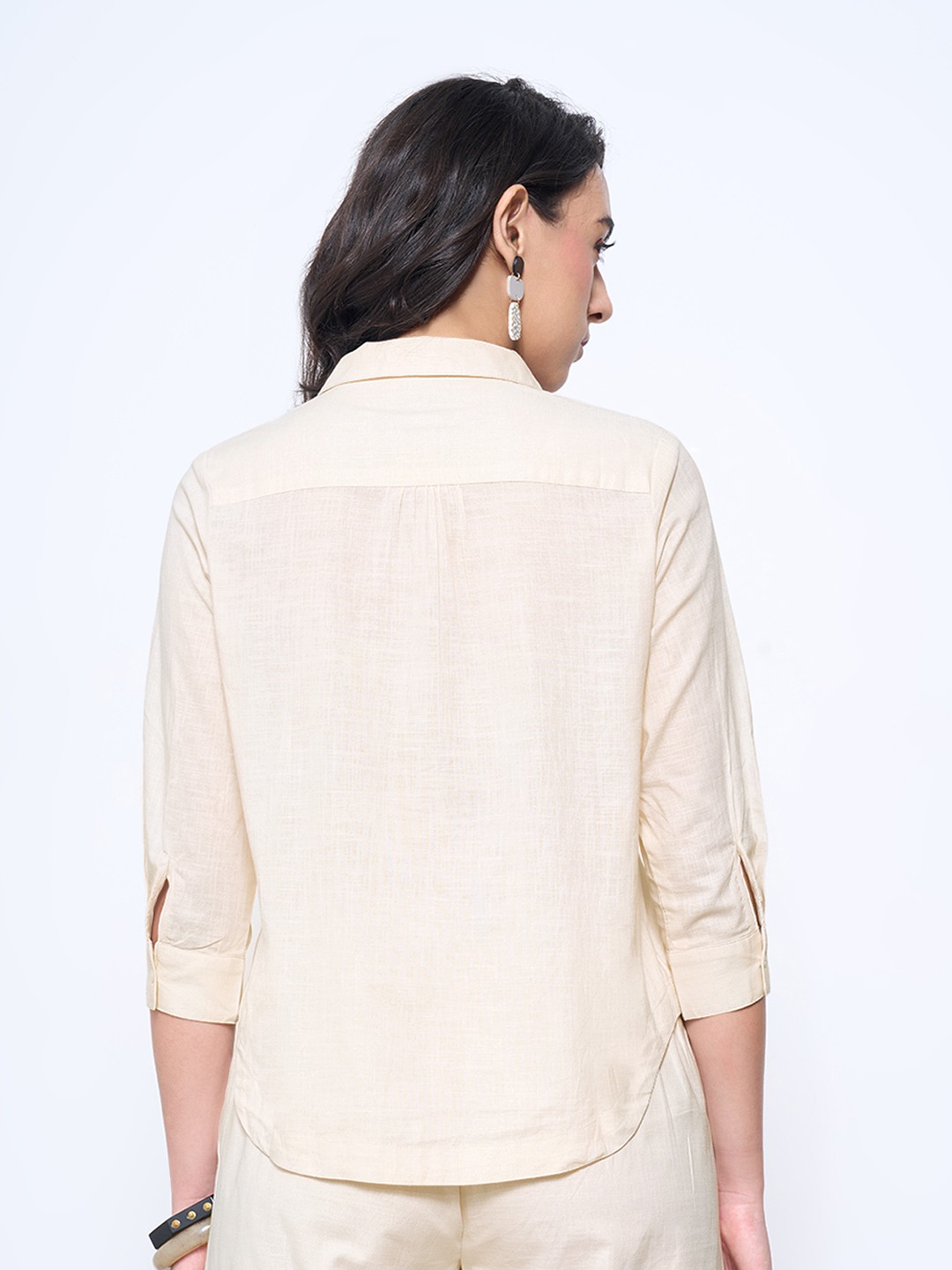Elevated in its simplicity, this shirt balances crisp tailoring with striking embroidery. Detailed with a sharp collar, front button placket and contrast floral motifs across the front, it lends a refined yet artisanal edge. The soft woven fabric ensures breathability and all-day comfort.