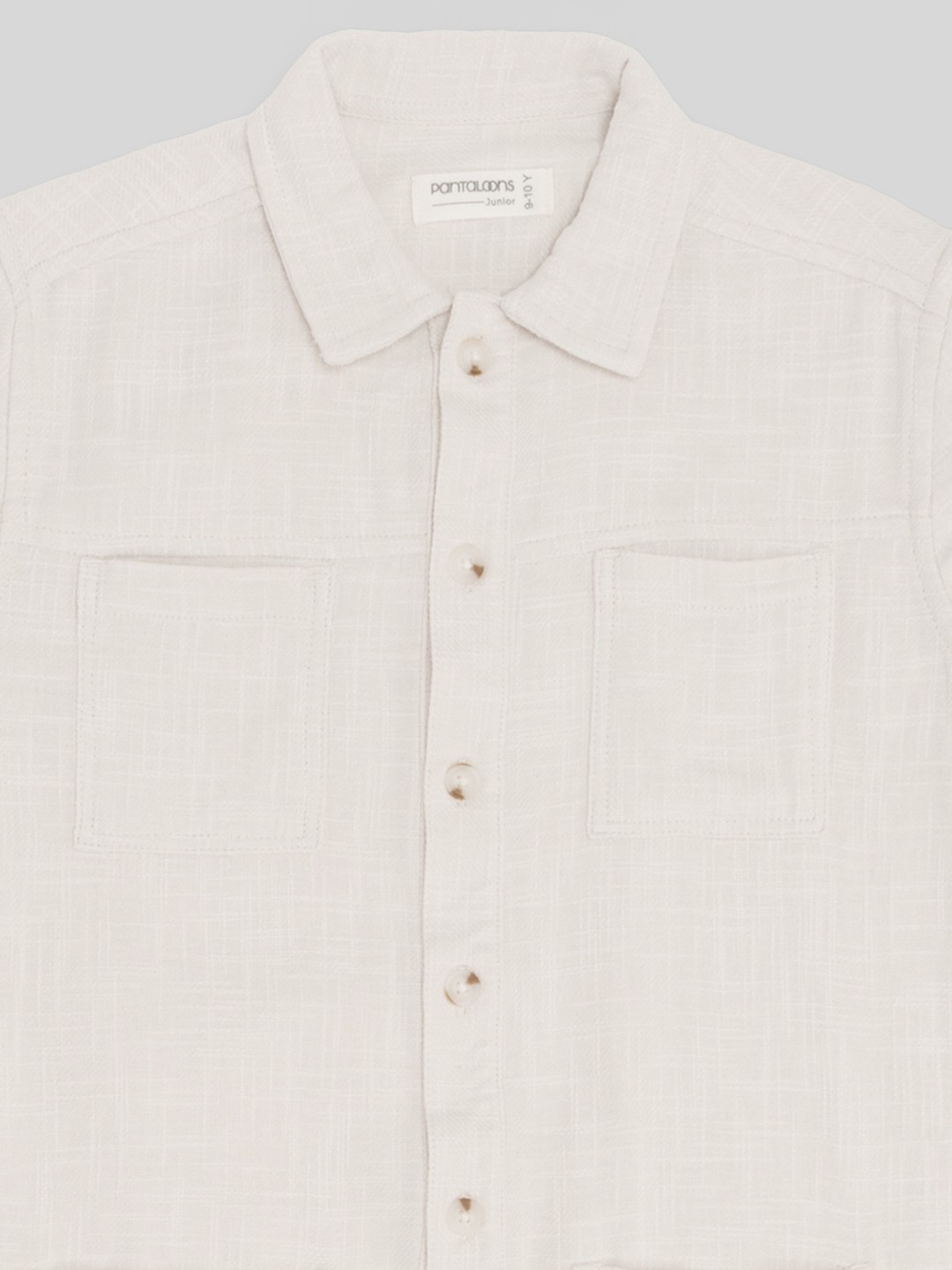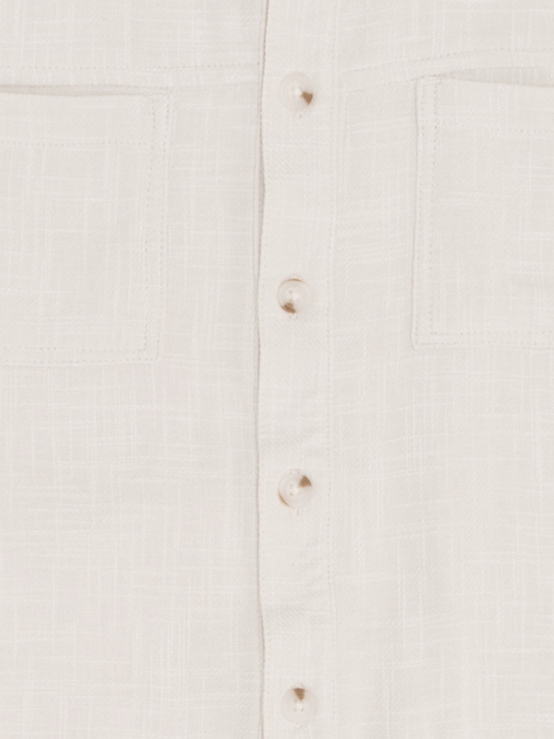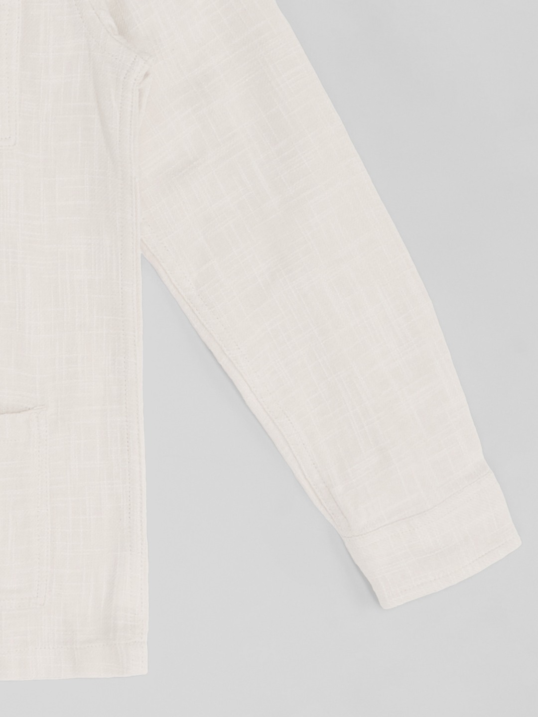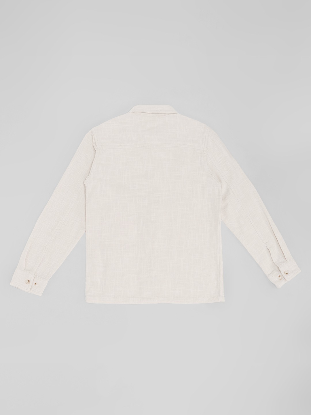 A modern layering piece with a minimal, structured appeal. Designed in a softly textured weave, it features a collared neckline, buttoned front, and four utility-inspired patch pockets. Lightweight yet polished, it bridges the line between shirt and jacket effortlessly.