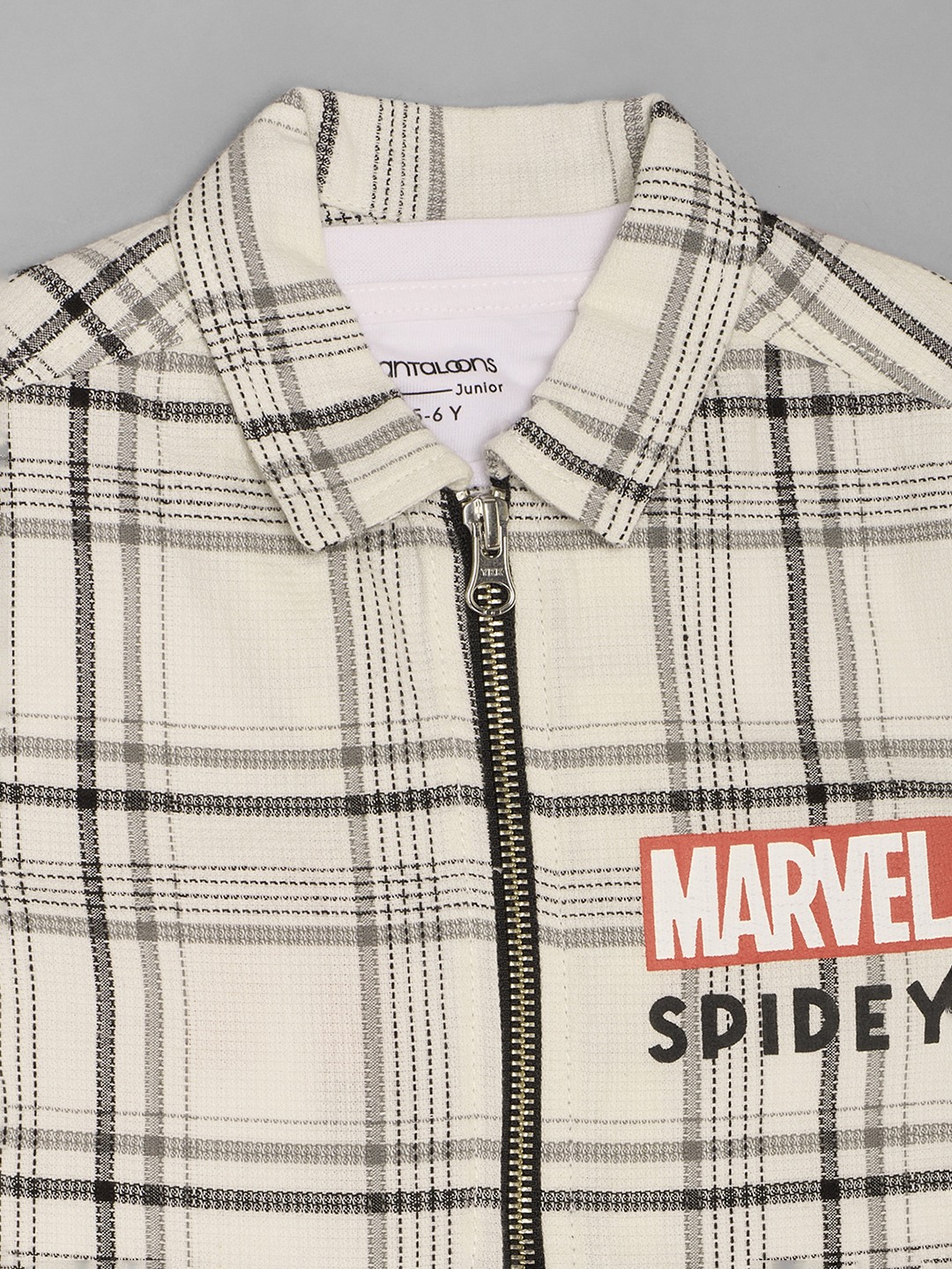 Home/Western Jackets/Pantaloons Junior/cream spider-man check zipper jacket & half sleeve t-shirt combo