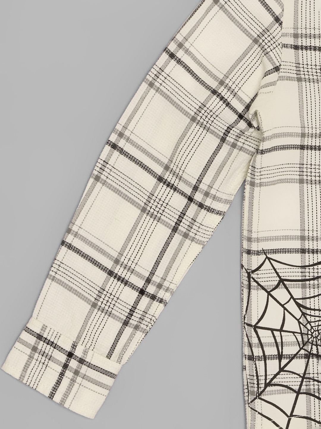 Cream Spider-Man Check Zipper Jacket & Half Sleeve T-Shirt Combo